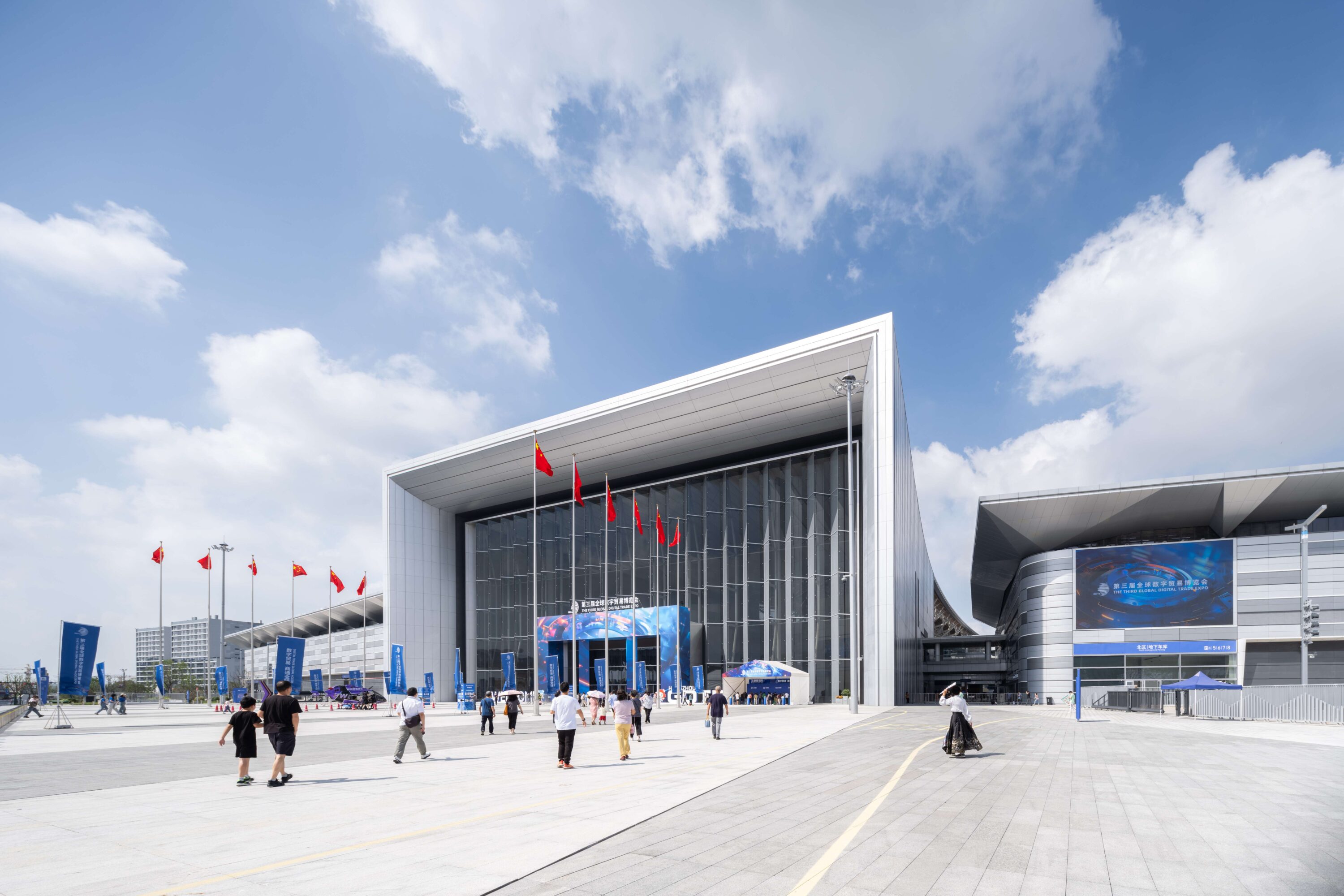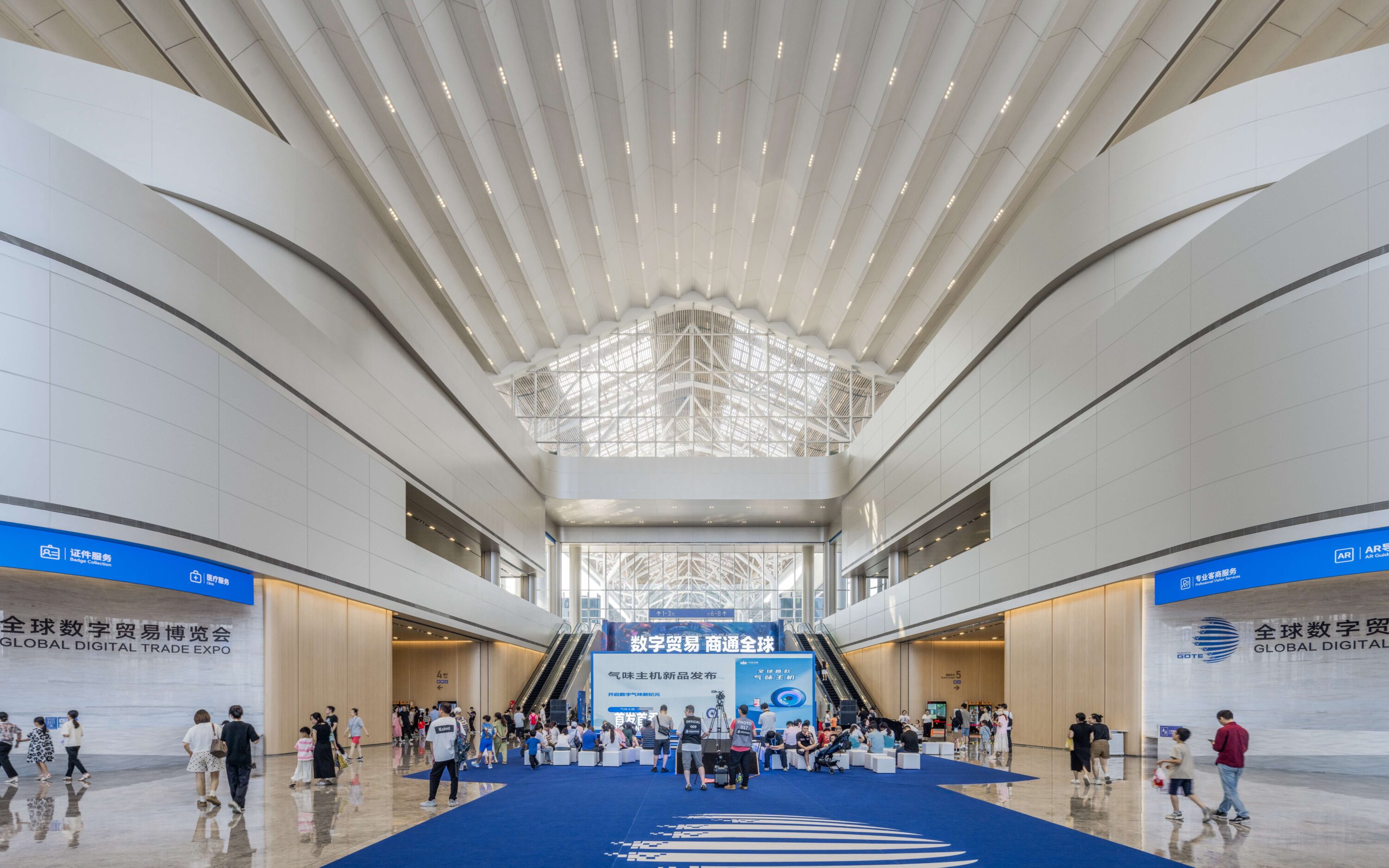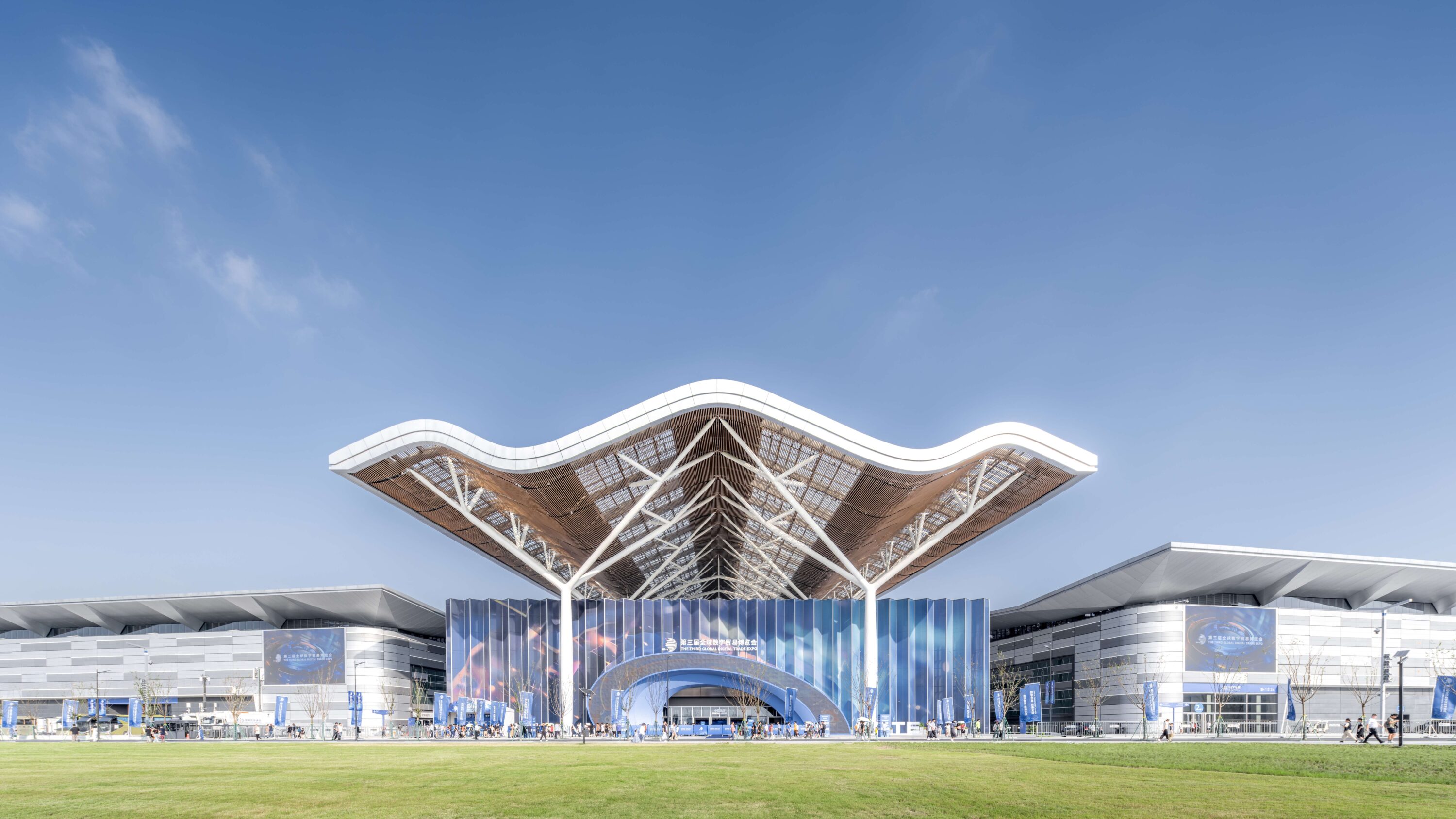 杭州大会展中心总建筑面积134万方、净展面积30万方,已投用的一期项目建筑面积64万方、净展面积15.5万方。作为国内领先的一流复合型会展场馆,场馆采用“杭扇、丝绸”传统文化元素,以钱塘江畔“风帆”造型为整体设计,巧妙地将江南韵味与现代会展的需求相结合,是后亚运时期杭州打造国际“赛”“会”之城的新地标建筑。