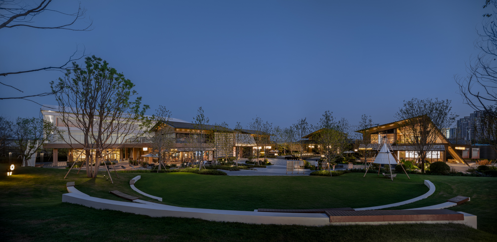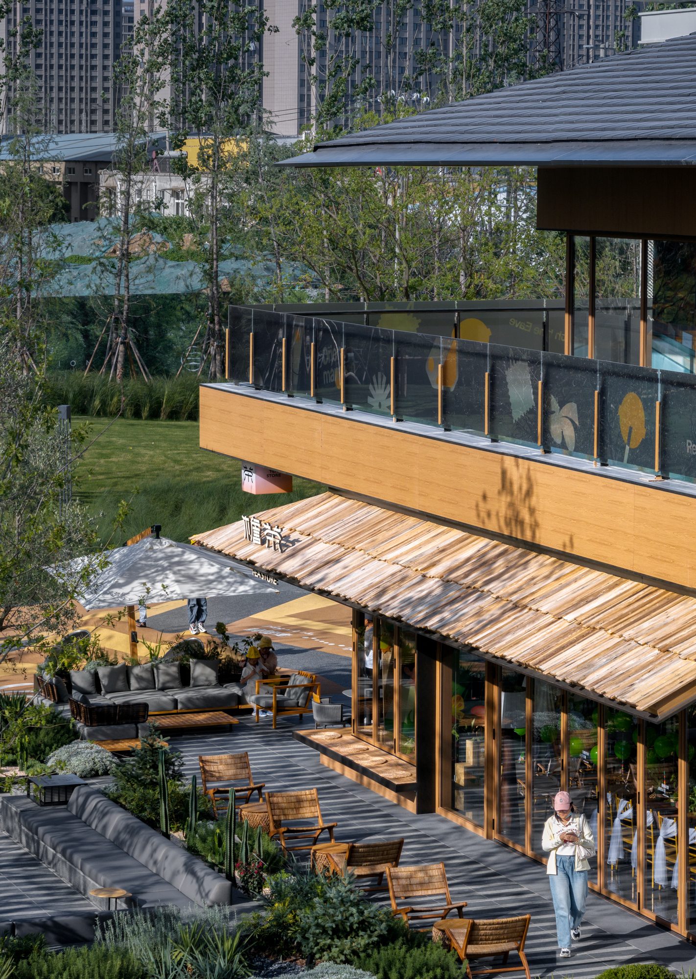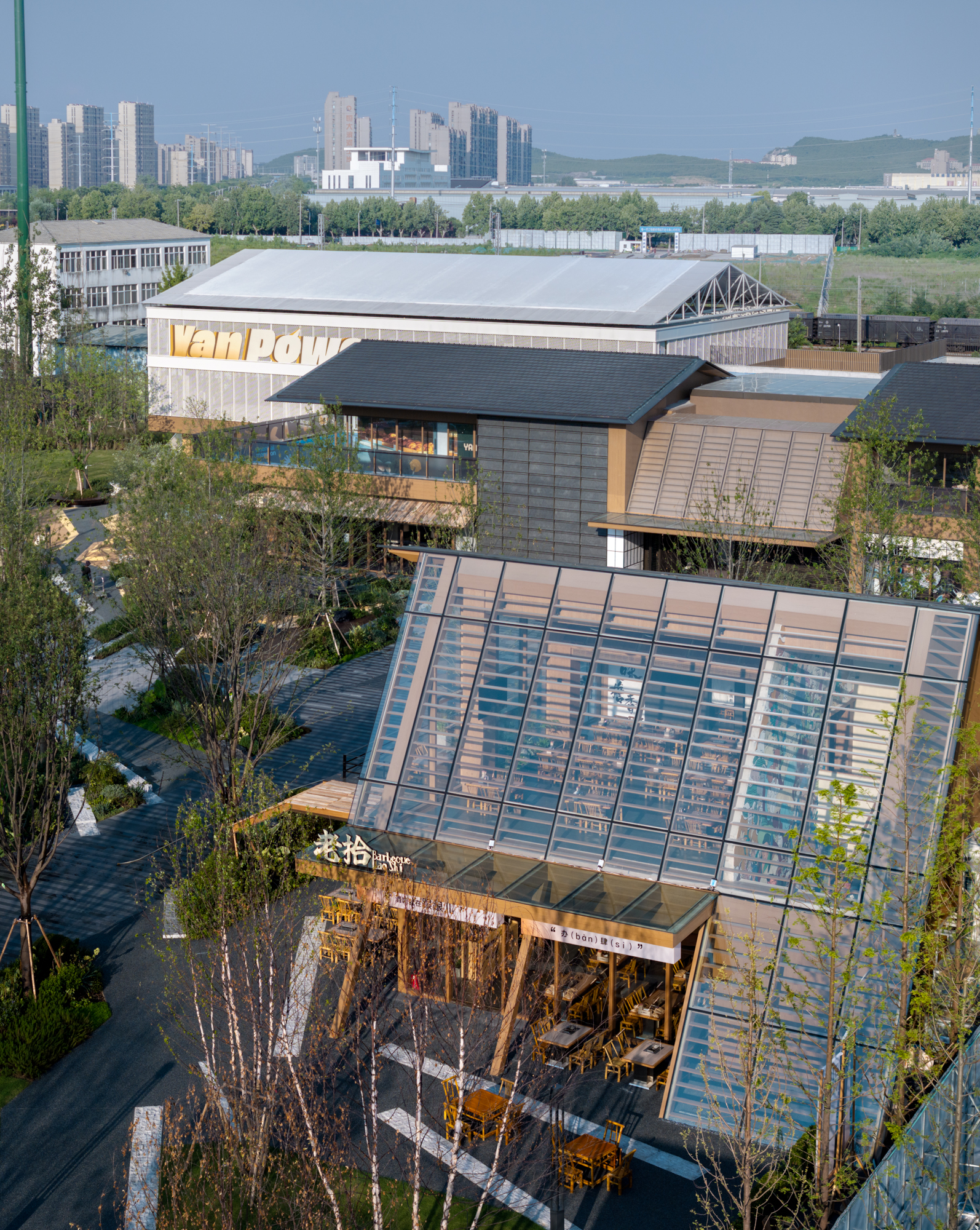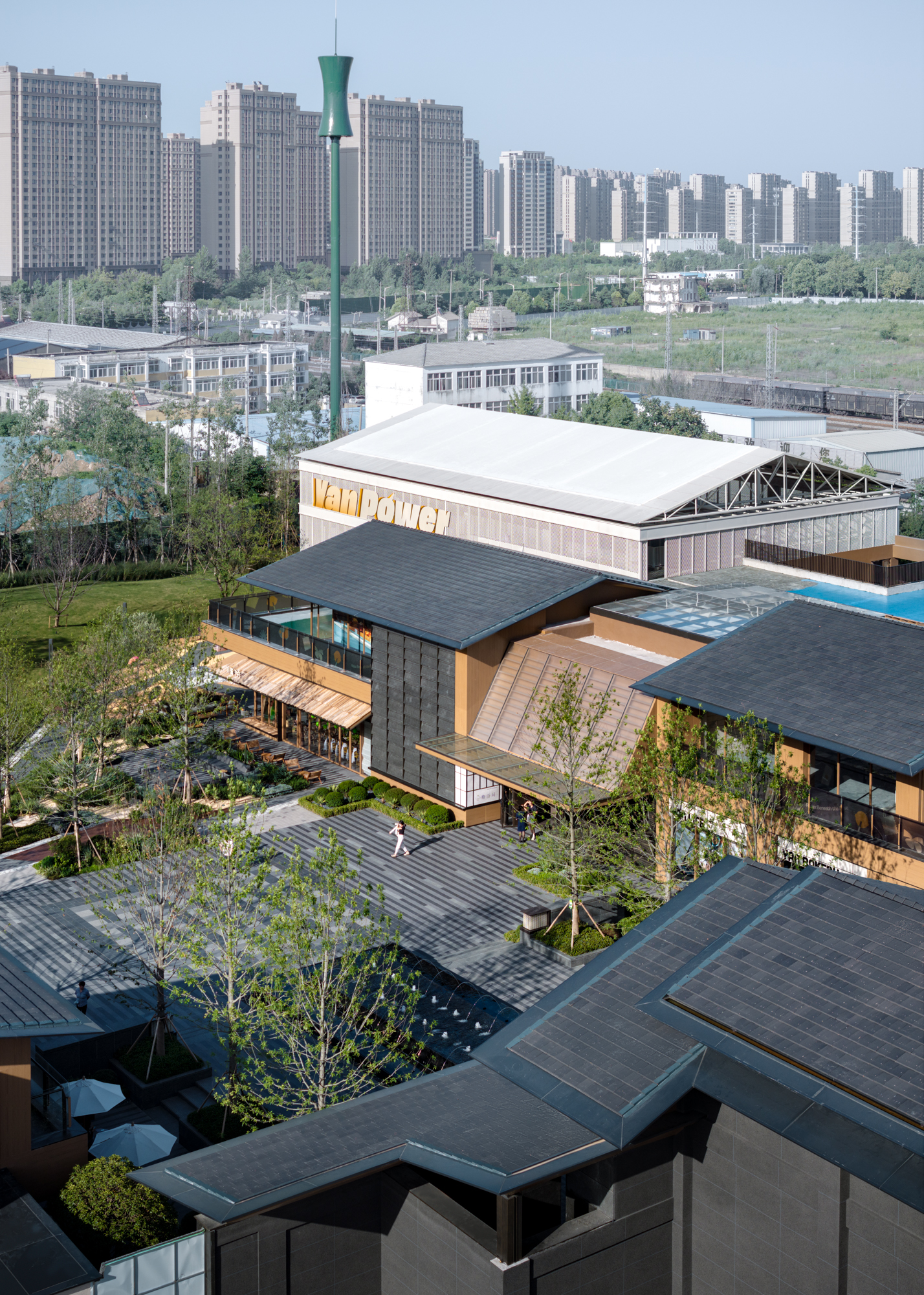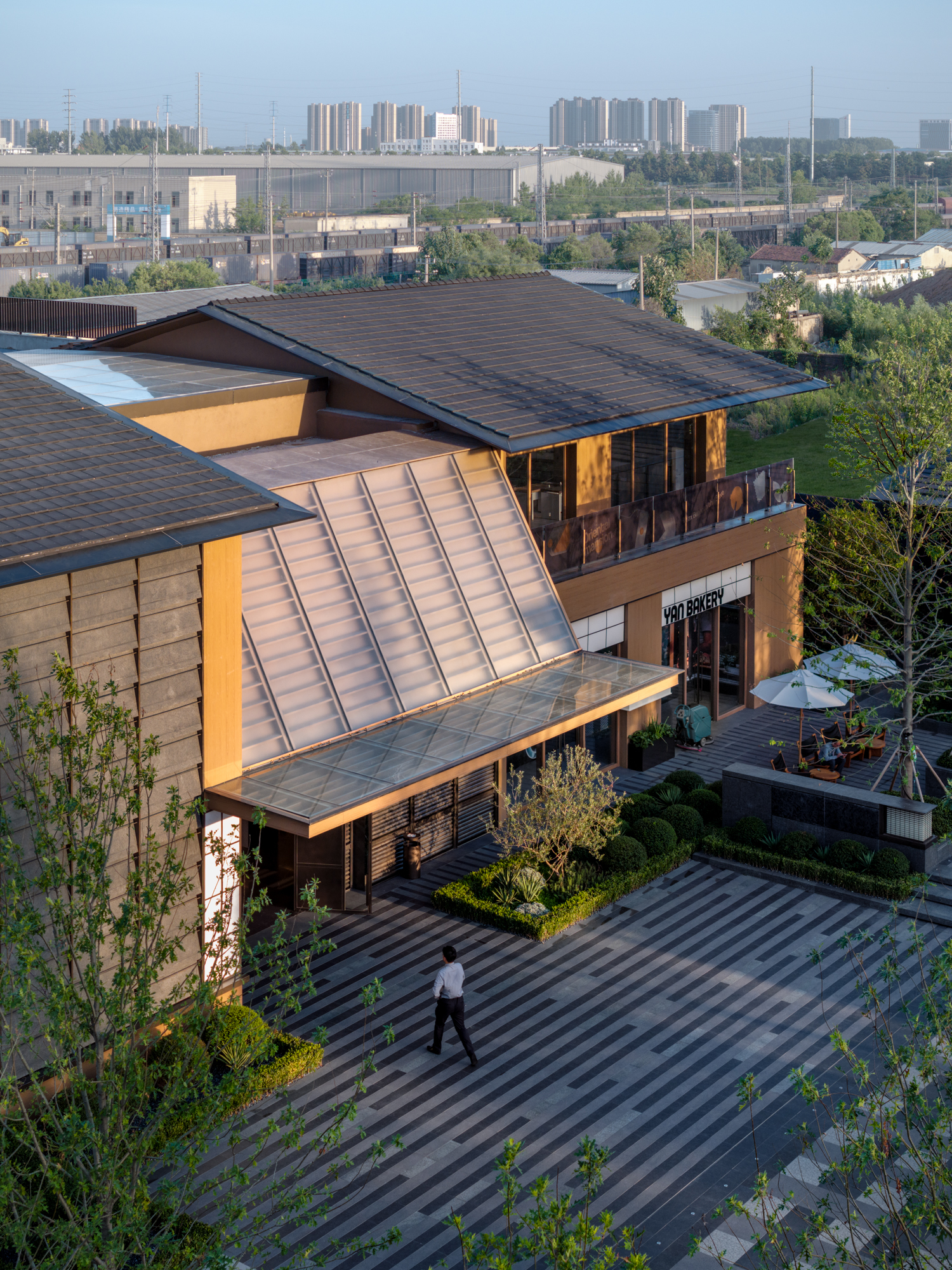 项目位于铜山区因产铜而得名。随着城市工业化的进程,工业生成和铁路运输成为了城市的历史记忆和文化符号。如何在项目中融入对历史和文化的传承与致敬,成为了设计的具象化目标。 檐语间位于三条道路的交汇处,规划从南到北垂直铁路布置,缝补了周边社区与历史铁路间的肌理。引入公园式商业的概念,为城市打造界面。 为社区注入活力,打破了传统住区与商业的边界,让浓厚的街区氛围以轻松自如的形式被呈现。