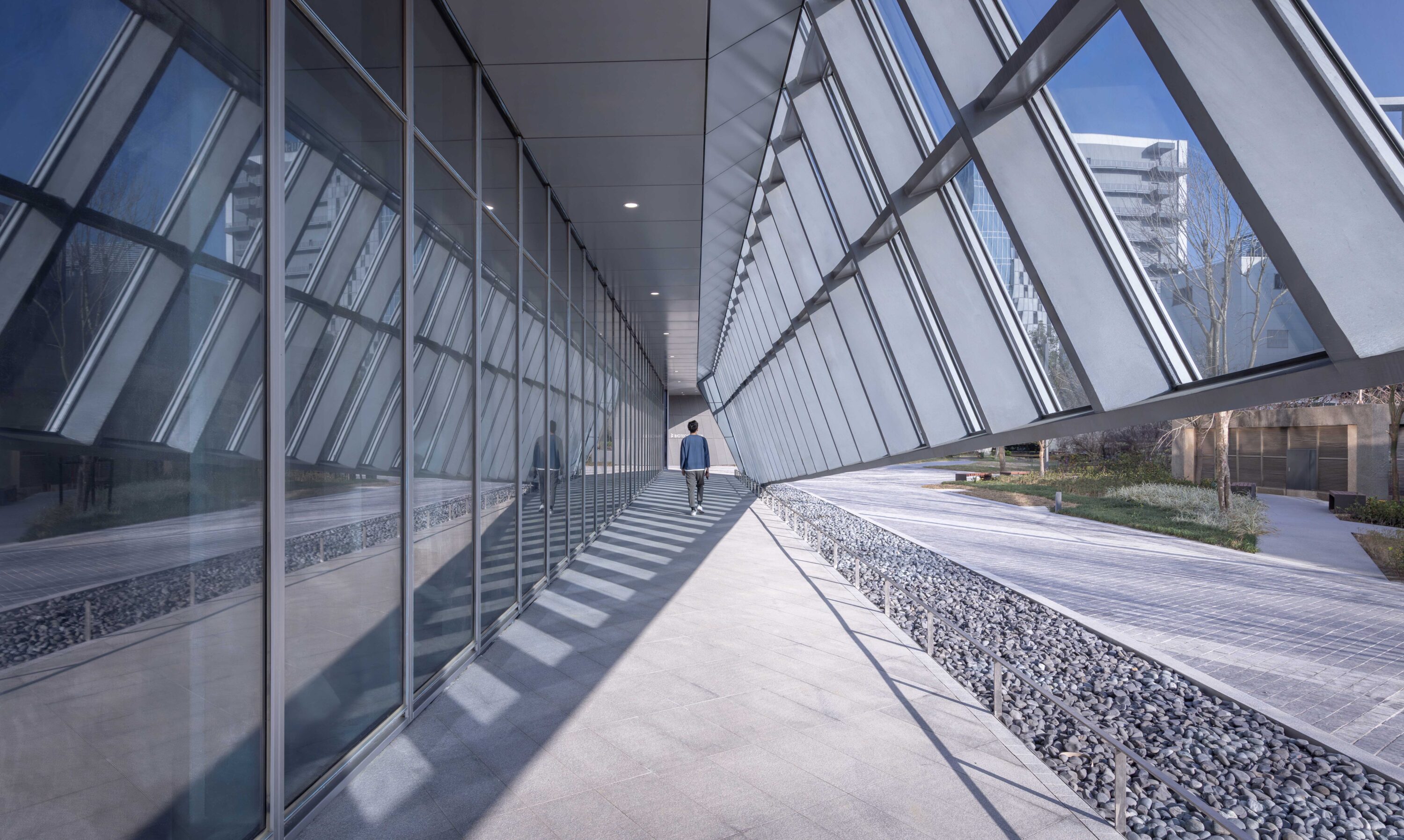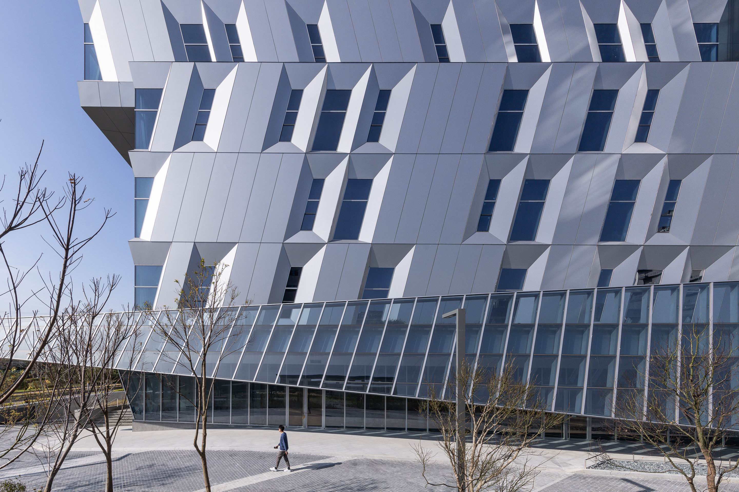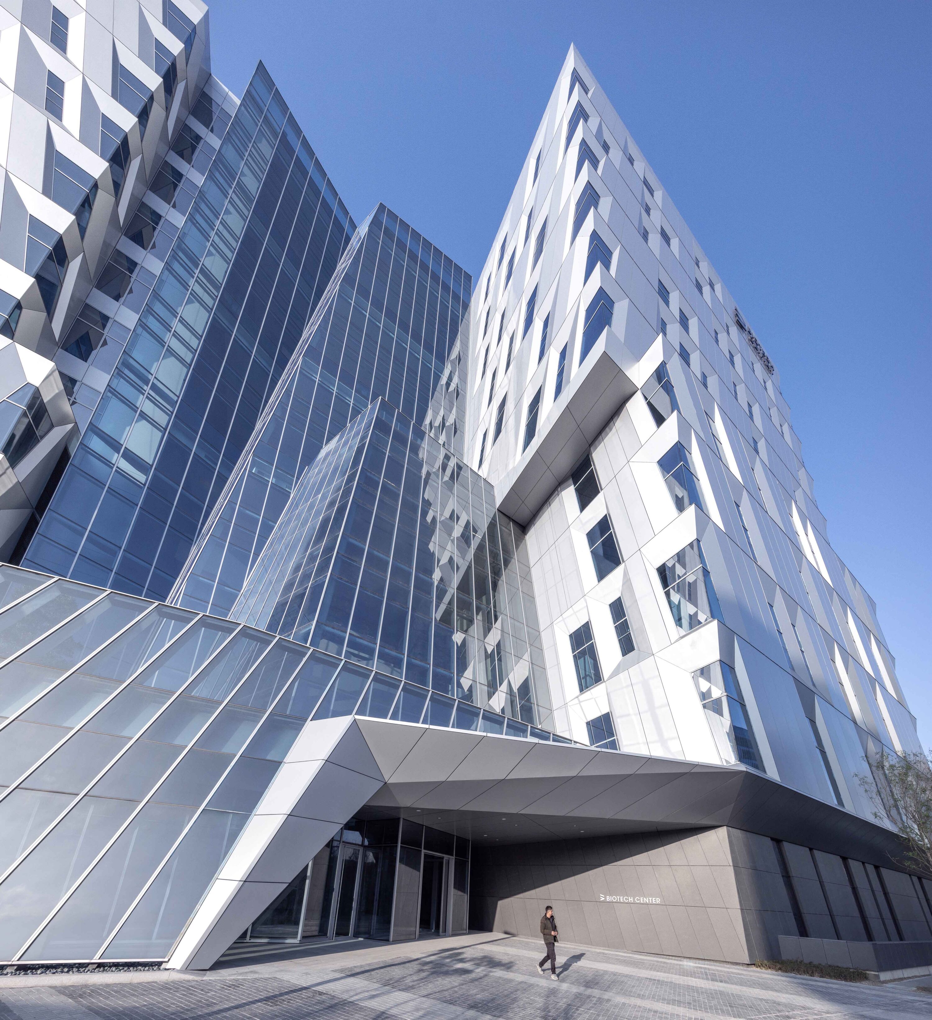 新竹生物医学园区第三生技大楼以「Bio-core」为核心理念,与周边环境与景观绿带有机串联,如一座矗立于风中的生命孵化器。设计过程中充分考量风场、日照与热能等环境因素,并透过参数化模拟,在外立面上将风过漫野、幼苗初生的摇曳之姿转译为律动有致的模矩化外墙形式,铝板与玻璃辉映天光,焕发蓬勃生机。这座地上11层、近2万坪的育成研发中心,不仅作为生技研究与产业生产的整合平台,更强调空间共享与跨域创新,展现可持续发展、科技美学与人文关怀的融合,开创全新形态的生技建筑典范。