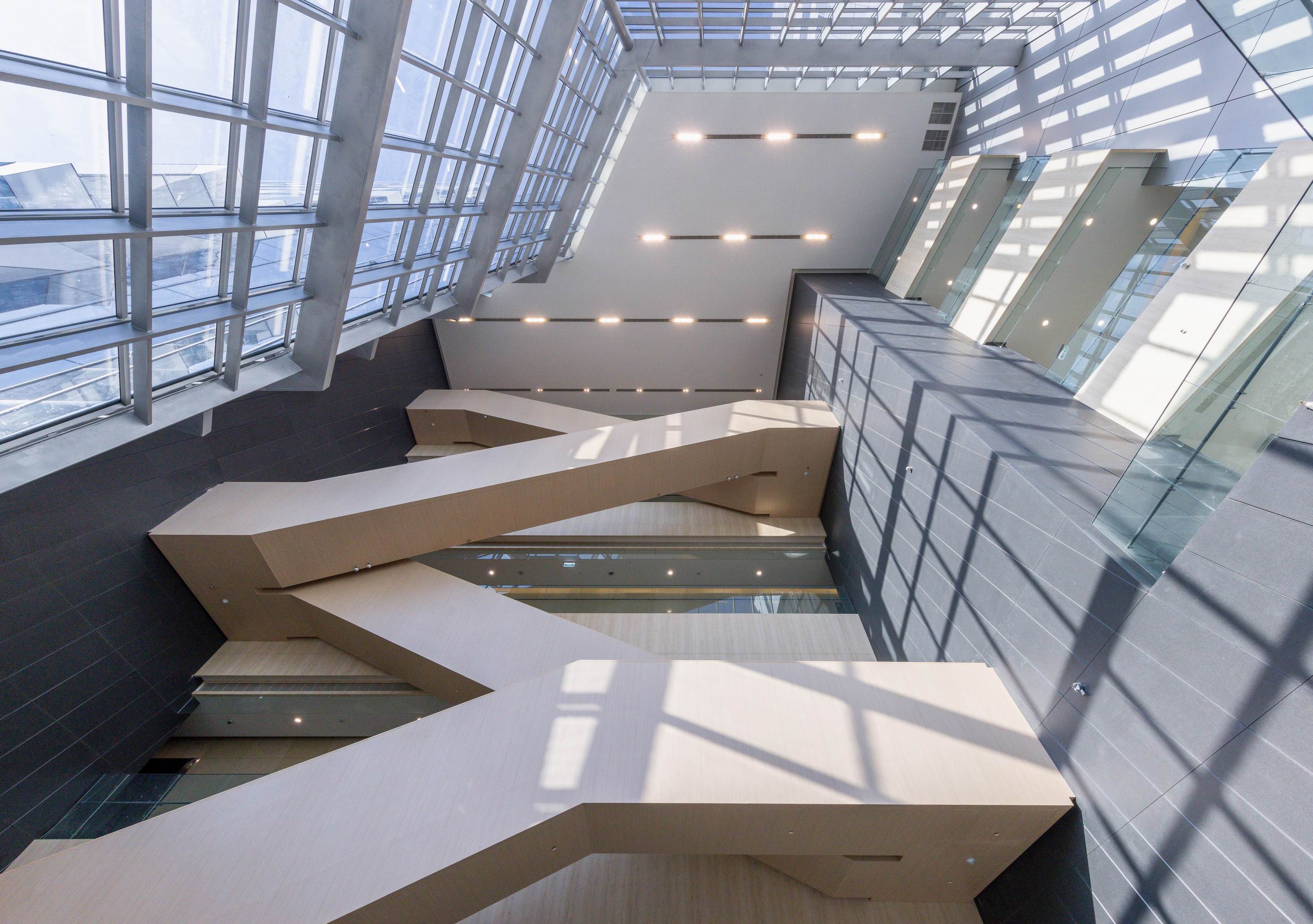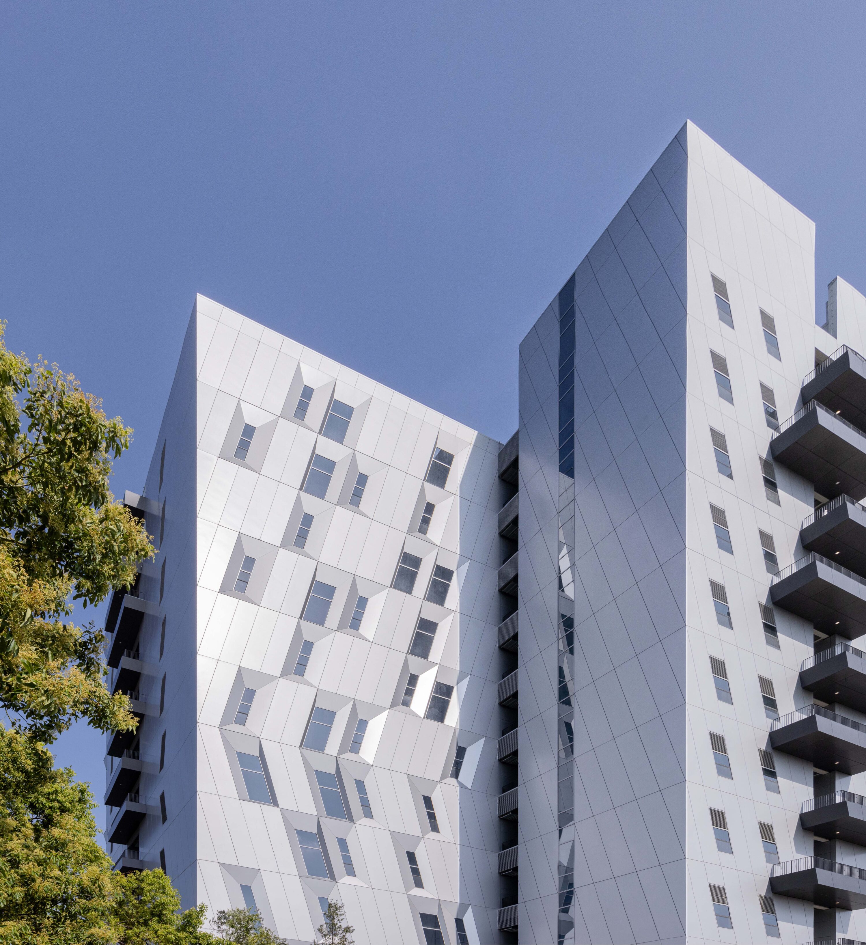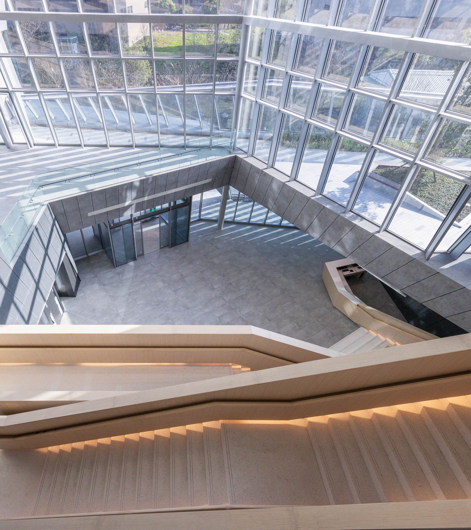 新竹生物医学园区第三生技大楼以「Bio-core」为核心理念,与周边环境与景观绿带有机串联,如一座矗立于风中的生命孵化器。设计过程中充分考量风场、日照与热能等环境因素,并透过参数化模拟,在外立面上将风过漫野、幼苗初生的摇曳之姿转译为律动有致的模矩化外墙形式,铝板与玻璃辉映天光,焕发蓬勃生机。这座地上11层、近2万坪的育成研发中心,不仅作为生技研究与产业生产的整合平台,更强调空间共享与跨域创新,展现可持续发展、科技美学与人文关怀的融合,开创全新形态的生技建筑典范。