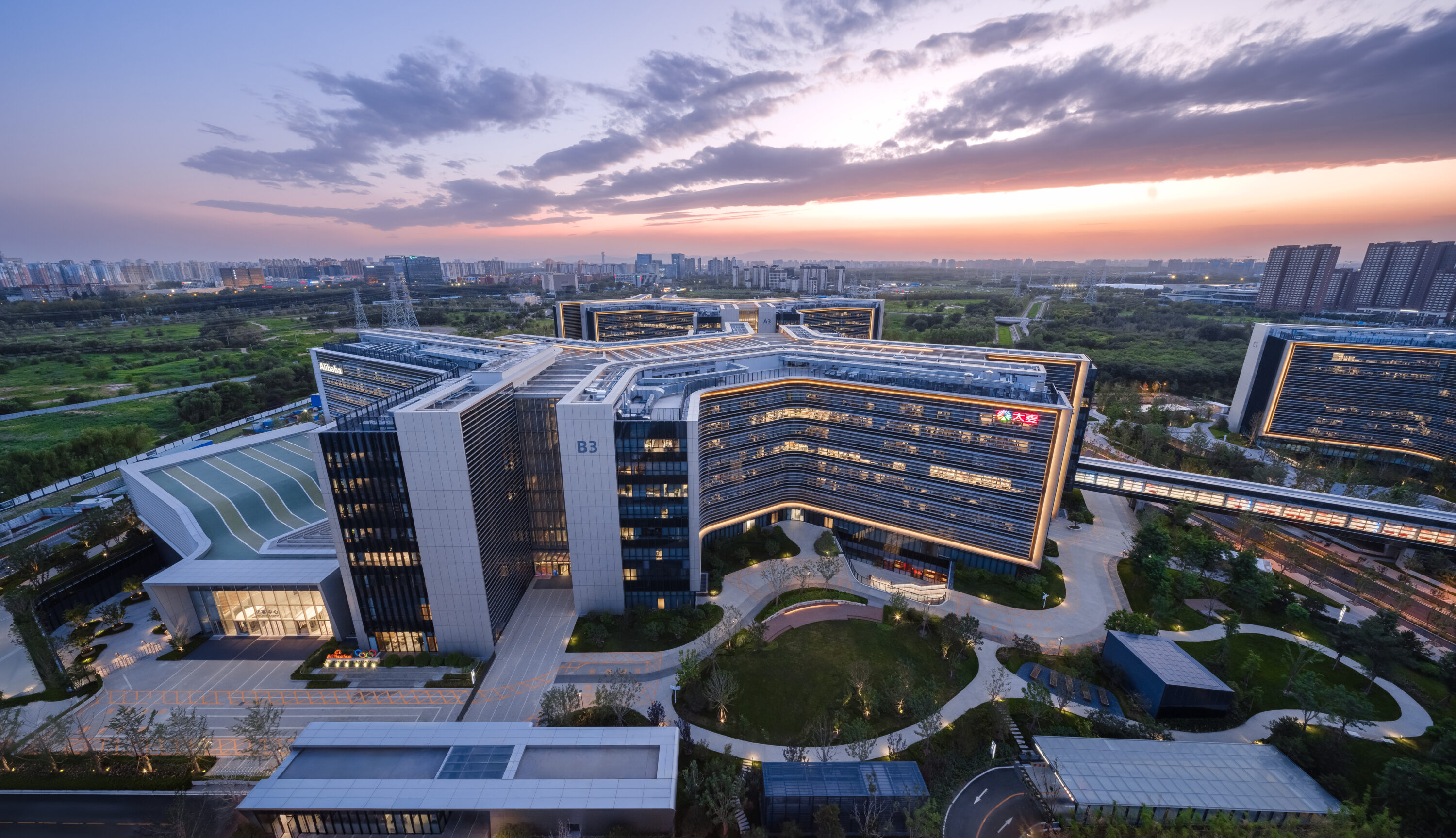 阿里巴巴北京朝阳科技园位于中关村朝阳园北扩区,由同期建设的三个地块组成。项目的规划设计着意呼应阿里巴巴与物、与人互联的行业特质和企业文化,从多层面将其打造成一座创新高效的“互联体”社区。 在“互联体”大概念的引导下,三个地块既各自独立,以多变的建筑造型彰显个性;又彼此相连,透过空中连桥和地下通道实现互联互通。各地块均在核心位置设中庭,作为建筑的中心枢纽以及办公空间延伸,鼓励员工的汇聚互动。