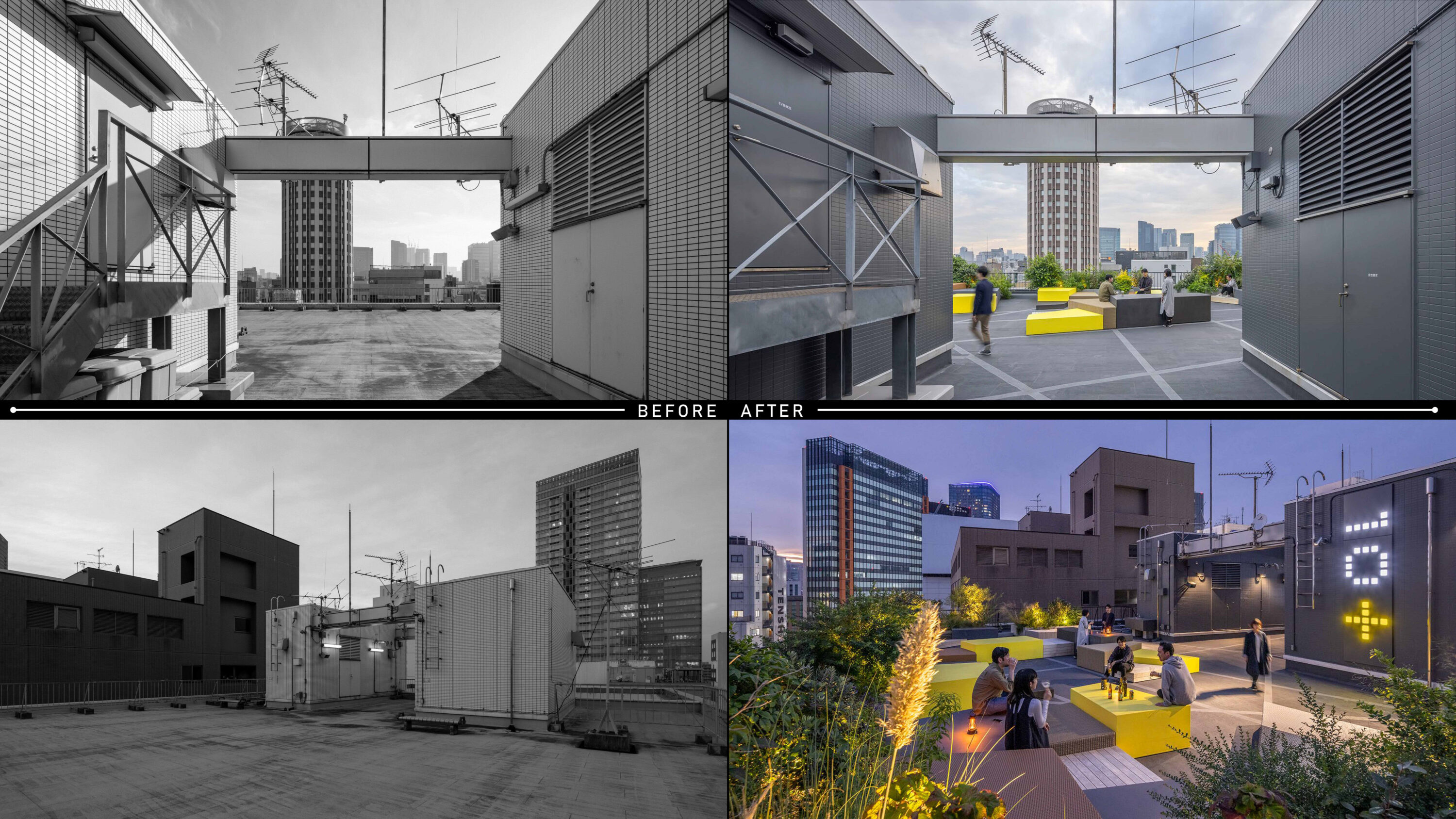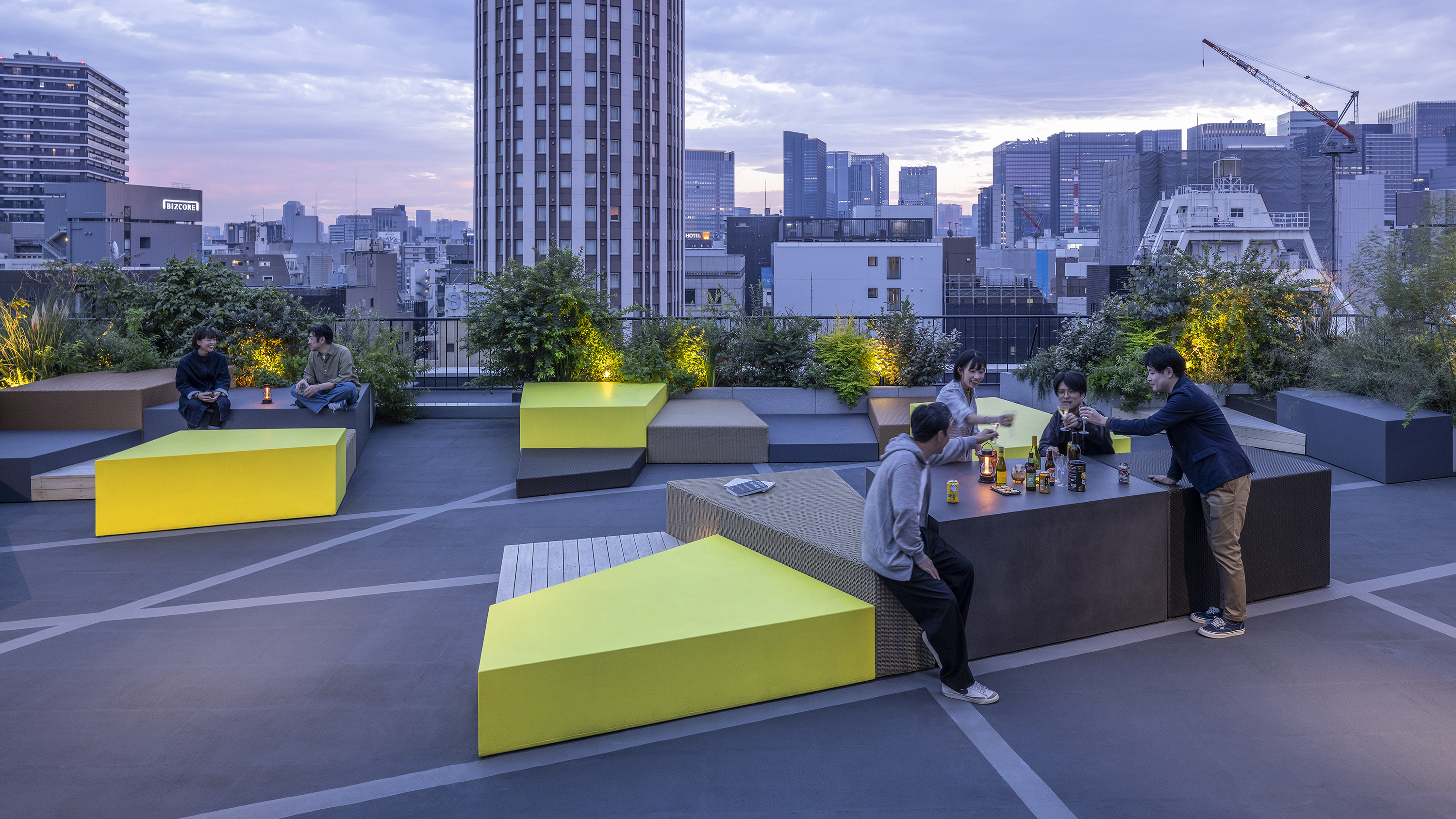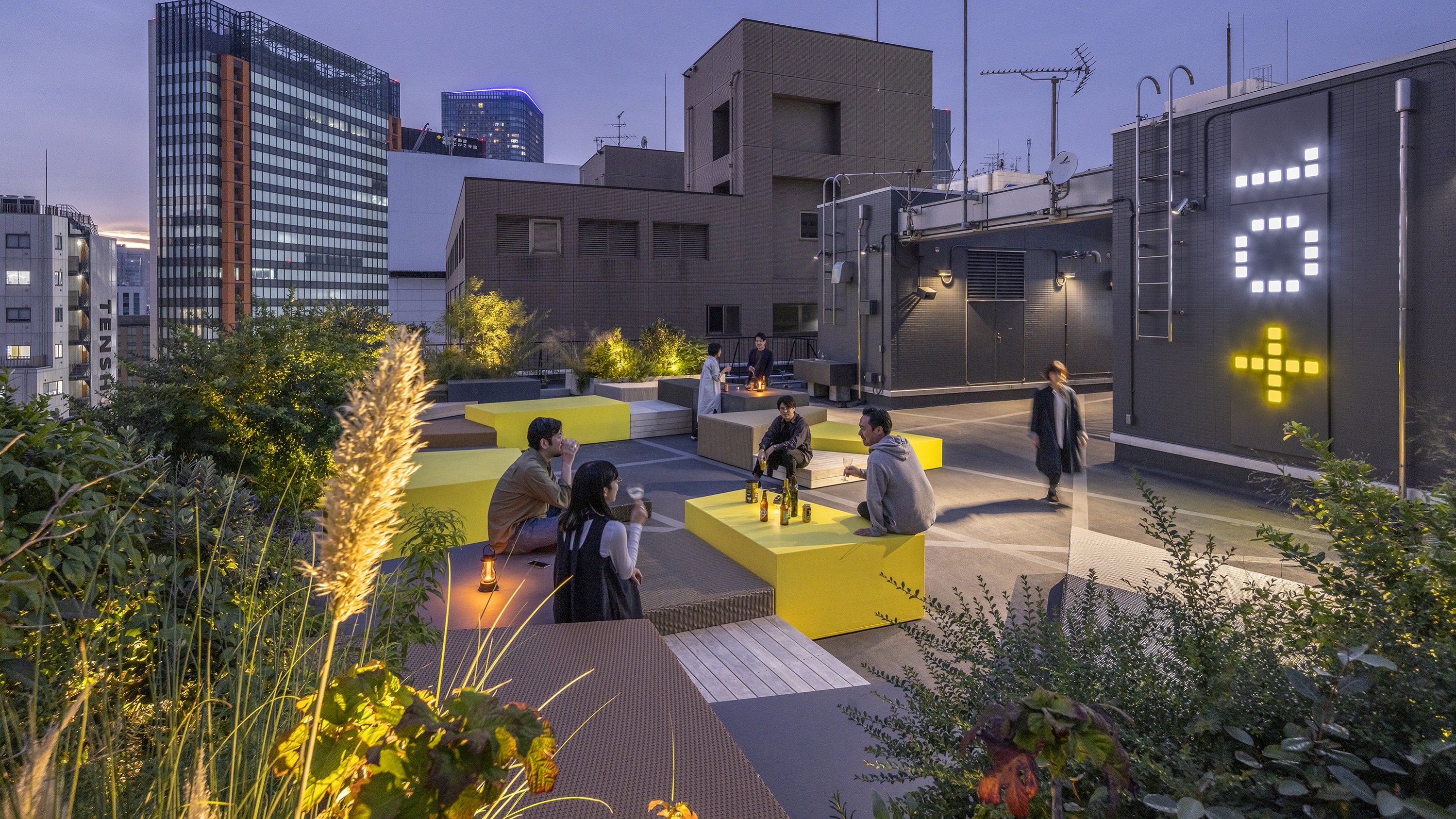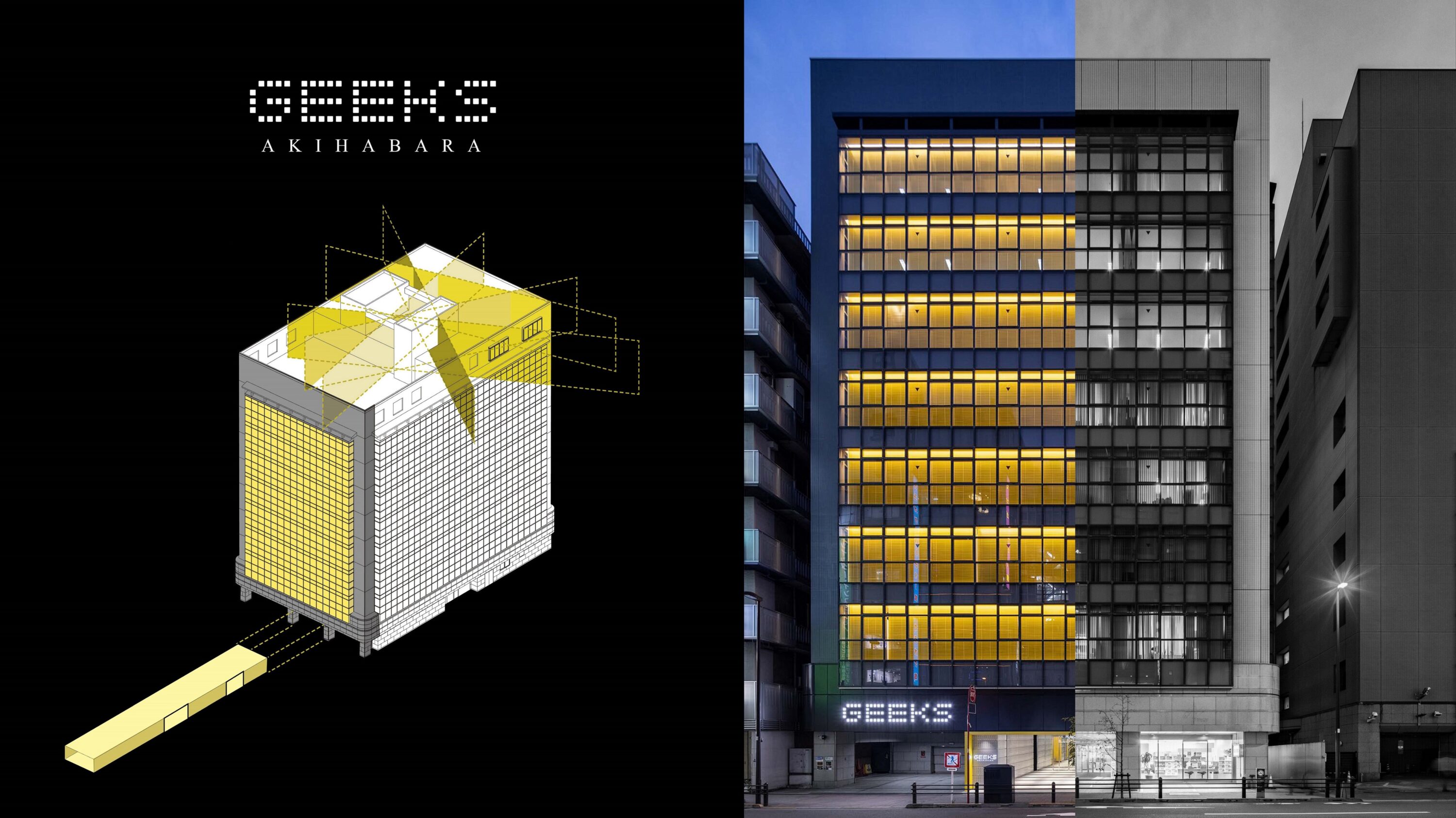 这是一个租赁式办公楼的品牌重塑项目。该项目将秋叶原地区所具有的能量与热情以及从用户内部渗透出的活力与热量变换成“黄色”,以可视化的形式将建筑外立面升华为城市的标志。入口处的天花板和墙面上采用了一般不用作装饰材料的设备布线用电缆梯架,通过连接到电梯厅的动态构成与利用冲孔开口的间接照明,使空间焕然一新,让人感受到与城市的连接。通过充满活力的全新设计,为开创新天地的人们打造了一个“起点”空间。