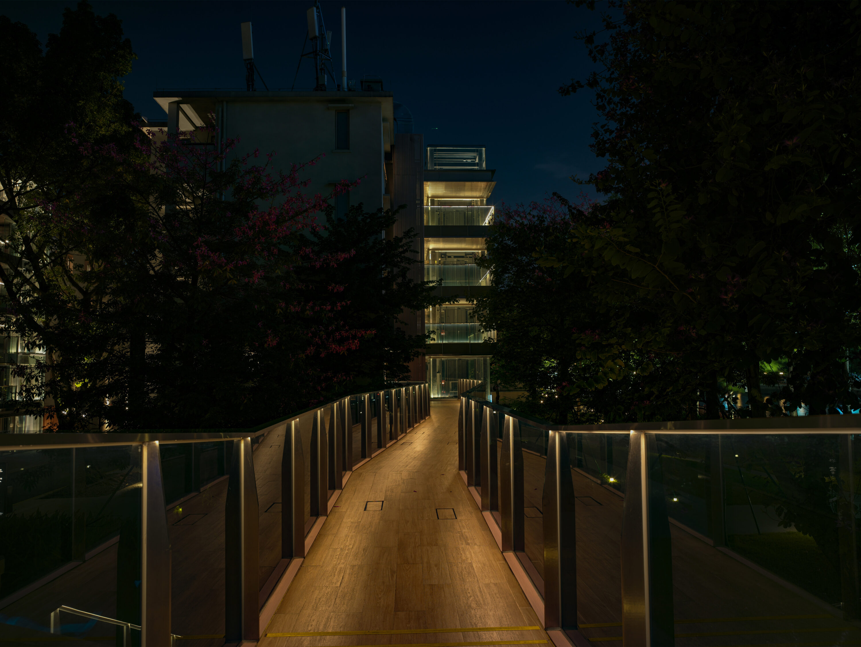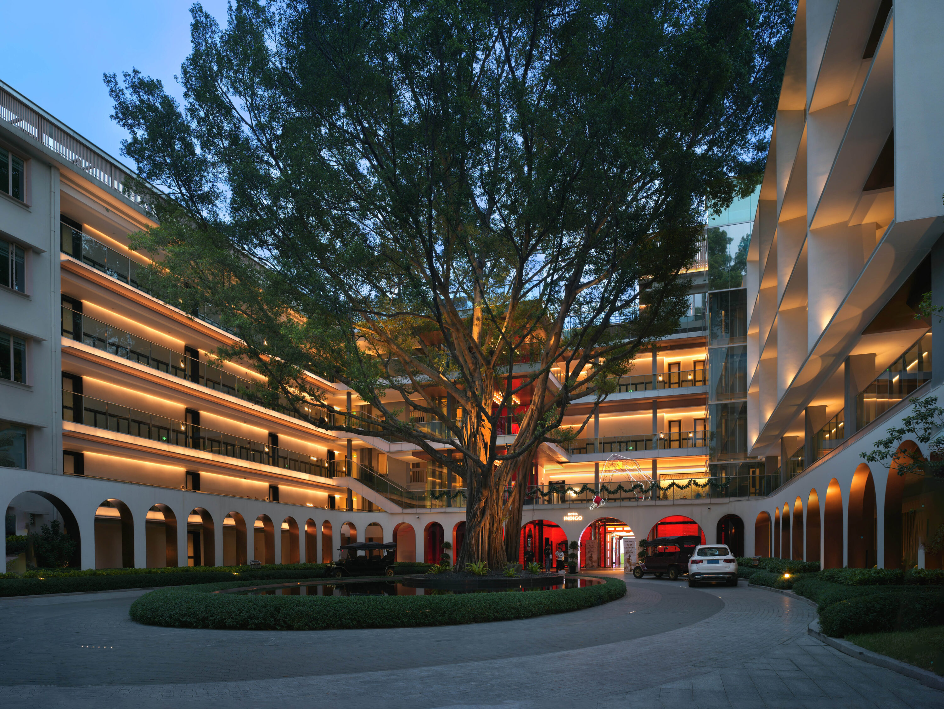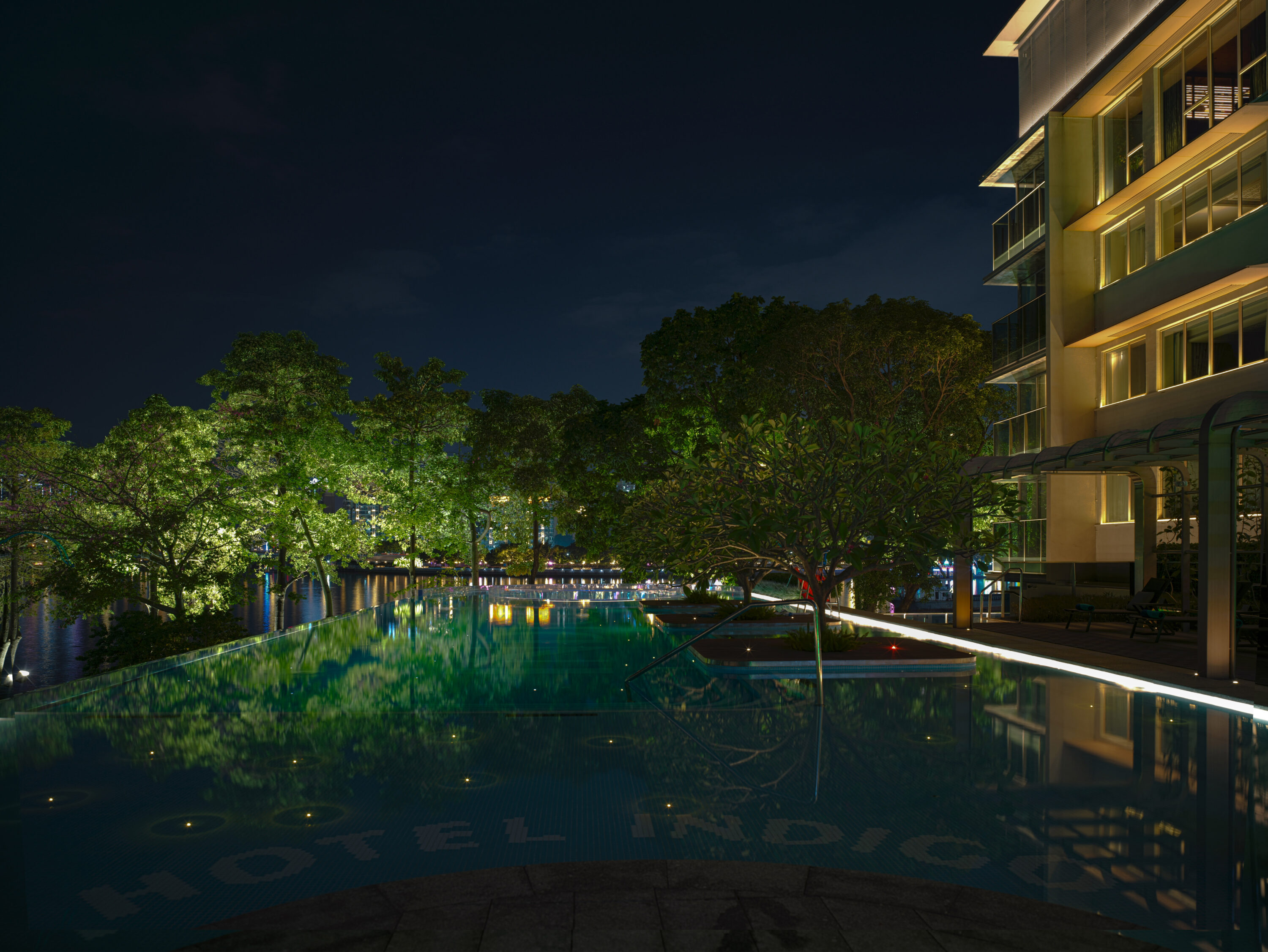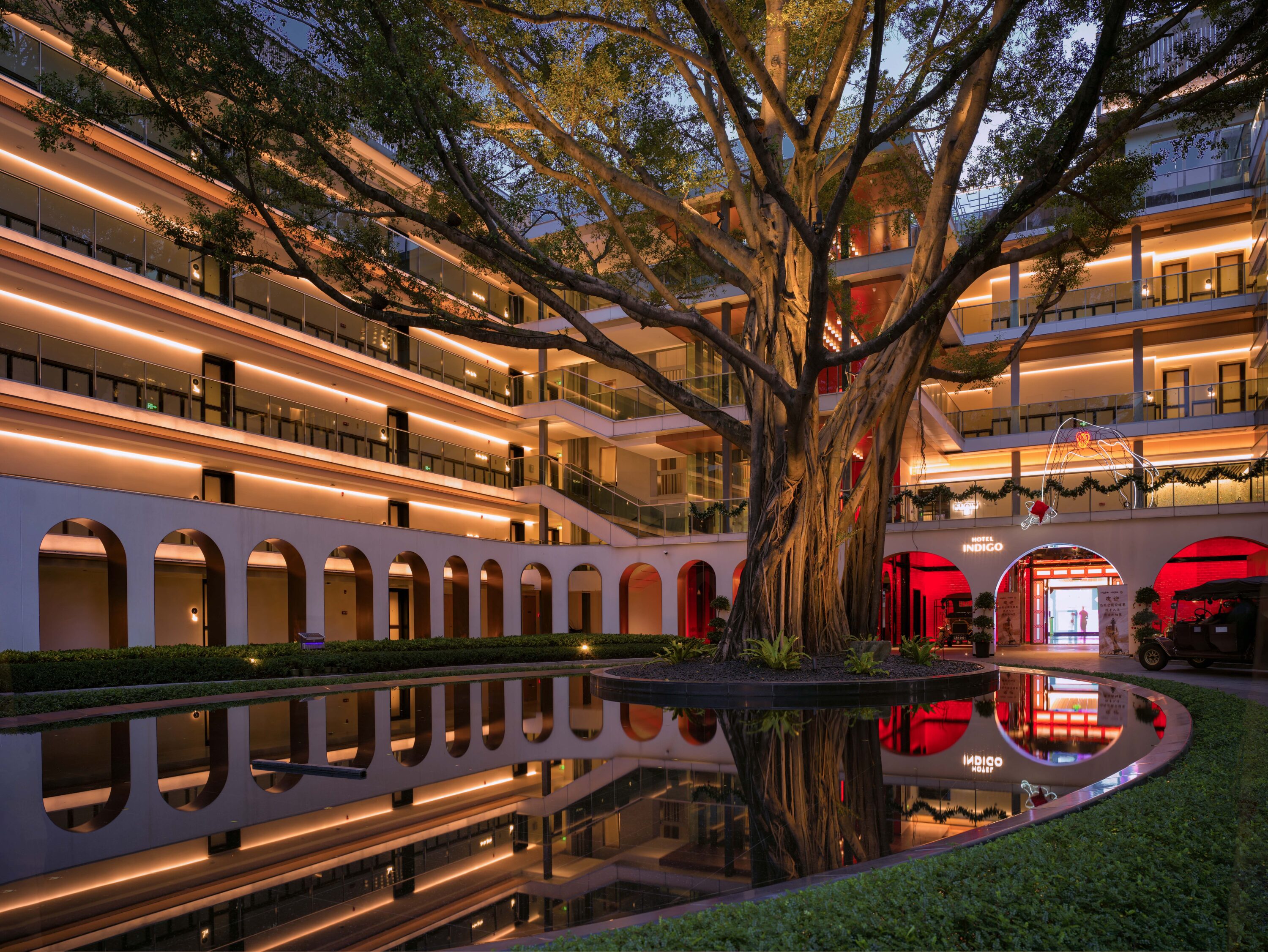 广州海心沙英迪格酒店,坐落于广州海心沙岛东隅,三面环江,北倚花城广场,南眺广州塔。酒店巧妙融合在地邻里文化与先锋艺术设计,以创新笔触诠释城市活力。灯光设计以岛居慢生活位理念,柔和的光影韵律营造都市谧境,同时兼顾生态保护,为鸟类栖息留存静谧空间。全域光环境温润而克制,以渐次铺陈的照明语言,娓娓道来岭南慢生活的美学意境。
