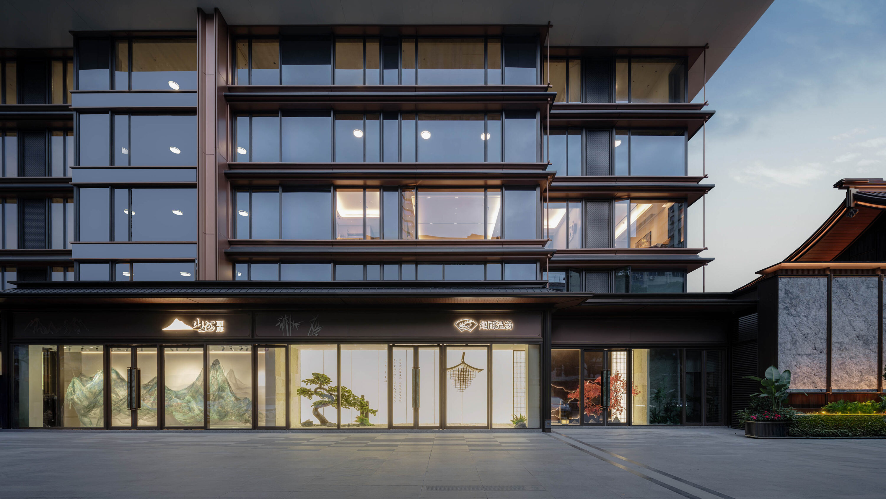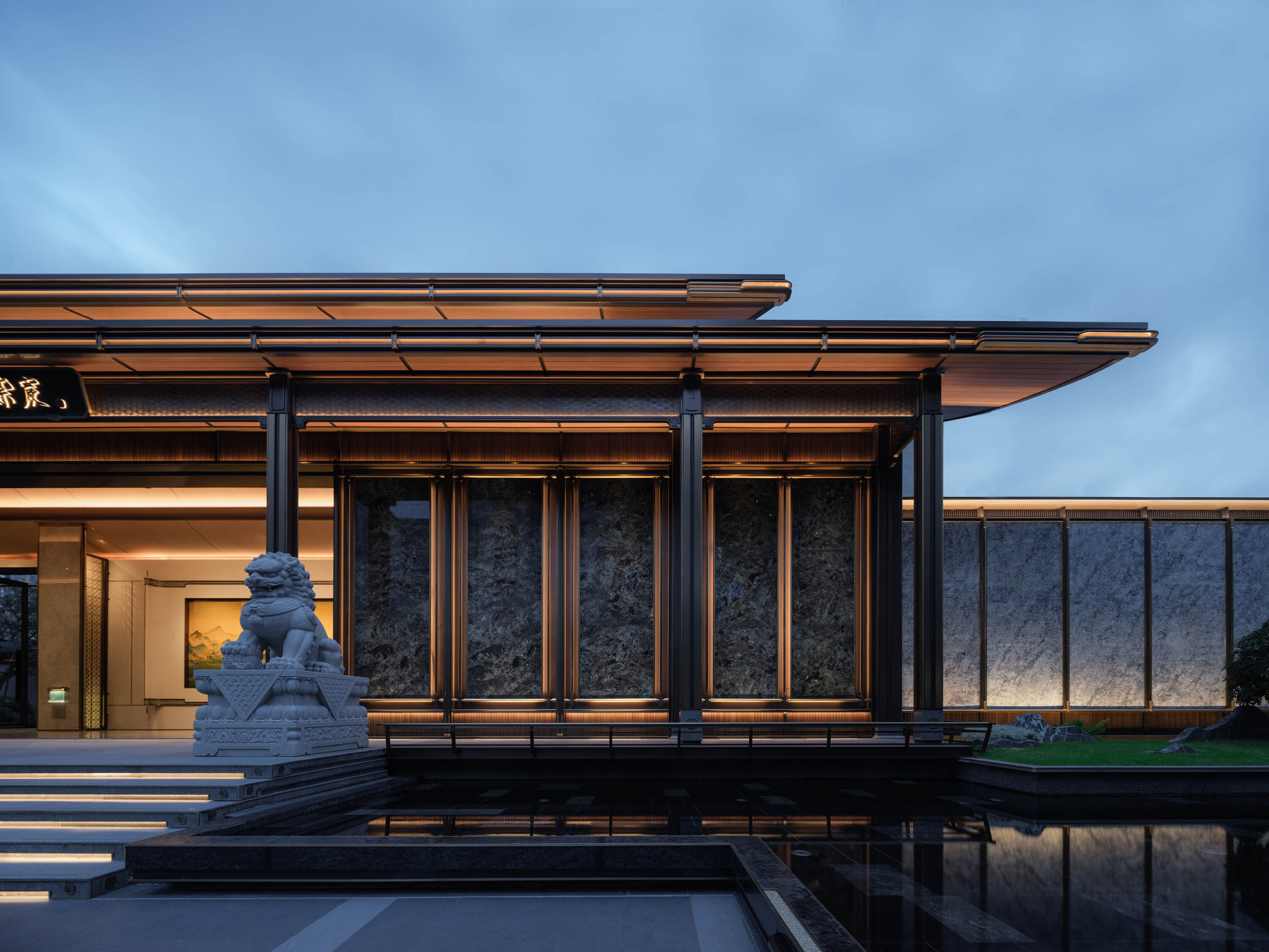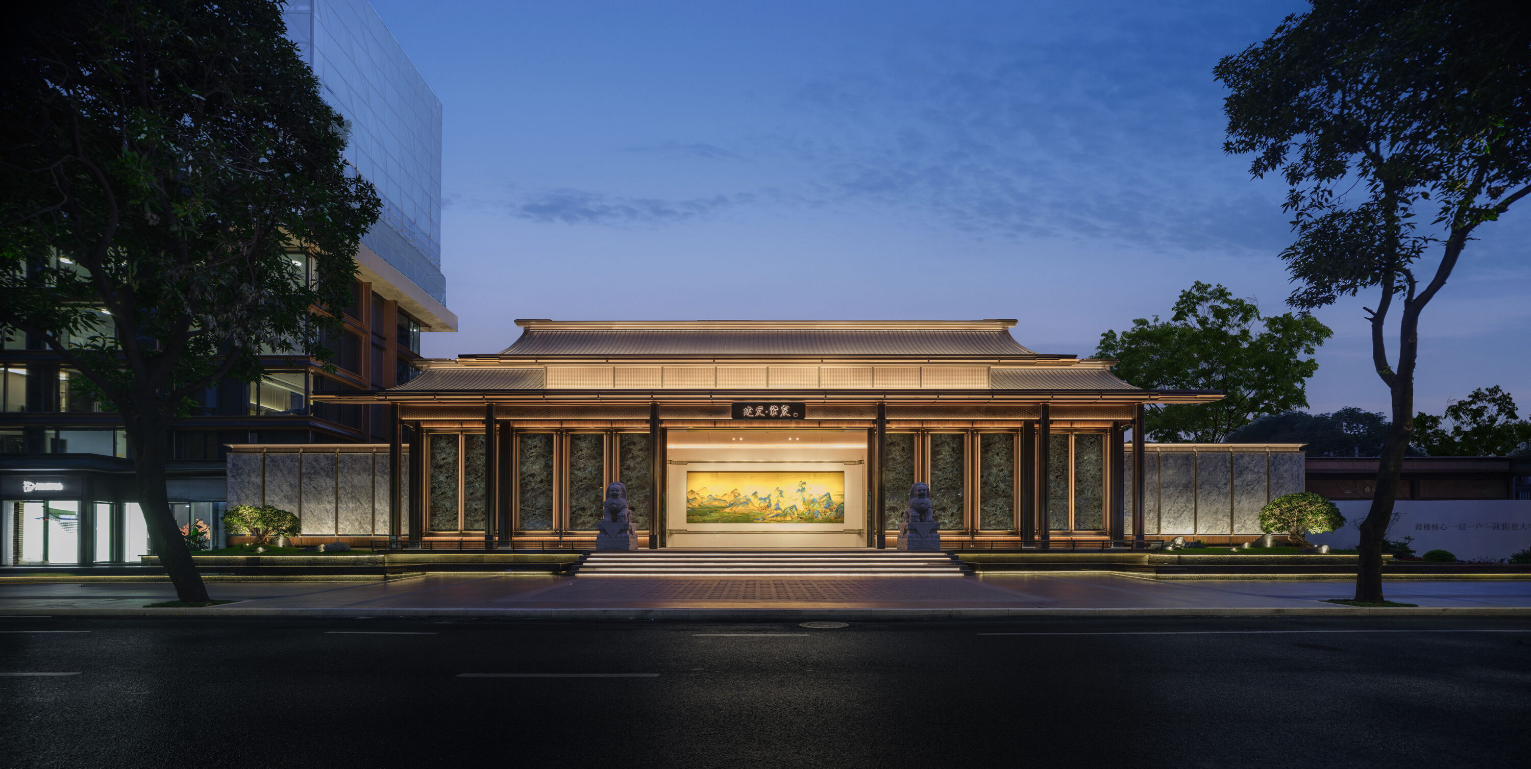 项目从典籍与宋画中提炼 “版引檐”“飞檐” 等宋代建筑元素,经现代化转译,平衡宋式与现代美学,展现宋韵细致精美、清丽沁润。“舒朗自然”“轻盈飘逸” 等特质,让现代生活体验宋代风雅。主入口中轴对称、三进礼序,融入宋式元素显温和文雅。高价值材料、飞檐、金色元素及黄金比例构图塑辨识度。高定立面全落地窗、转角窗设计,带来开阔视野。定制细节处,格栅取八达晕纹再构,单元门头尺度精细,尽显宋韵雅奢。