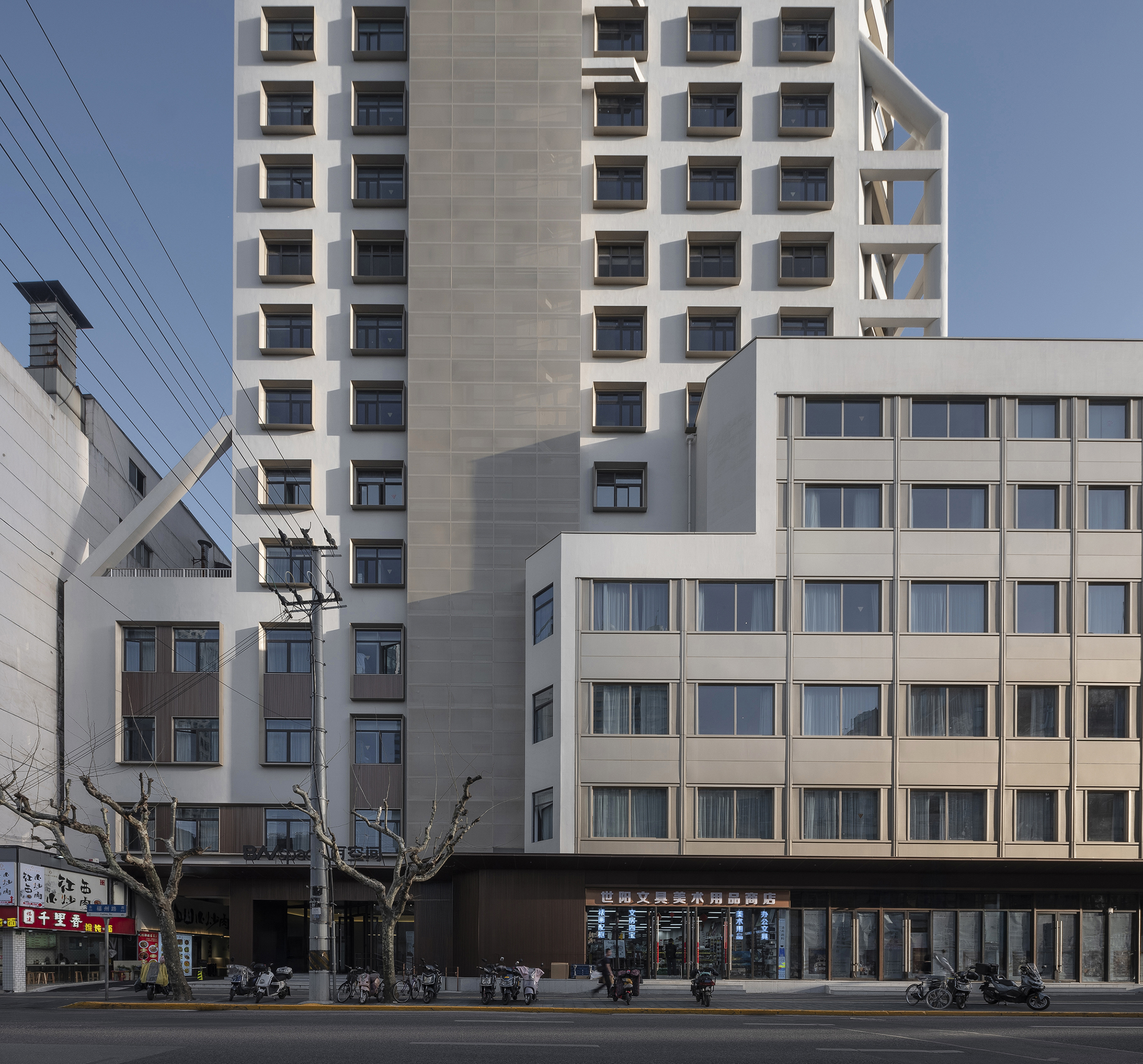 上海福州路355号城市更新项目位于上海文化核心区域,靠近外滩。项目通过创新设计使建于1999年的老旧综合商业建筑焕然一新,打造成充满活力的城市地标。设计巧妙融合现代美学与历史风格,精致的香槟色铝合金外墙、古铜色细节和穿孔铝板灵感来源于福州路悠久的文学传统。项目强调可持续性,通过建筑结构的适应性再利用,大幅提升了能效和环境性能。全新设计的阶梯入口广场提升了用户体验,增强了社会互动和城市联通性。