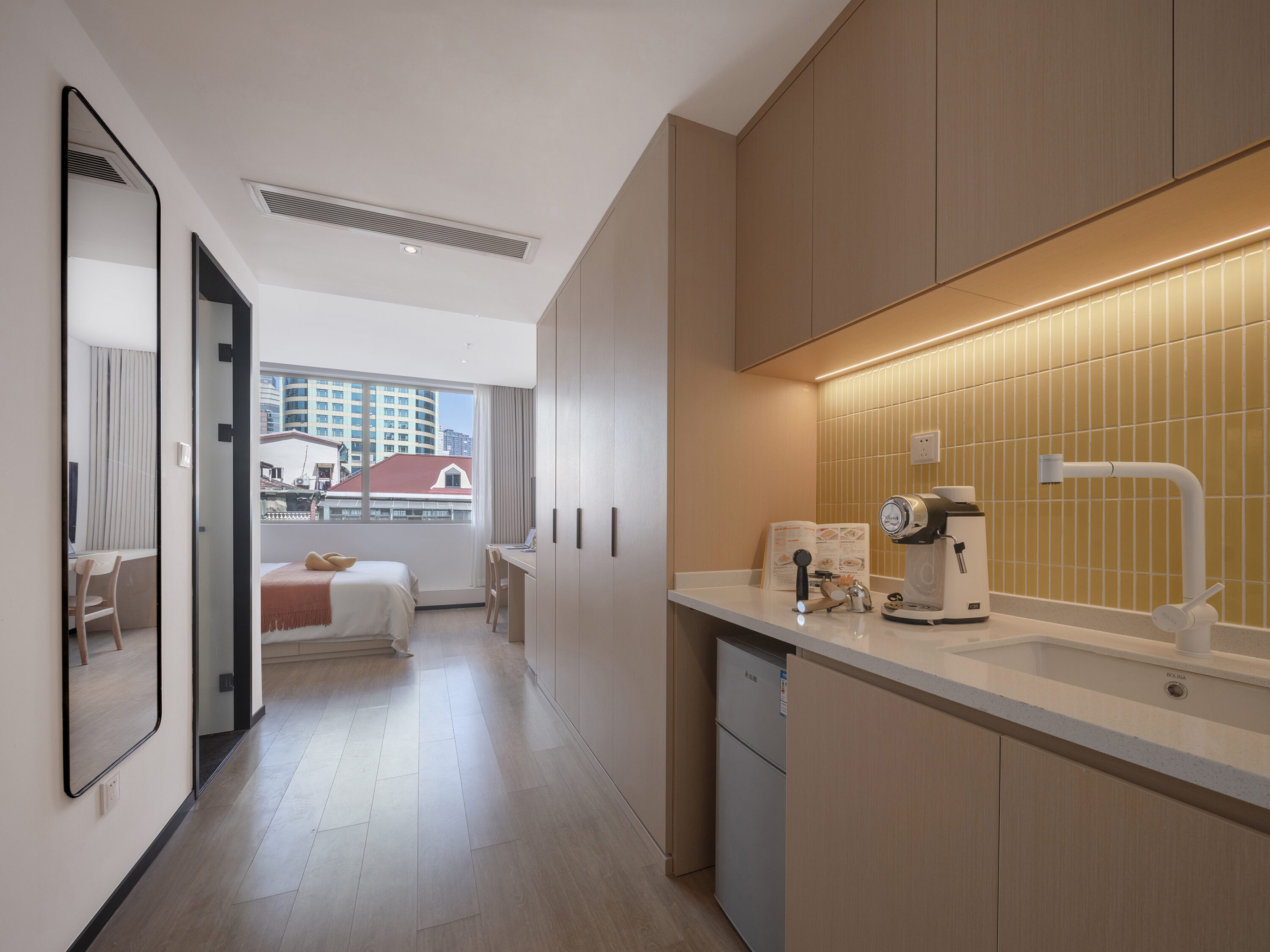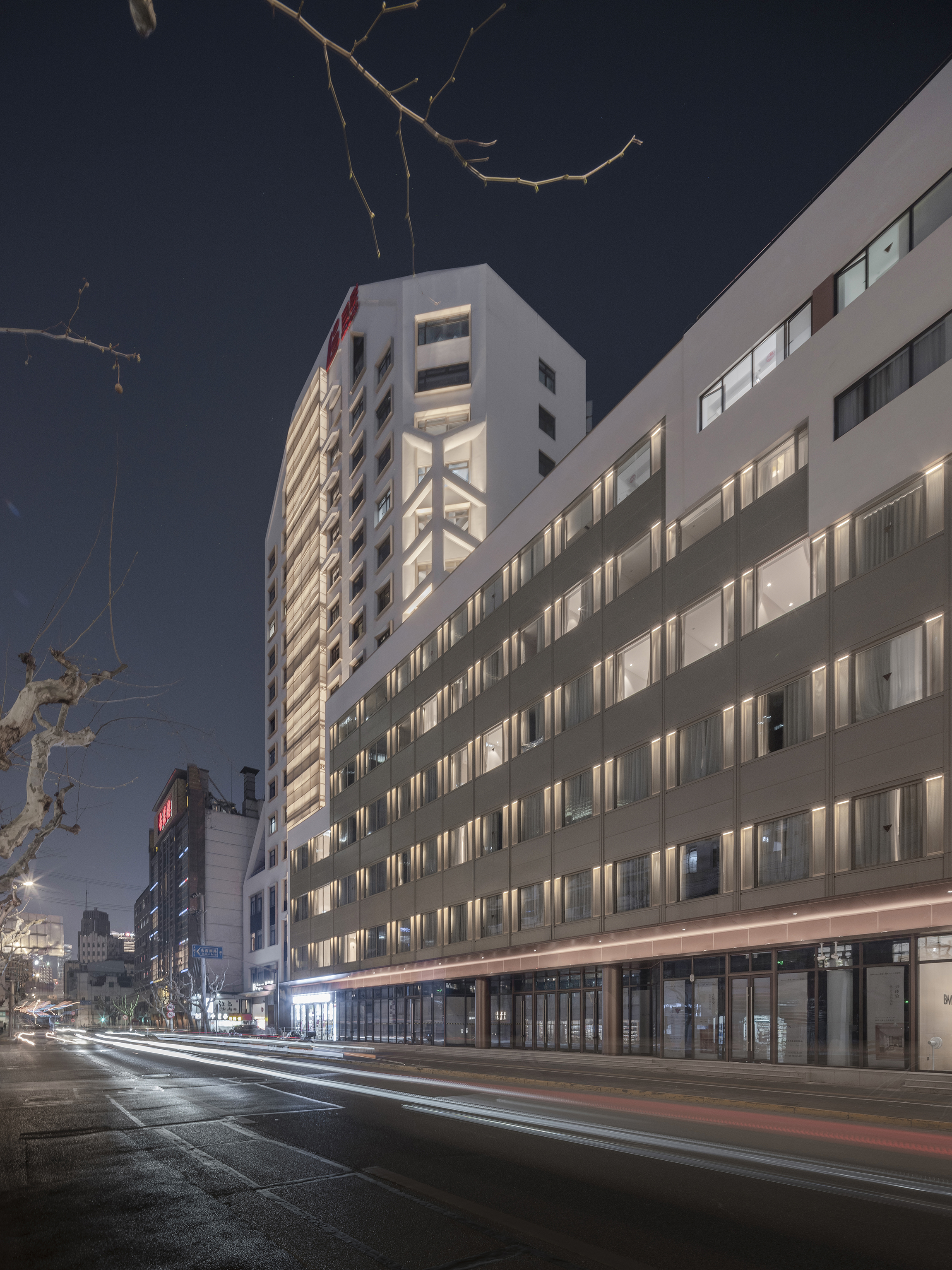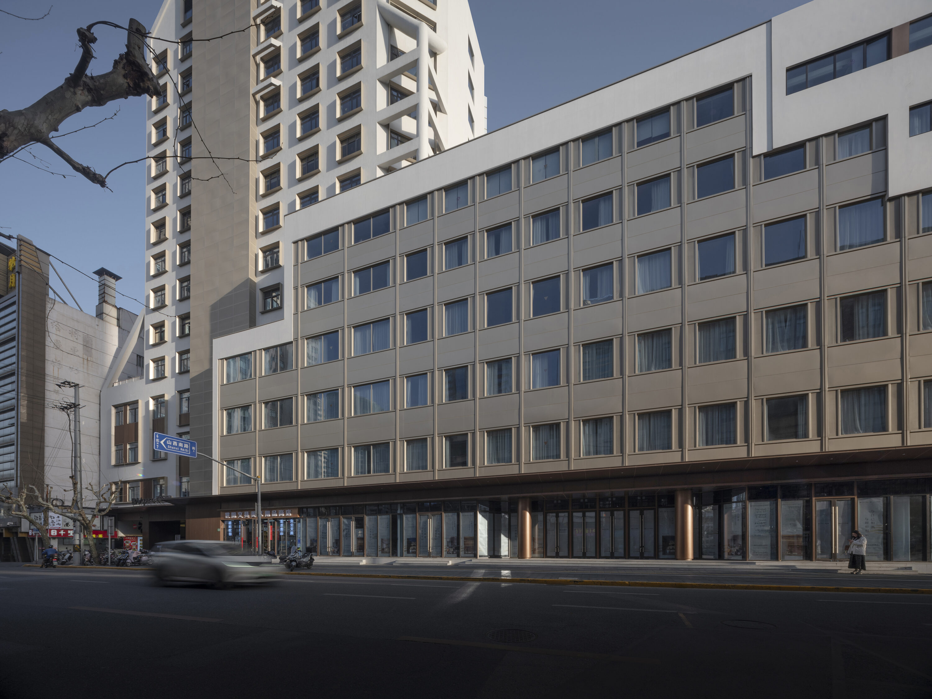 上海福州路355号城市更新项目位于上海文化核心区域,靠近外滩。项目通过创新设计使建于1999年的老旧综合商业建筑焕然一新,打造成充满活力的城市地标。设计巧妙融合现代美学与历史风格,精致的香槟色铝合金外墙、古铜色细节和穿孔铝板灵感来源于福州路悠久的文学传统。项目强调可持续性,通过建筑结构的适应性再利用,大幅提升了能效和环境性能。全新设计的阶梯入口广场提升了用户体验,增强了社会互动和城市联通性。