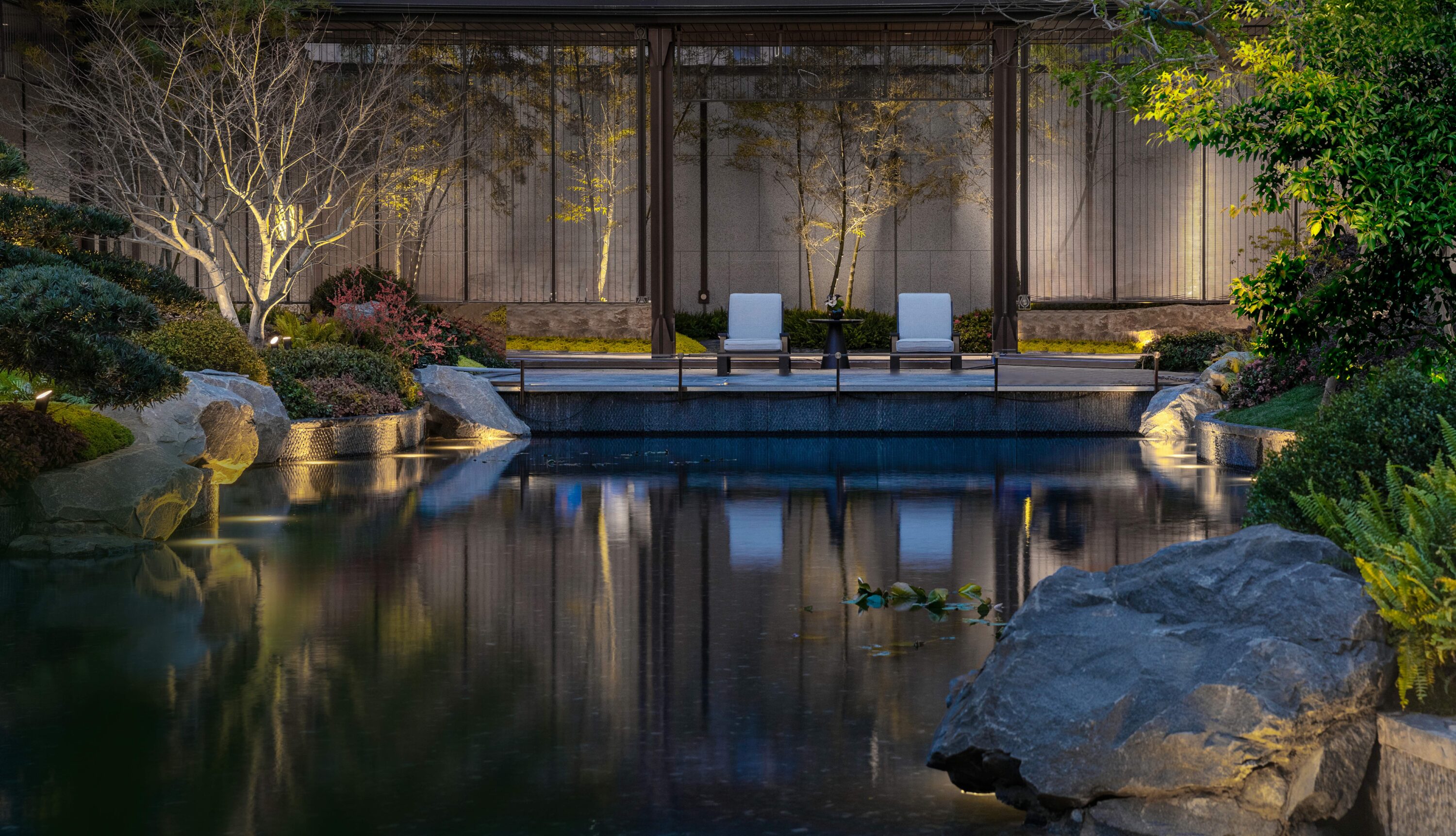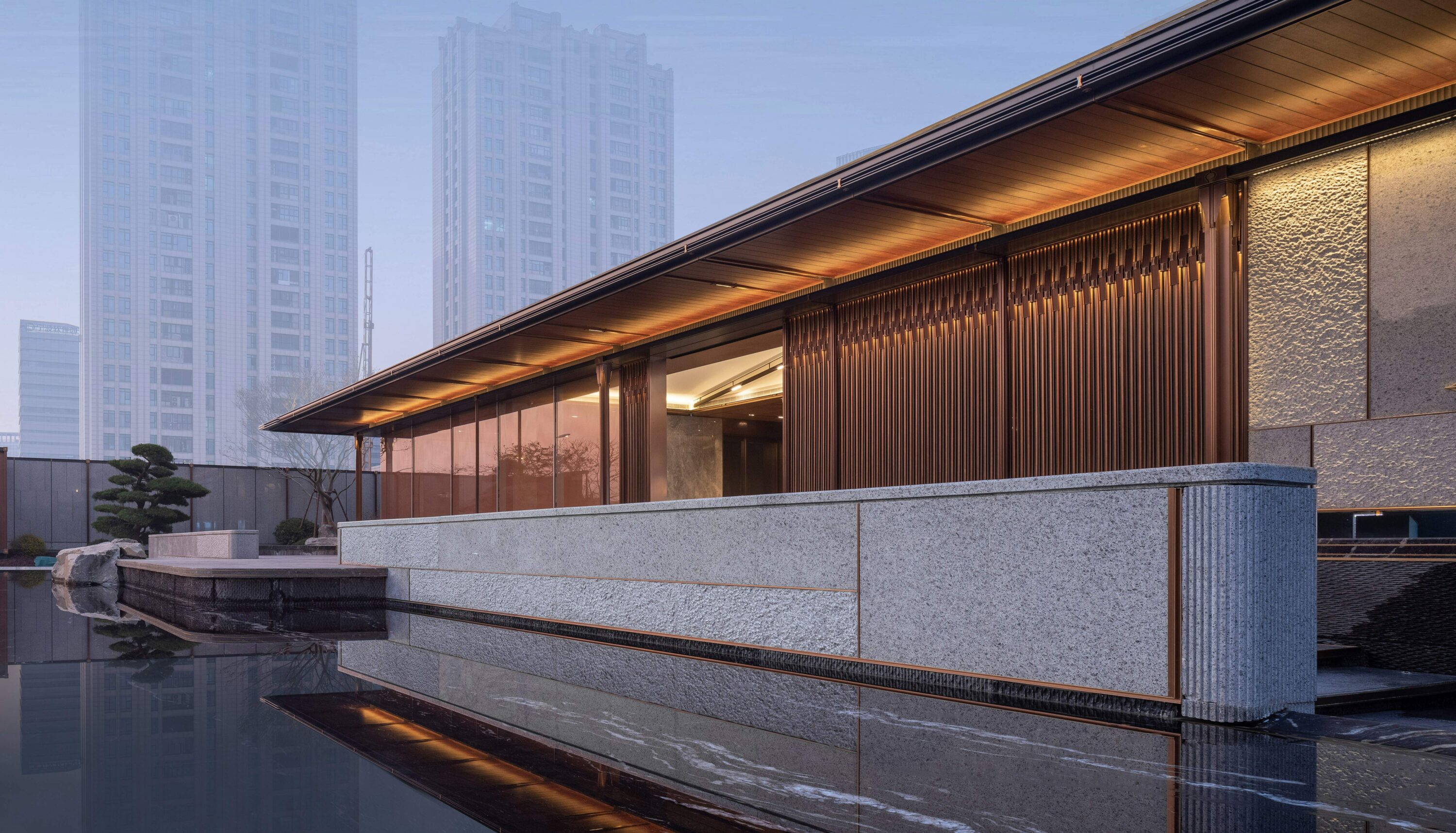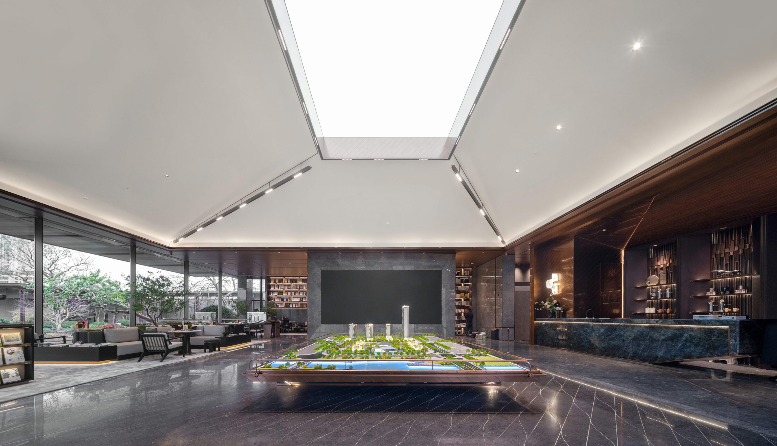 以规划设计的创新方法与思路指导设计,西地块南侧第一排建筑顺应南侧太平鸟时尚中心布局,同时减少楼栋之间的对角,东地块建筑呼应城市道路。整体空间布局顺应城市肌理,连绵起伏的天际线与大东江的水岸相互交映,与时代和国家远望同行。