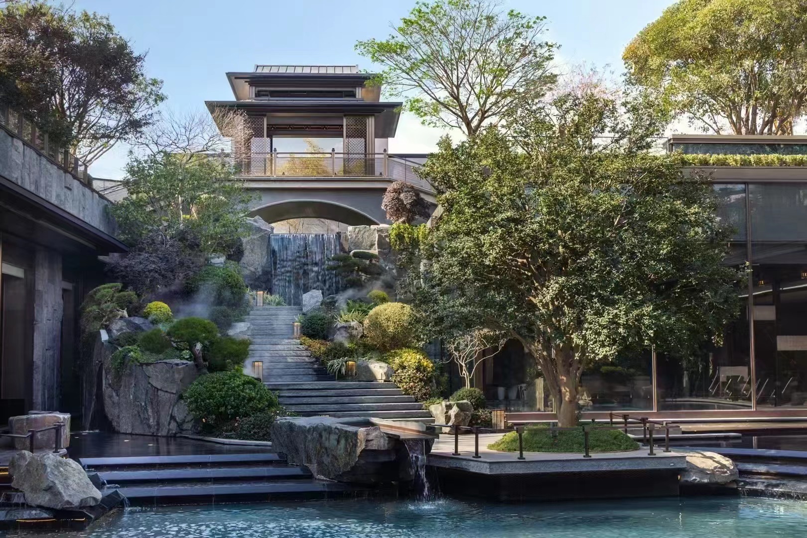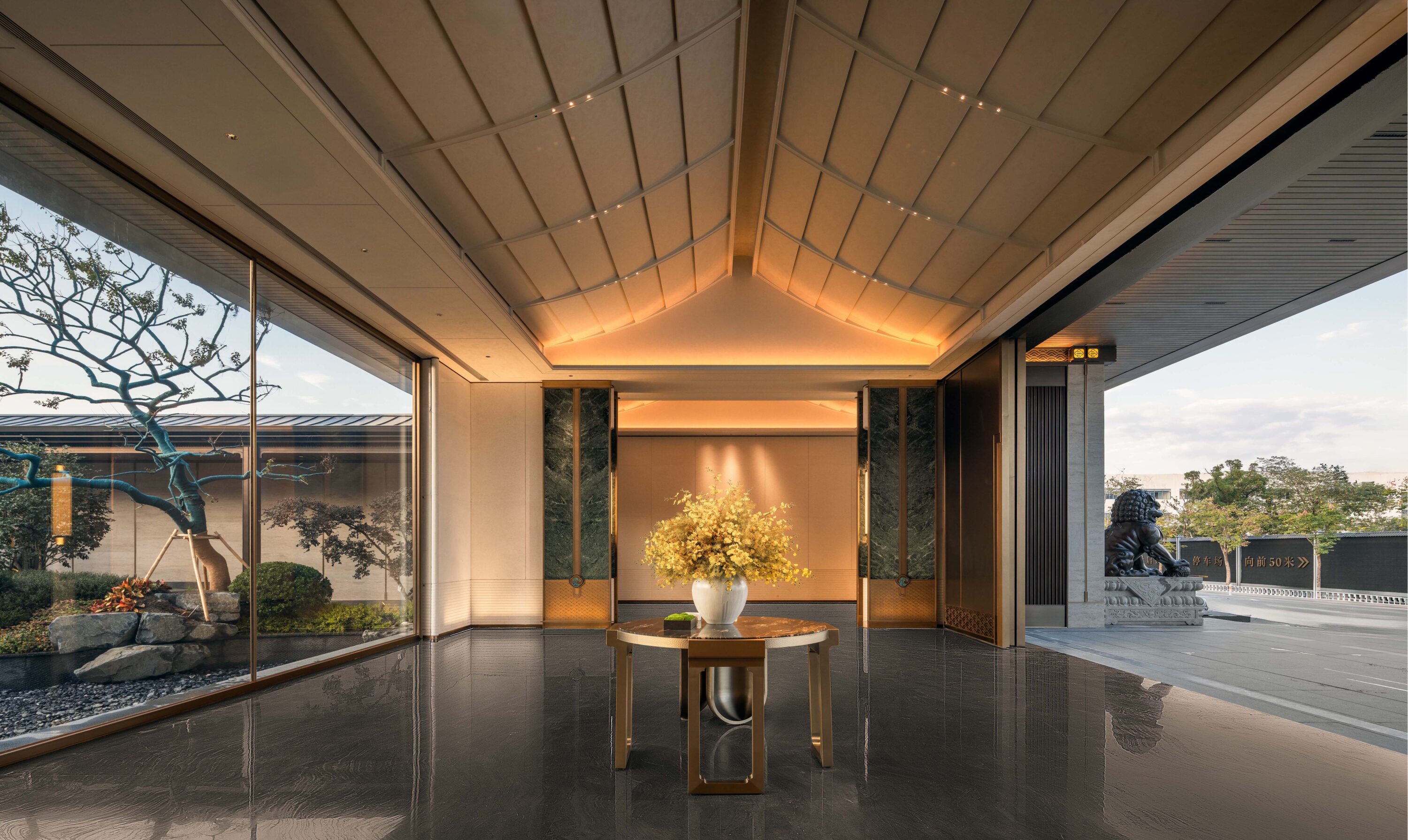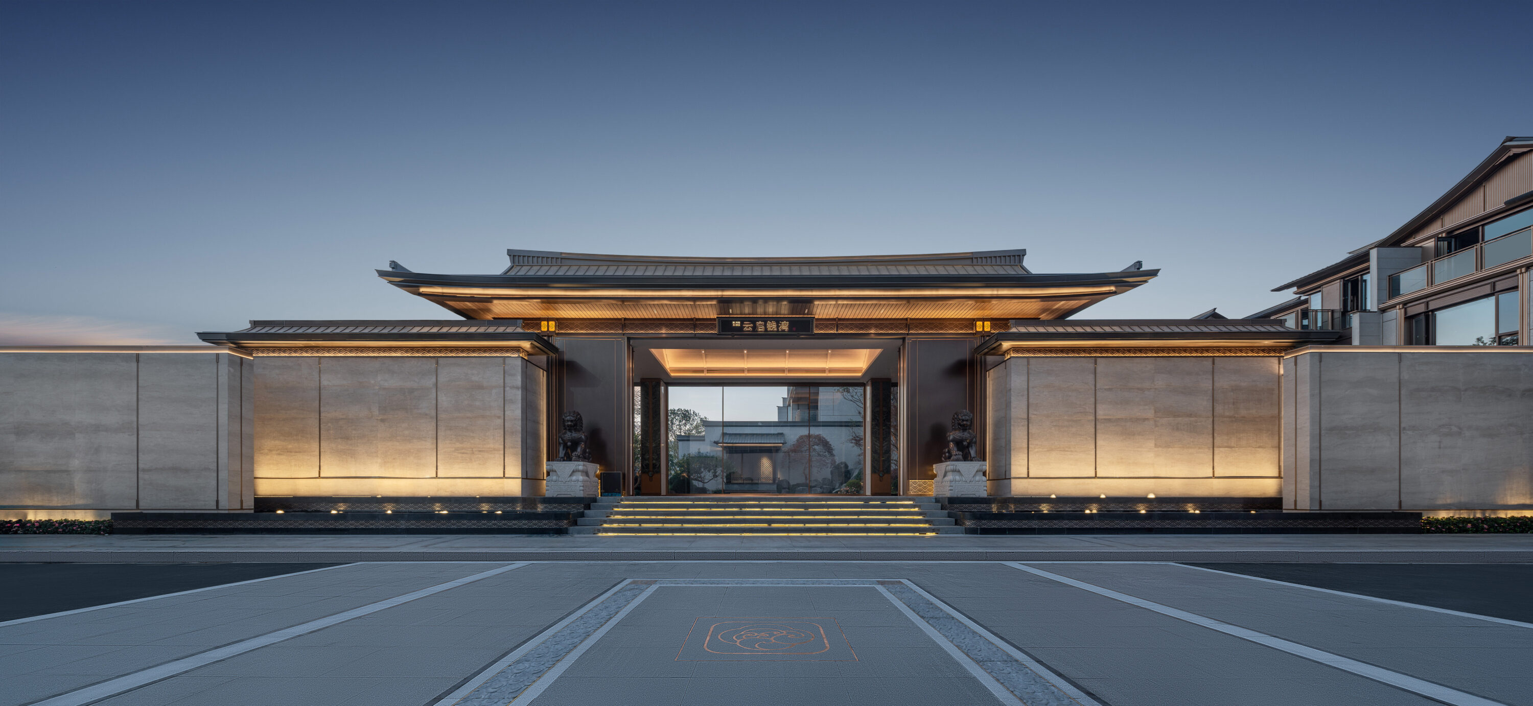 项目位于杭州东部湾新城金沙嘴板块、杭州新主城区拥江发展带极佳位置,临江景观资源优越,周边绿地系统与配套设施完备;设计将场地融入街区级绿地系统并引入林荫步行街区体系,同时也将住区分为更小的街区单位,并合理设置归家入口节点,使住区归家慢行动线与城市景观慢行系统相融,实现绿色归家;沿江组团设置利于景观渗透,有效呼应与最优利用景观资源;户型设计以“借光-借势-借景”三大策略打造有天有地的中式宅园。