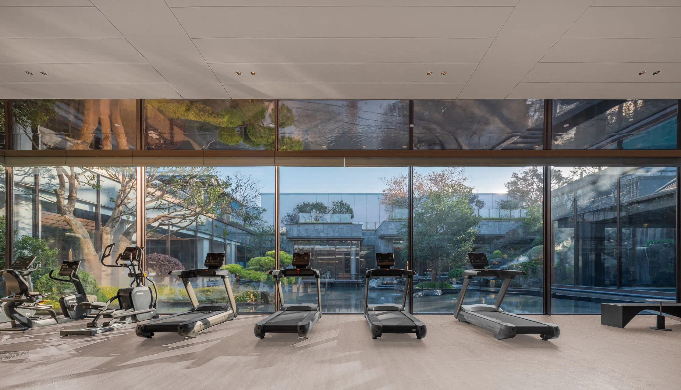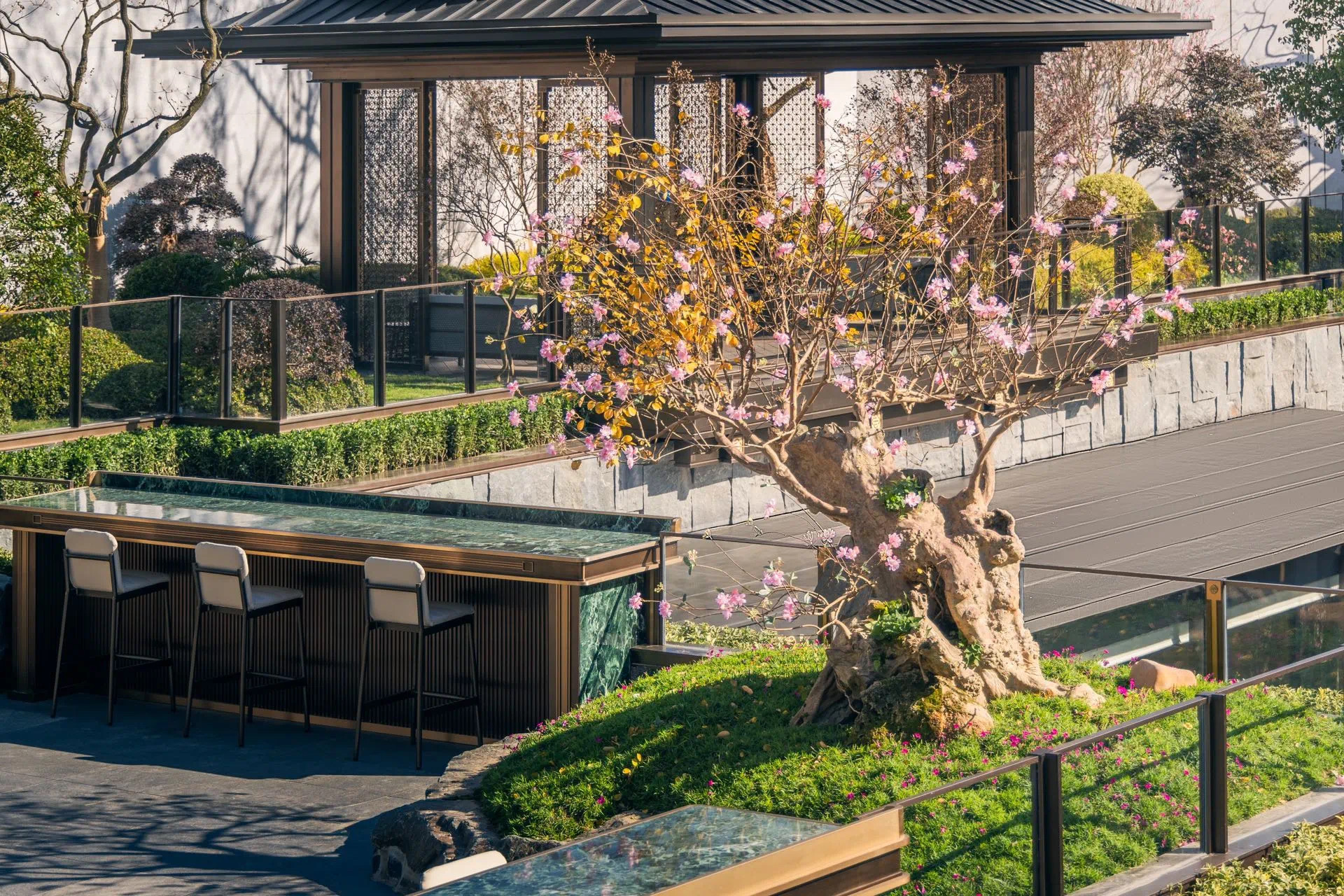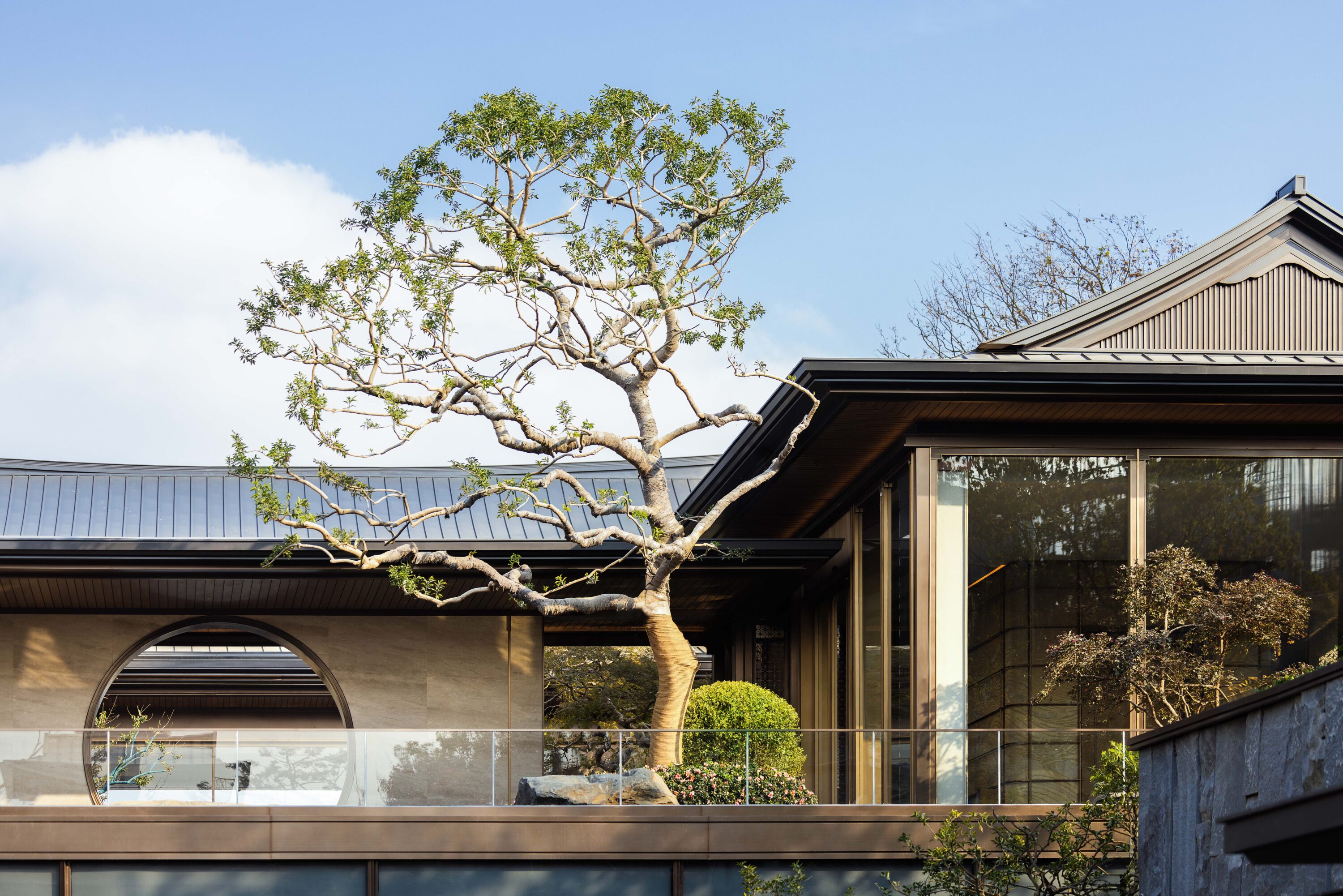 项目位于杭州东部湾新城金沙嘴板块、杭州新主城区拥江发展带极佳位置,临江景观资源优越,周边绿地系统与配套设施完备;设计将场地融入街区级绿地系统并引入林荫步行街区体系,同时也将住区分为更小的街区单位,并合理设置归家入口节点,使住区归家慢行动线与城市景观慢行系统相融,实现绿色归家;沿江组团设置利于景观渗透,有效呼应与最优利用景观资源;户型设计以“借光-借势-借景”三大策略打造有天有地的中式宅园。