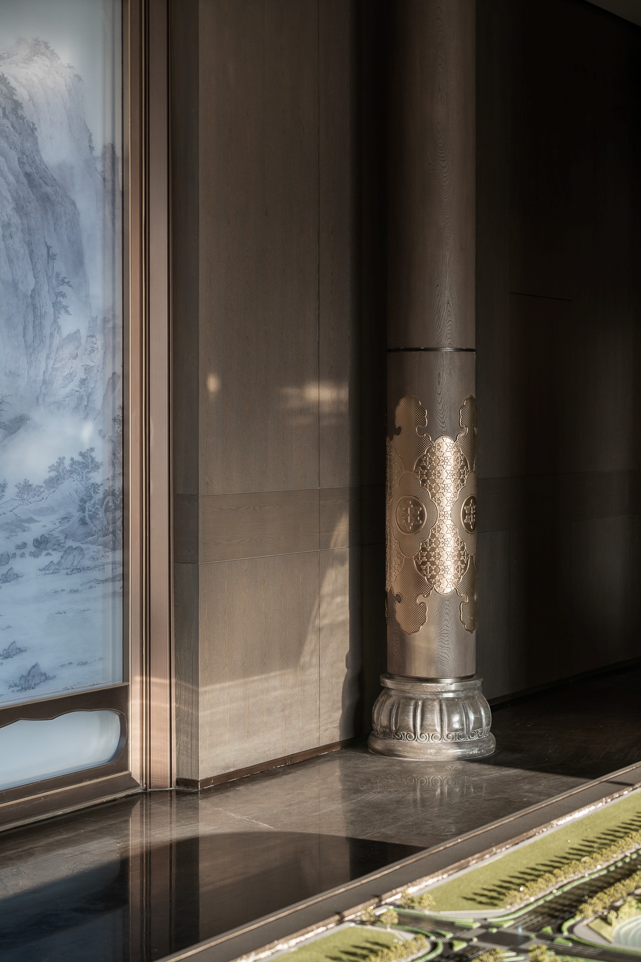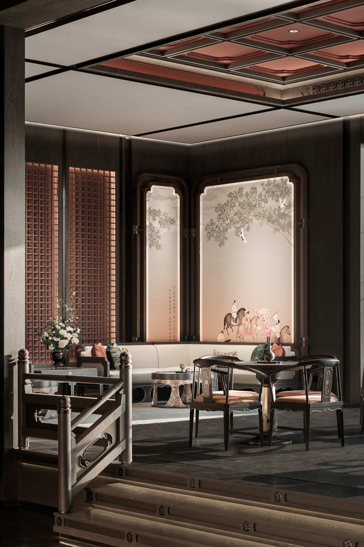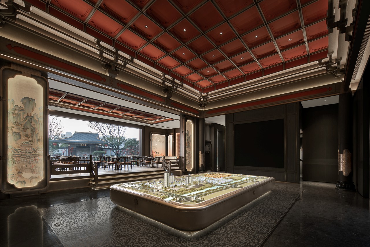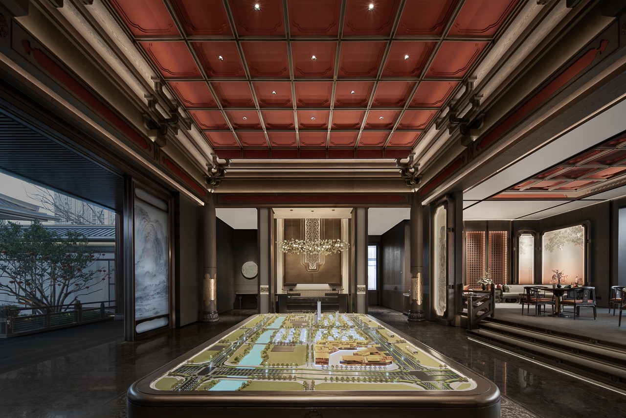 本项目以盛唐的建筑礼仪制和文人雅趣为设计理念,来打造现下的多功能的山水唐风雅居生活社区,再现唐人的万象生活景观设计为山水唐风,将传统唐式建筑精髓与现代人居理念完美结合,整个空间布局采取唐长安城里坊三进的设计手法,三进体现了盛唐建筑礼制的思想。借鉴唐长安城的里坊建筑礼制空间序列,打造层层府邸院落空间。力求住宅景观打造成一幅立体的唐风山水画卷,将盛唐情境融入到场地设计中。