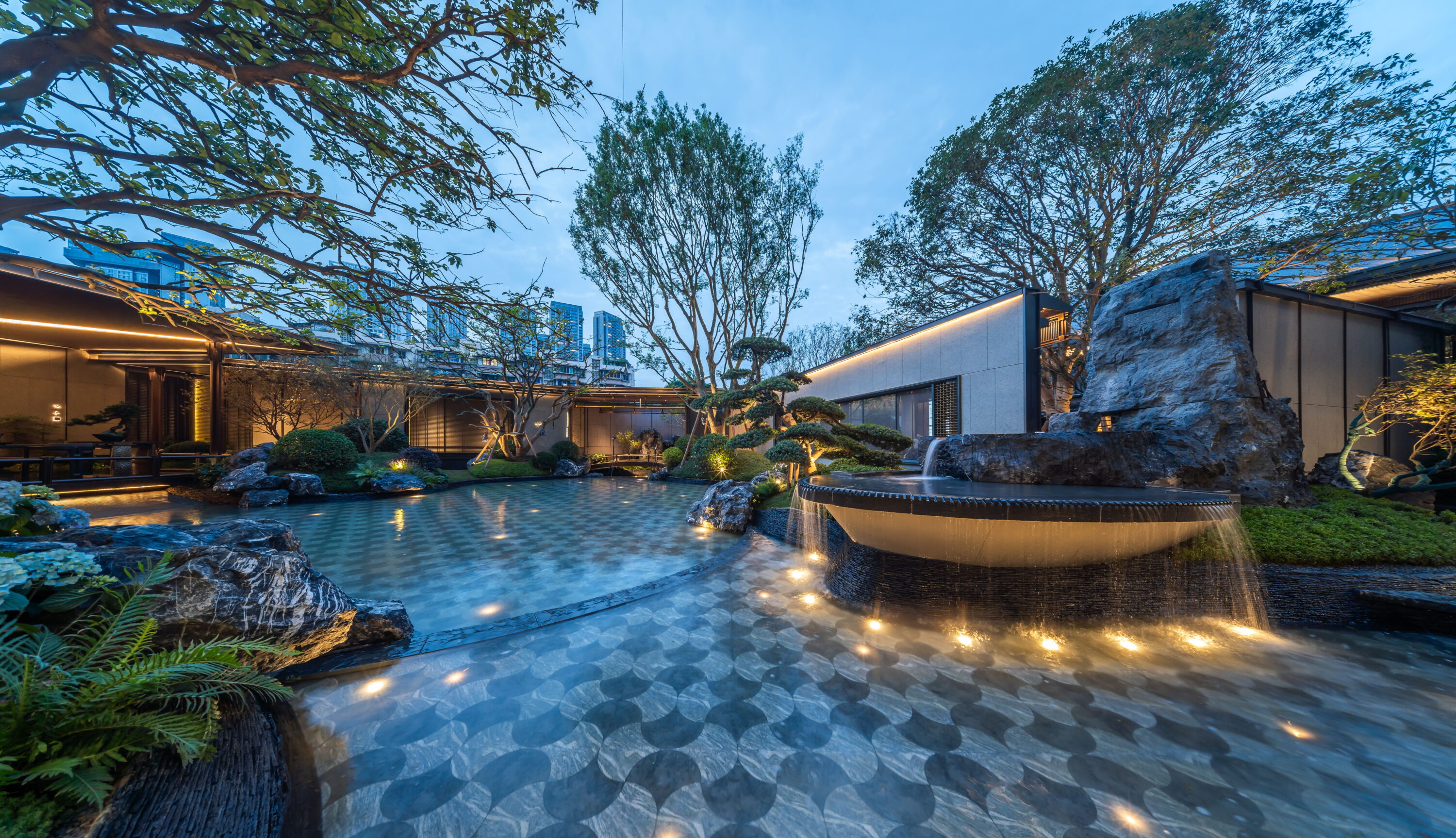 成都望江云启住宅项目设计充分考虑与周边自然景观的呼应;归家流线采用“三进院落”的归家礼序,将传统中式的仪式感发挥得淋漓尽致;中心景观采用东方园林空间格局,模糊场域边界,寄情于山水,利用自然元素,通过现代美学提炼让园林与人产生共鸣,运用“以小见大”的设计手法,通过诗意东方的现代演绎获得身体与心境的释然;建筑造型的设计中,通过“去形留意”的手法,突破传统中式的厚重和规制,更加符合现代审美。