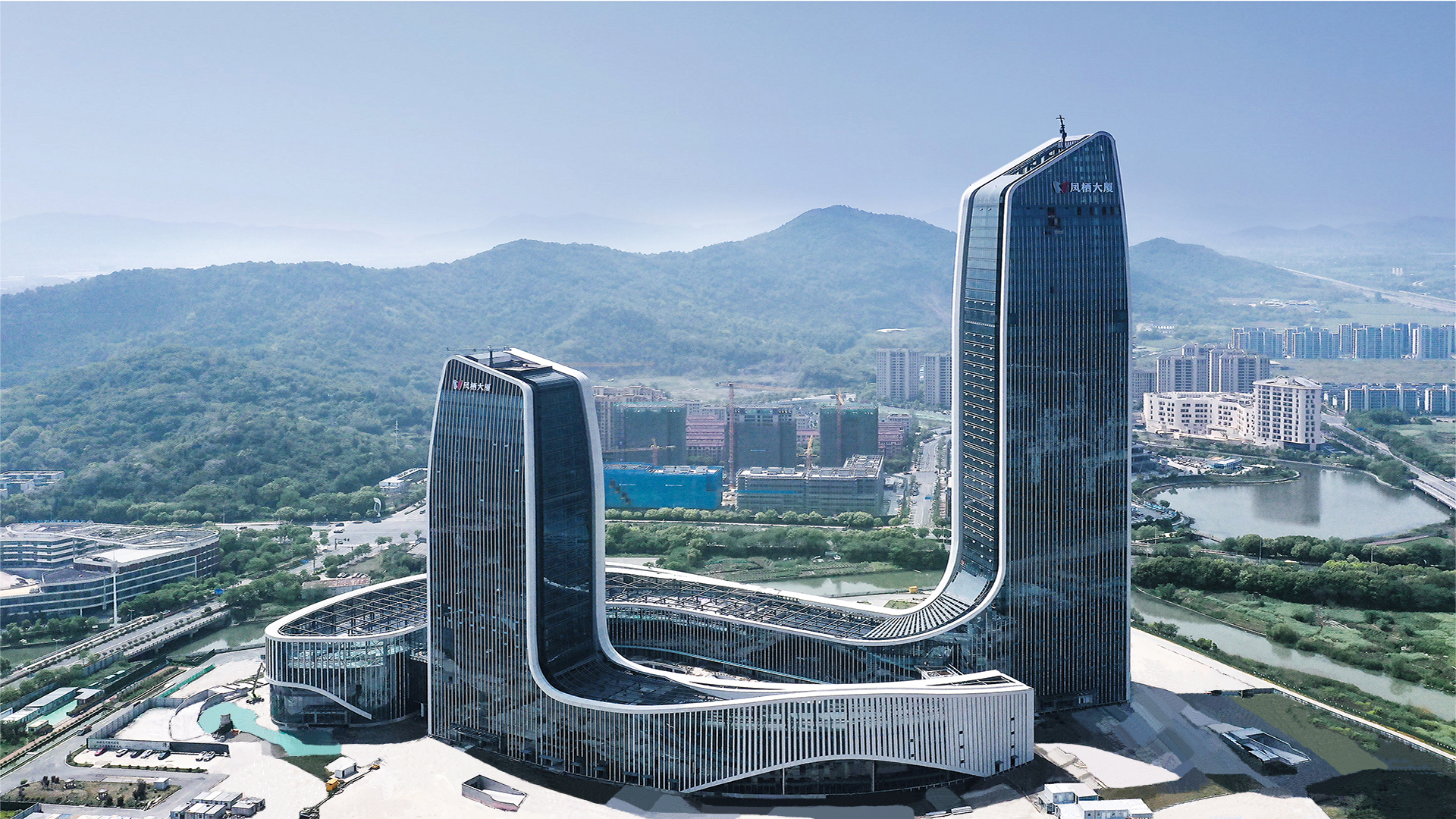 本项目位于湖州生态科技城核心区,定位为总部办公、商务、人才综合体、城市配套商业。项目计划打造绿色生态城超高层建筑新地标,成为区域未来发展的重要平台。总建筑面积约31万平方米,包含两栋超高层建筑,分别为46层和30层,最高建筑高度达230米。主楼形体方正,平面组织高效合理。主楼和裙房外立面采用一体化设计,提取江南山水形态特征,具有时尚的流线感,充满地域文化气息,象征着湖州不断涅磐舞动的城市发展历程。