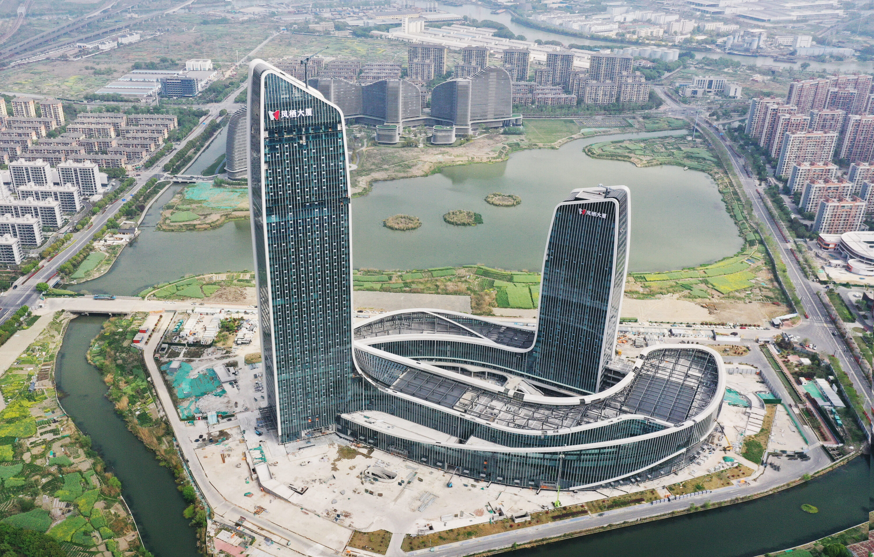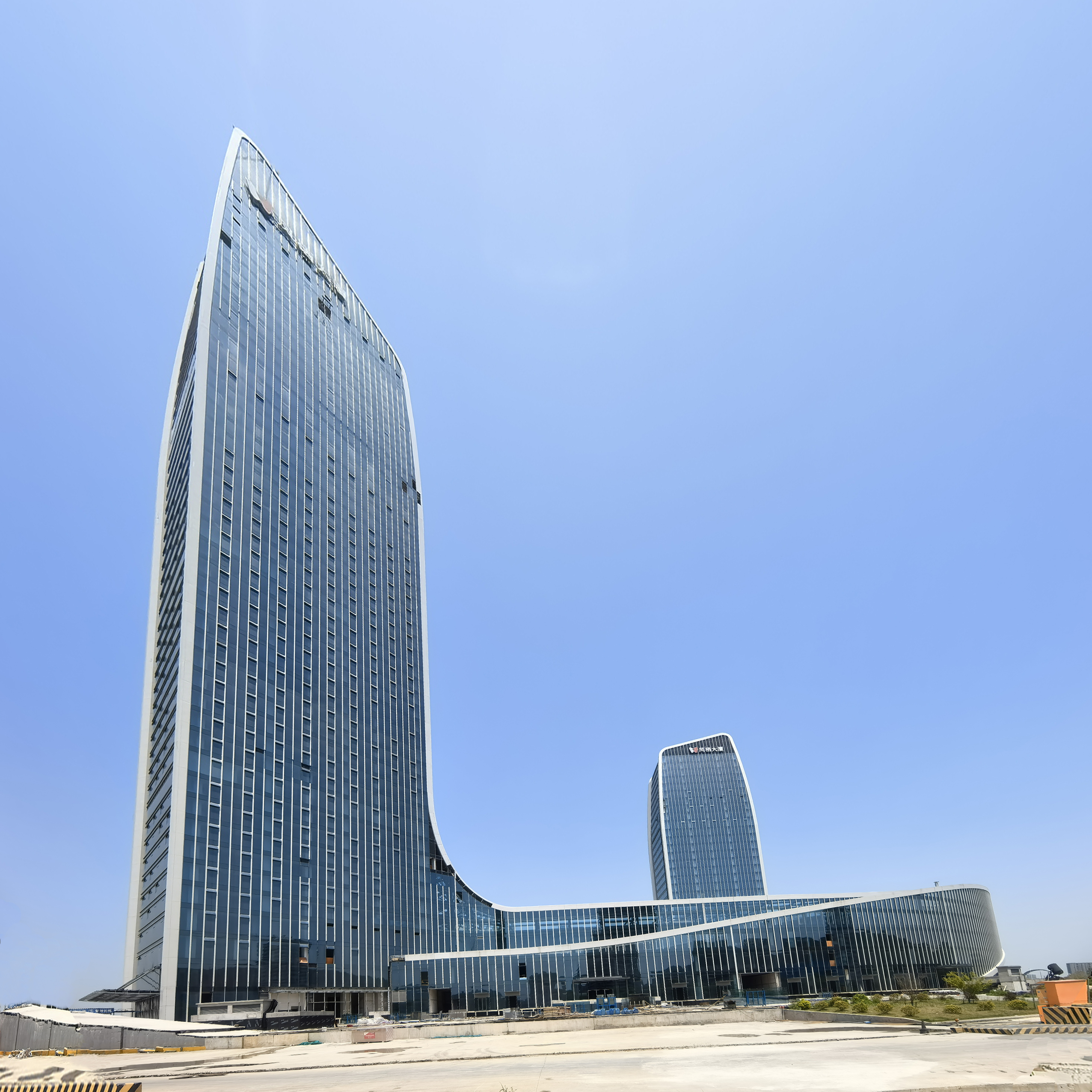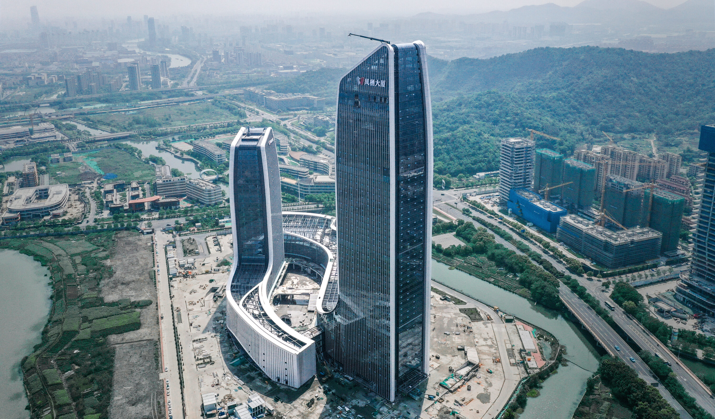 本项目位于湖州生态科技城核心区,定位为总部办公、商务、人才综合体、城市配套商业。项目计划打造绿色生态城超高层建筑新地标,成为区域未来发展的重要平台。总建筑面积约31万平方米,包含两栋超高层建筑,分别为46层和30层,最高建筑高度达230米。主楼形体方正,平面组织高效合理。主楼和裙房外立面采用一体化设计,提取江南山水形态特征,具有时尚的流线感,充满地域文化气息,象征着湖州不断涅磐舞动的城市发展历程。