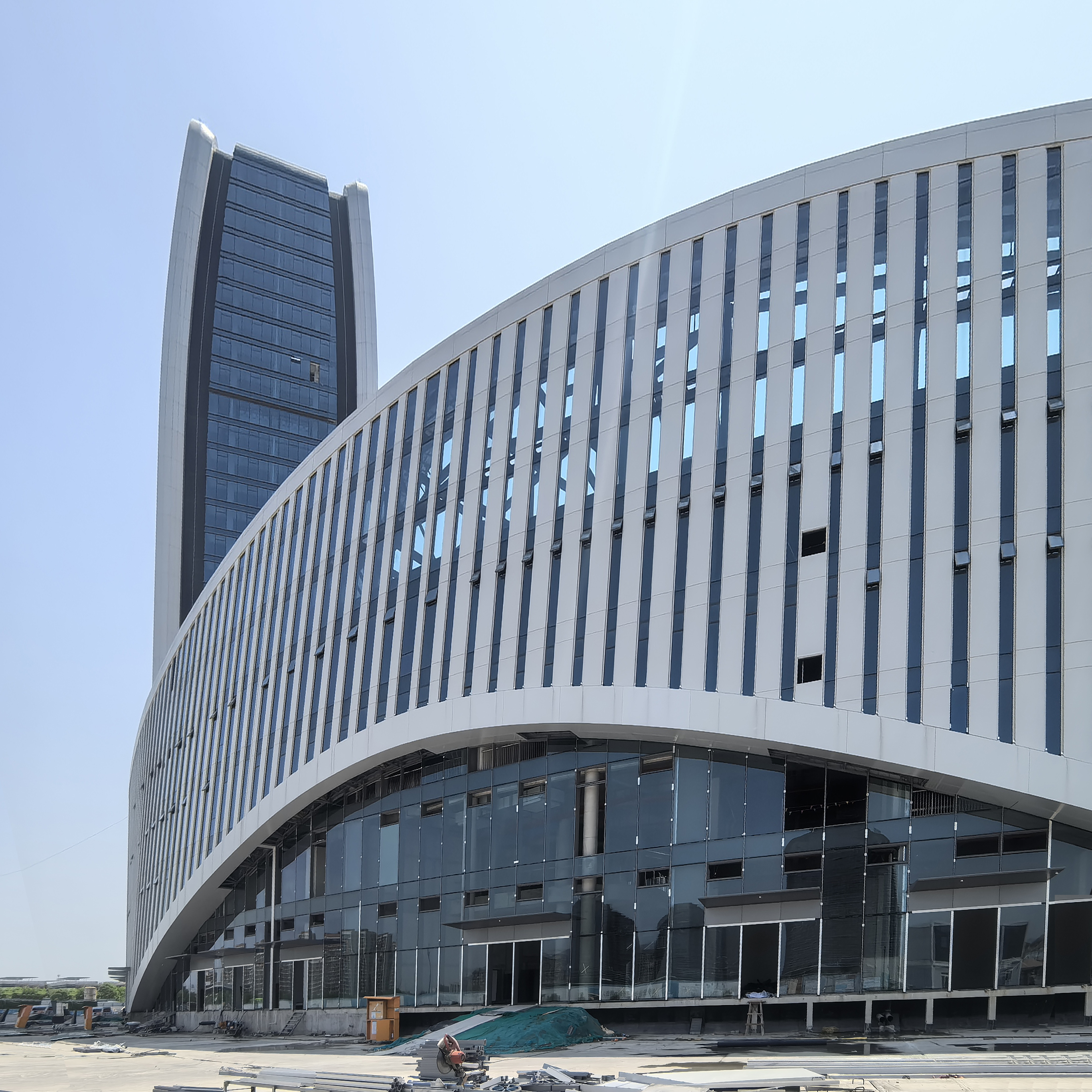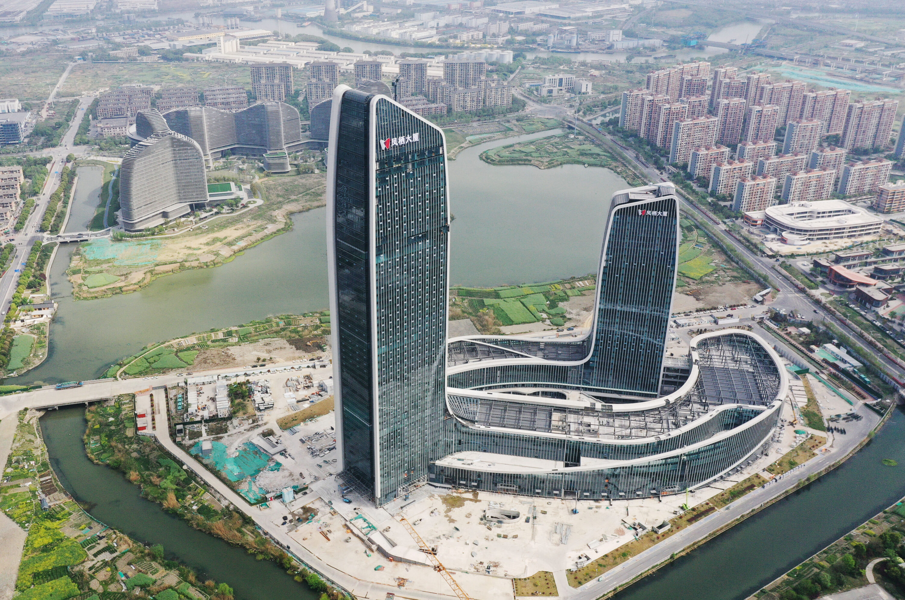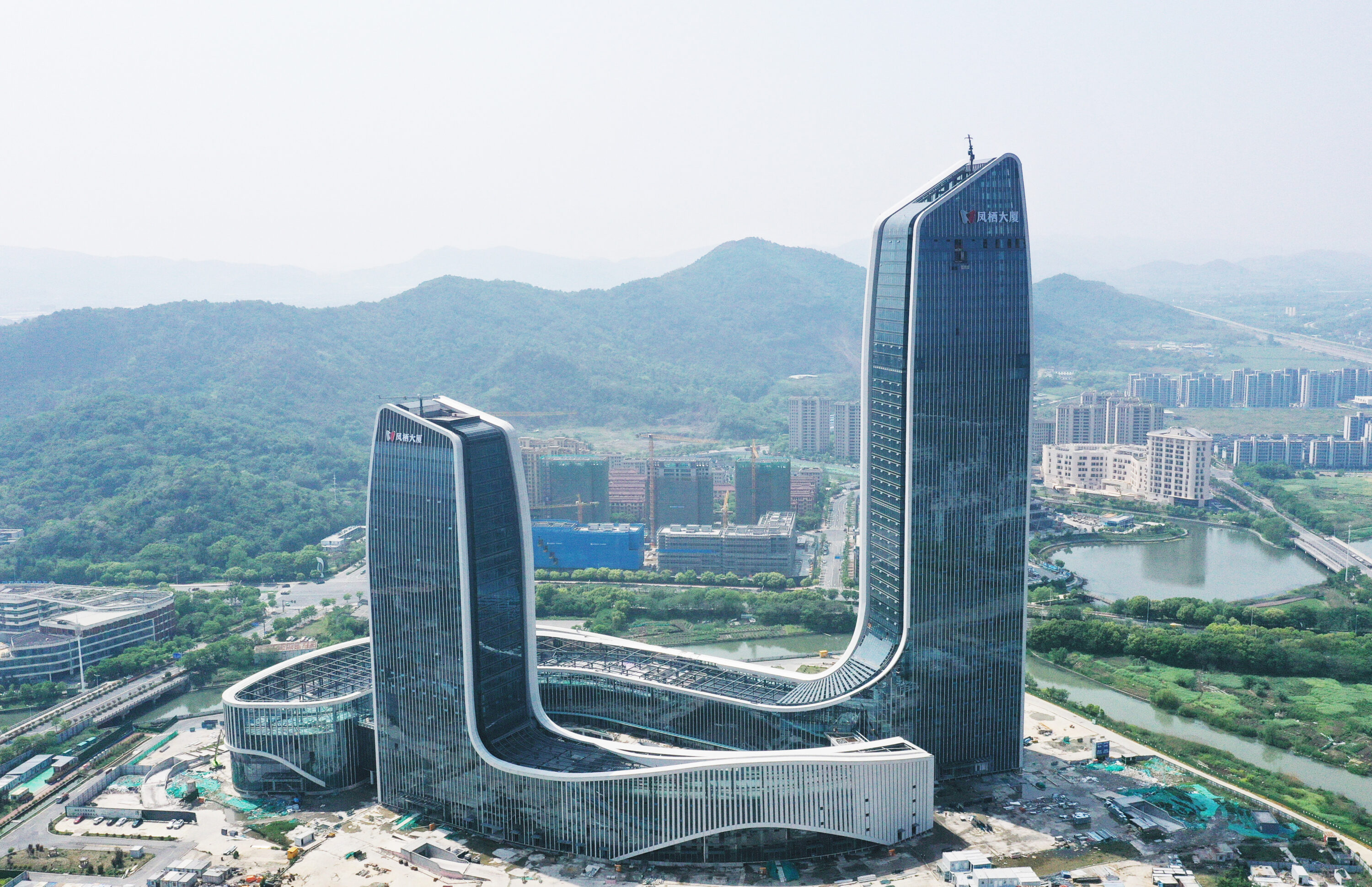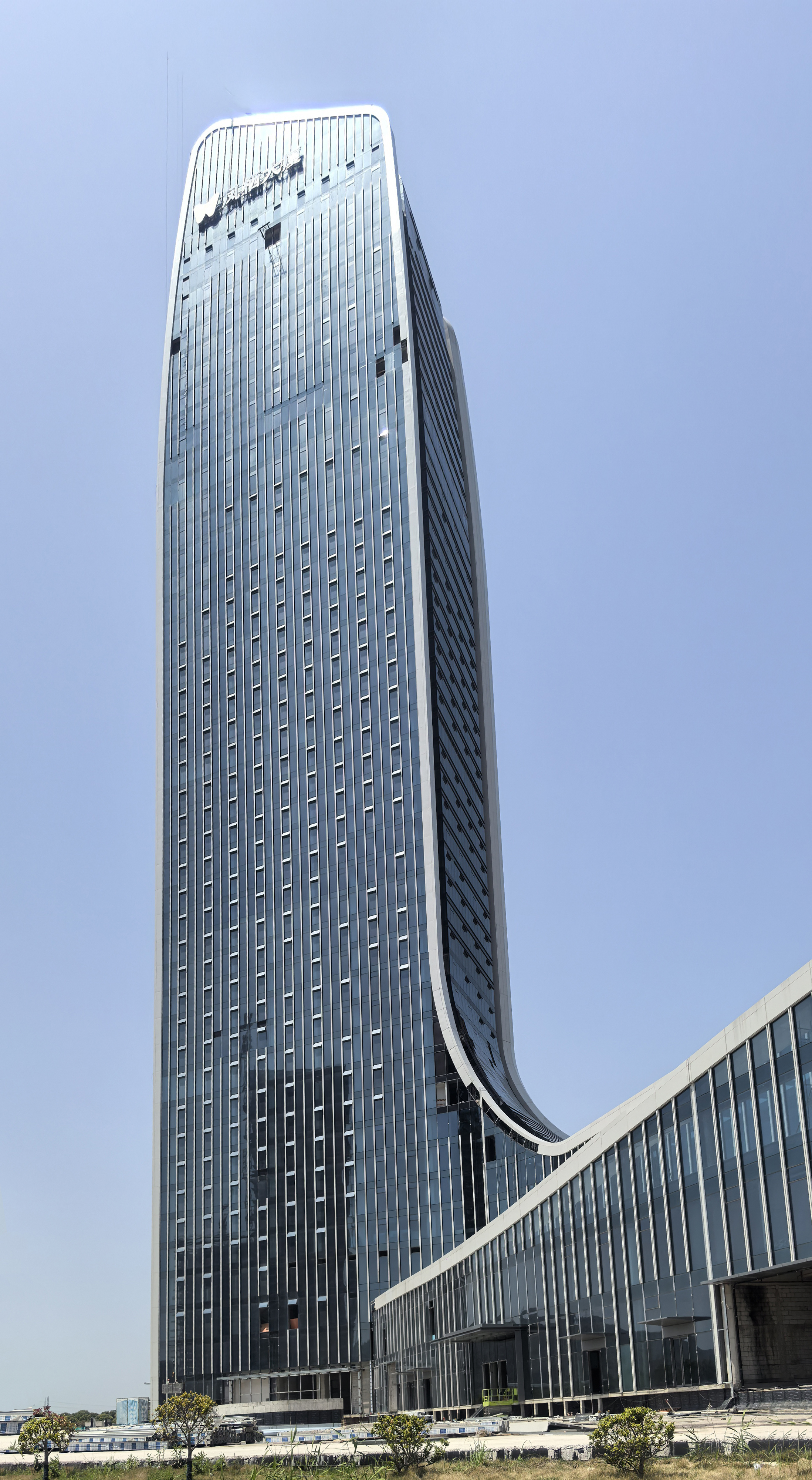 本项目位于湖州生态科技城核心区,定位为总部办公、商务、人才综合体、城市配套商业。项目计划打造绿色生态城超高层建筑新地标,成为区域未来发展的重要平台。总建筑面积约31万平方米,包含两栋超高层建筑,分别为46层和30层,最高建筑高度达230米。主楼形体方正,平面组织高效合理。主楼和裙房外立面采用一体化设计,提取江南山水形态特征,具有时尚的流线感,充满地域文化气息,象征着湖州不断涅磐舞动的城市发展历程。