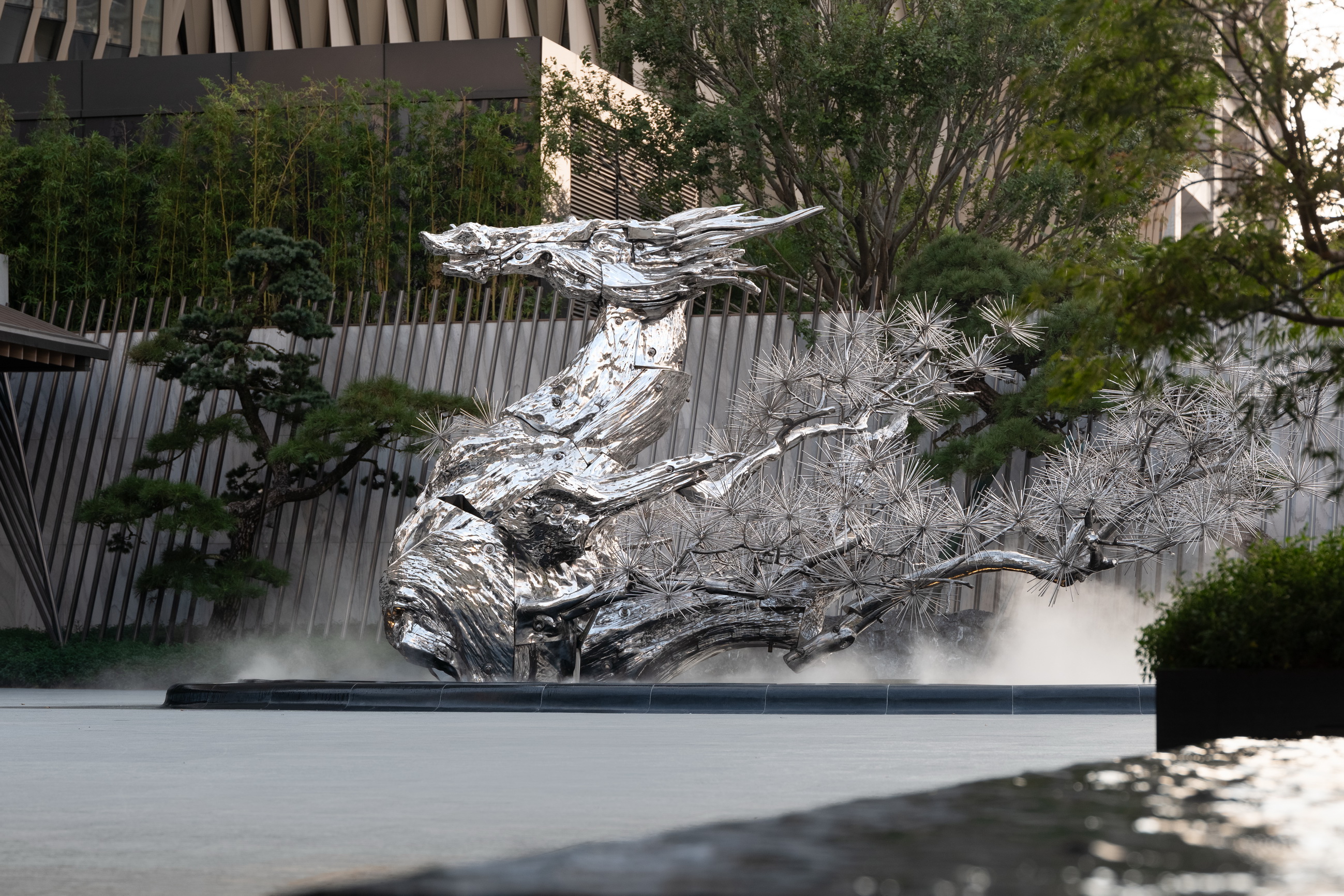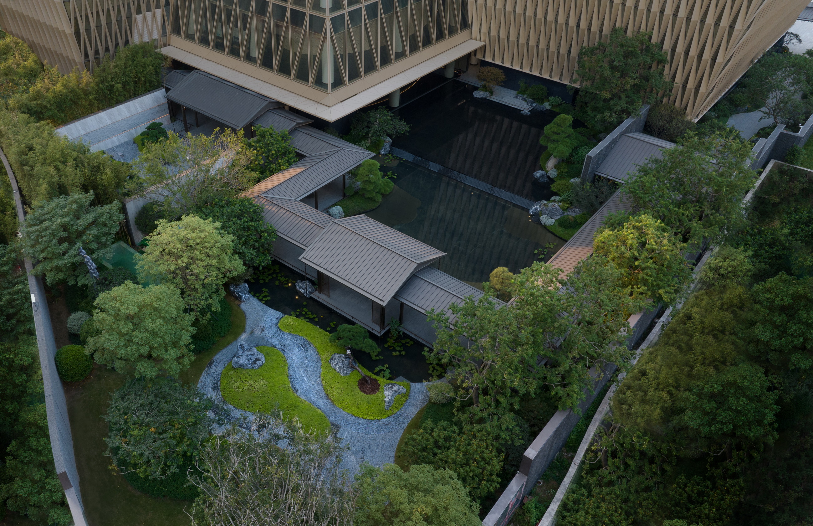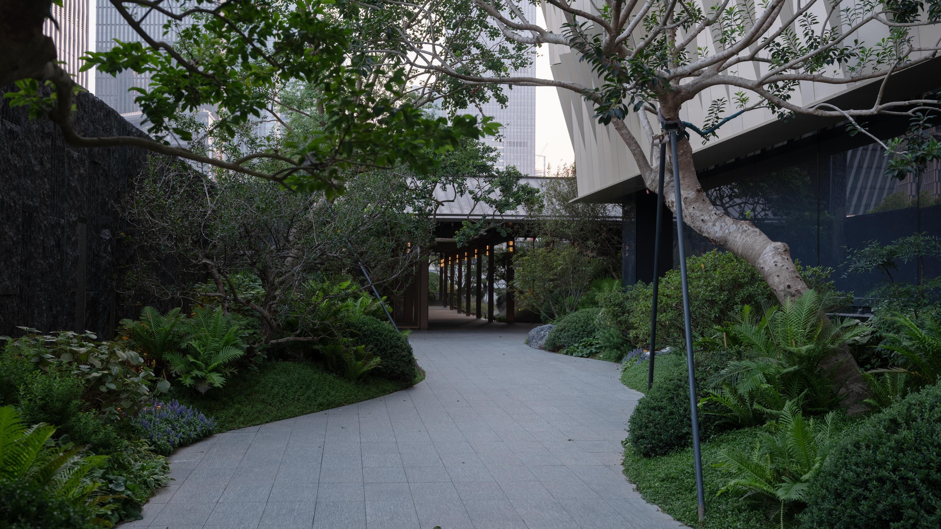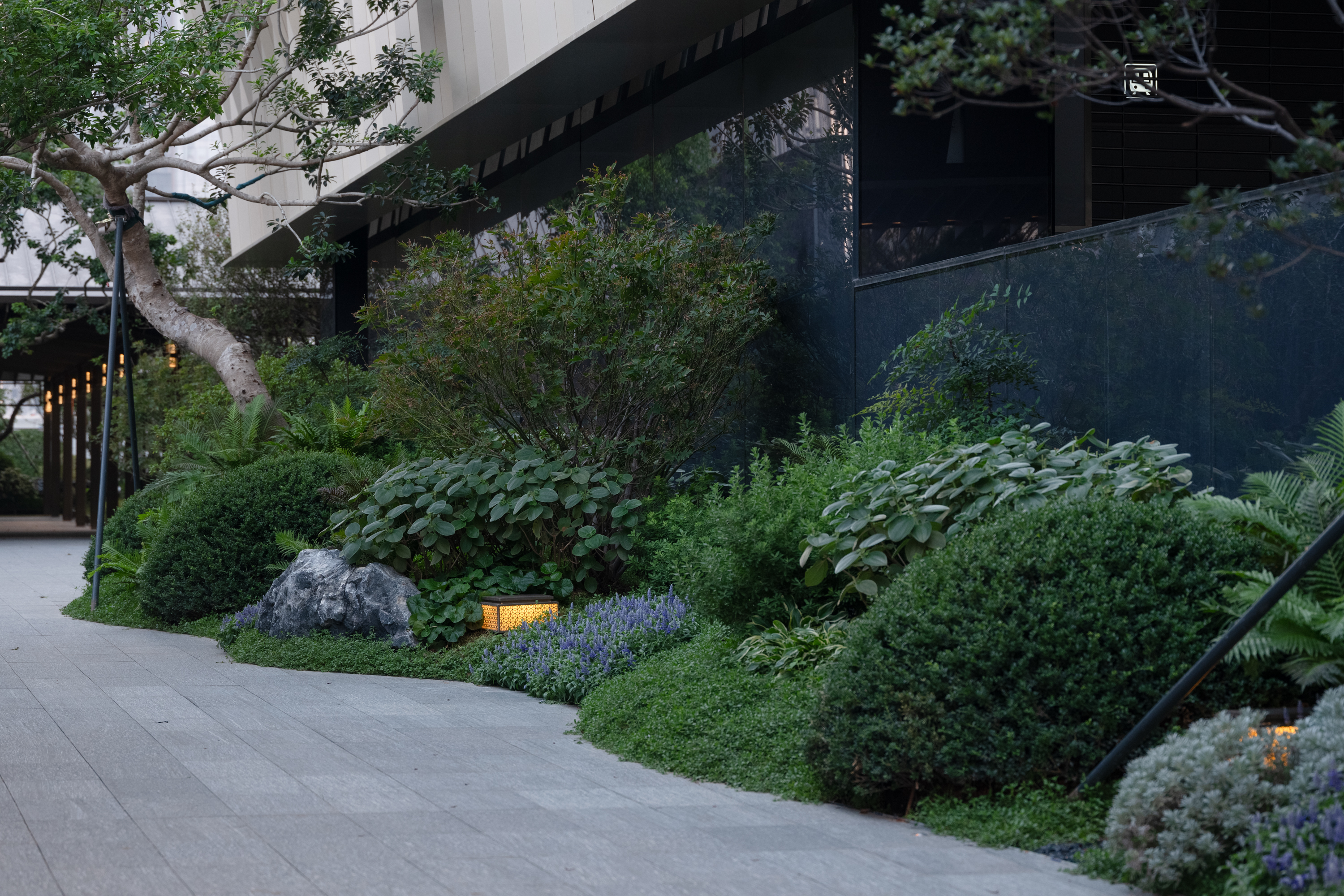 深铁粤港澳大湾区展厅位于深圳前海湾地铁枢纽,建筑为江南屋檐的现代幕墙演绎。景观也引用传统园林特点作为演绎,展现展厅外部场所。根据交通及游览动线点缀安排景点,去展场空间化,将文化展厅和公共交通做适当分隔,分别营造各自的功能场所,同时又以传统园林手法统一空间形象。院门形式的主入口,围堂格局的松石交通场所,入门见山的传统形式,解决人行车行交通。夹道回廊的展厅到达,酝酿进入展场游园体验。