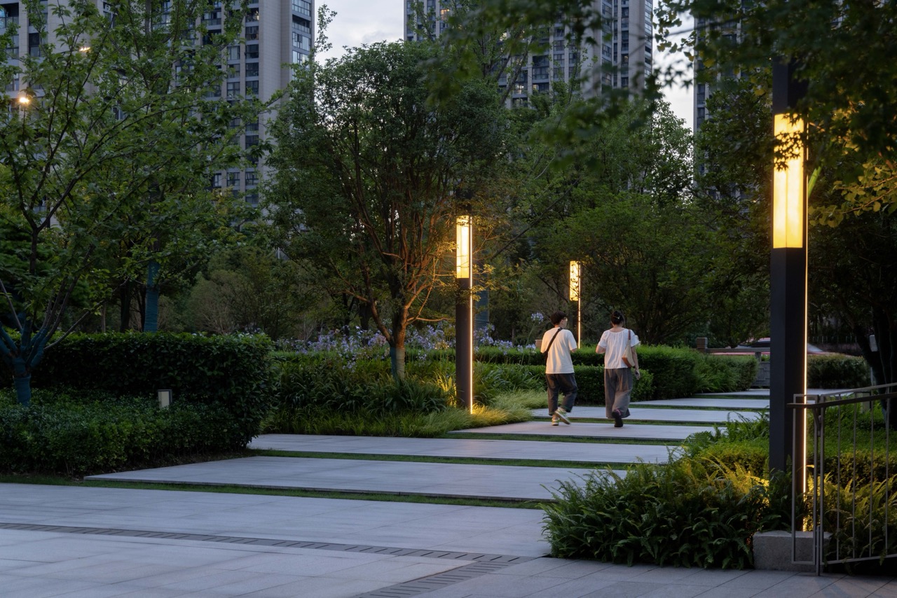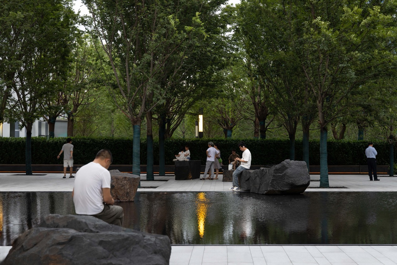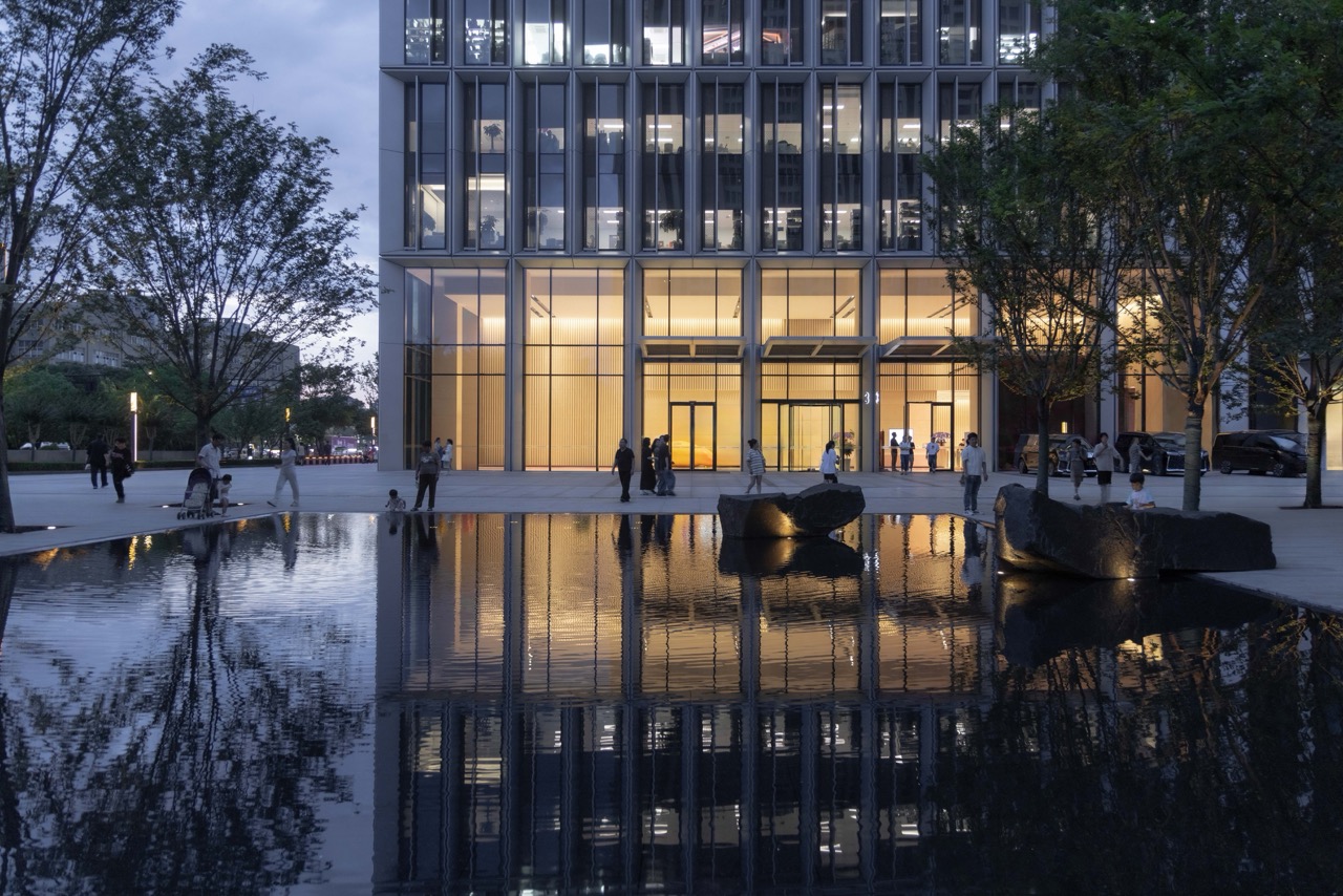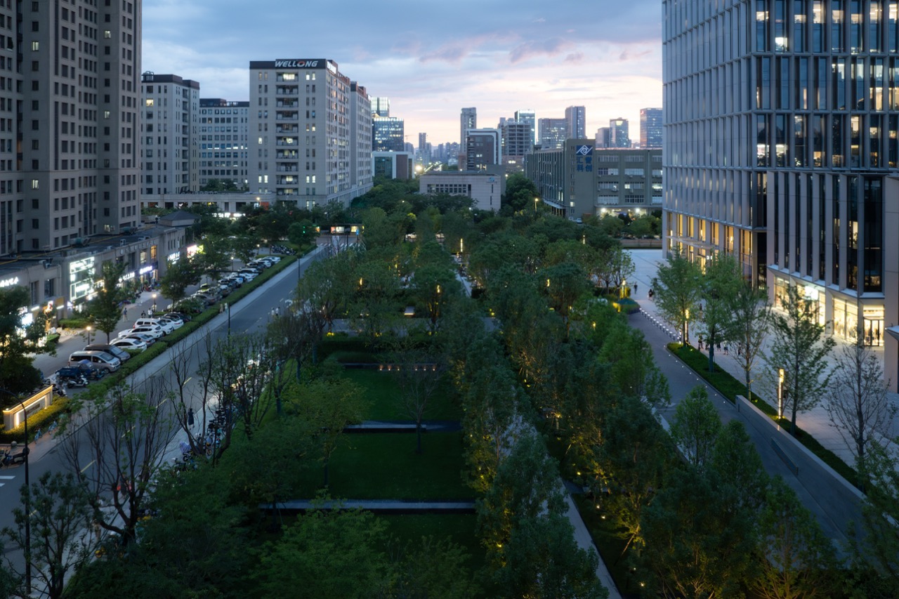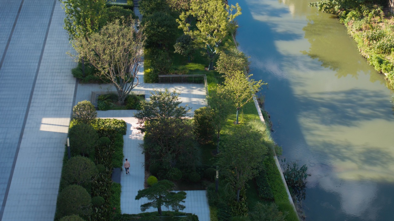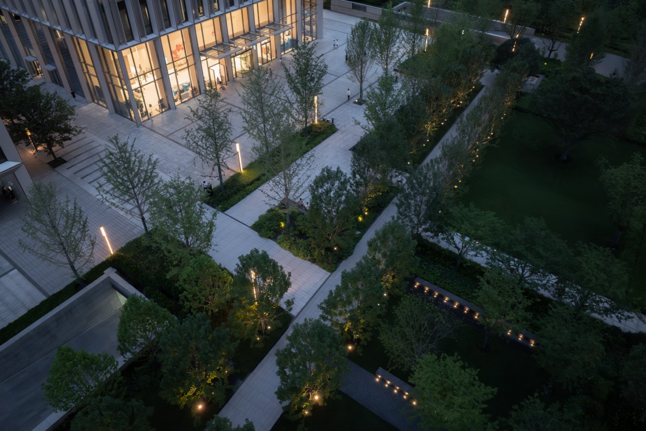 海威置业总部商务园 坐落于杭州江北区钱塘江南岸,完美融合了城市生态与现代商业环境。由著名建筑事务所GMP设计,该项目以极简主义的建筑风格为特色,建筑周围环绕着占地10,000平方米的开放景观空间,JTL Studio设计景观营造出郁郁葱葱的“城市森林”氛围。园区注重人与自然的共生,为员工与访客提供了一个实用、可持续且视觉丰富的绿色庇护所。
