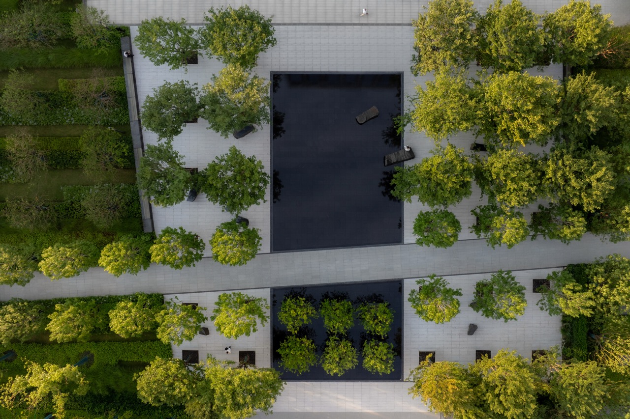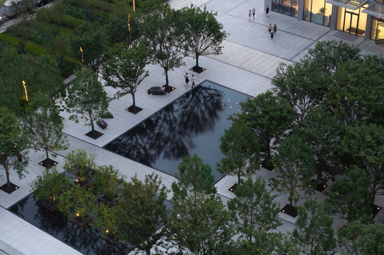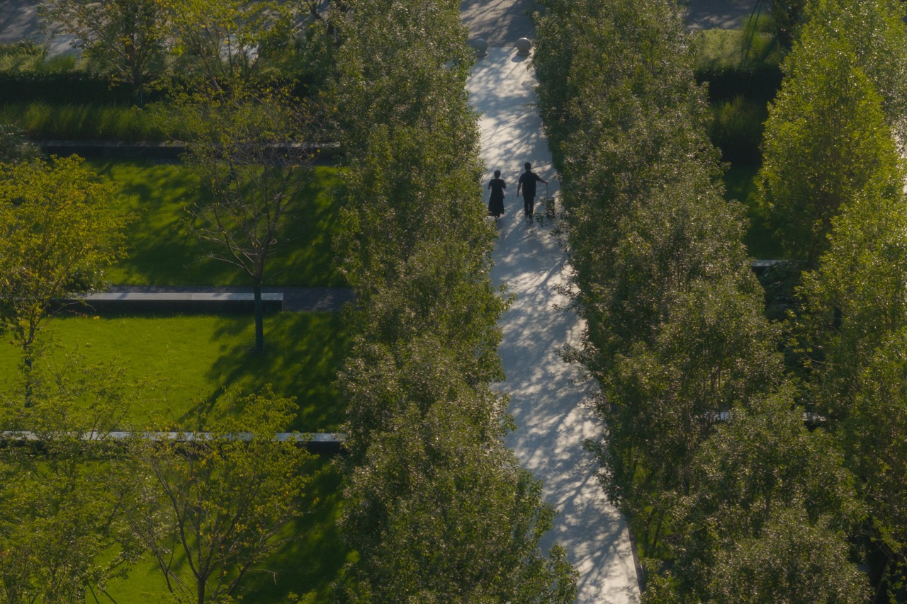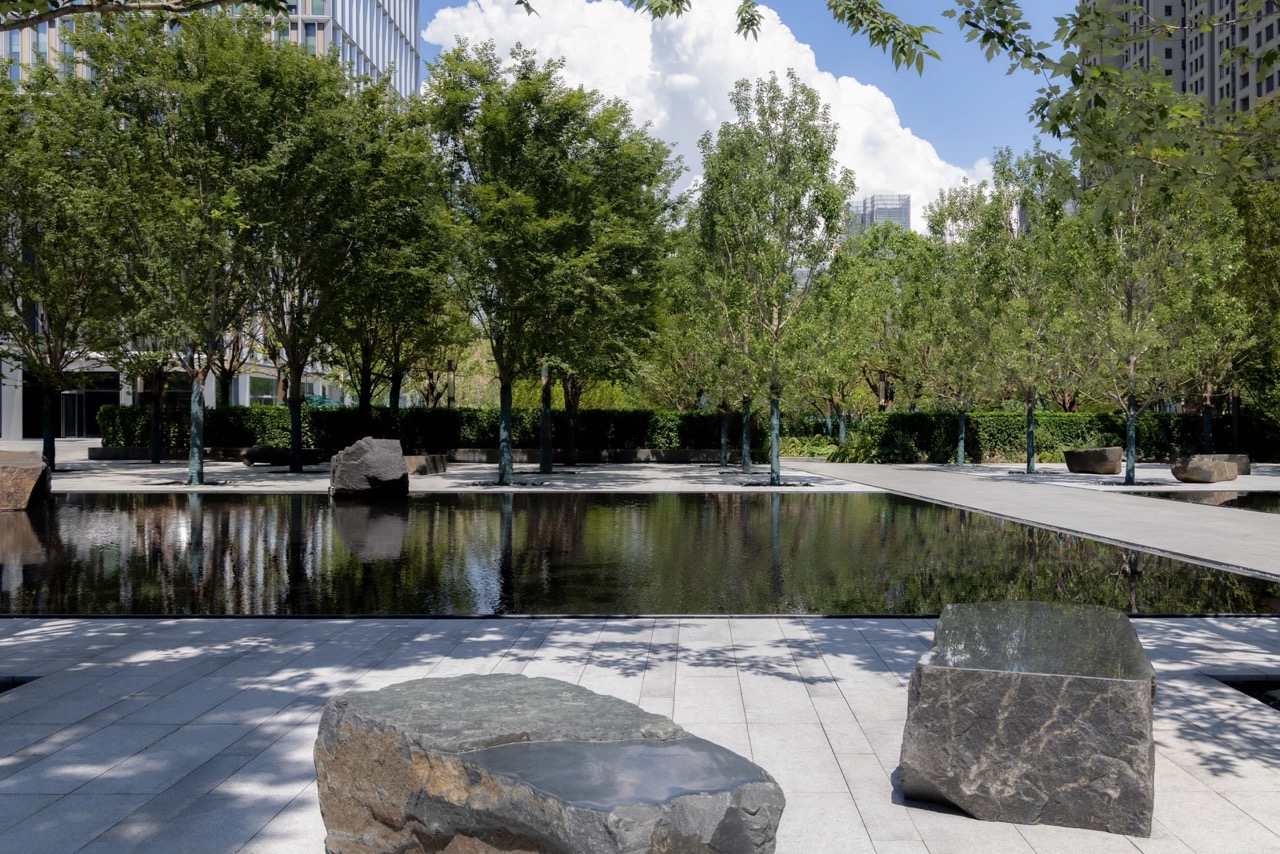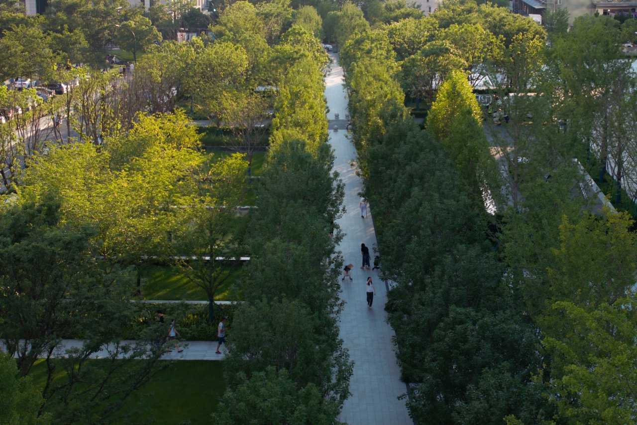 海威置业总部商务园 坐落于杭州江北区钱塘江南岸,完美融合了城市生态与现代商业环境。由著名建筑事务所GMP设计,该项目以极简主义的建筑风格为特色,建筑周围环绕着占地10,000平方米的开放景观空间,JTL Studio设计景观营造出郁郁葱葱的“城市森林”氛围。园区注重人与自然的共生,为员工与访客提供了一个实用、可持续且视觉丰富的绿色庇护所。