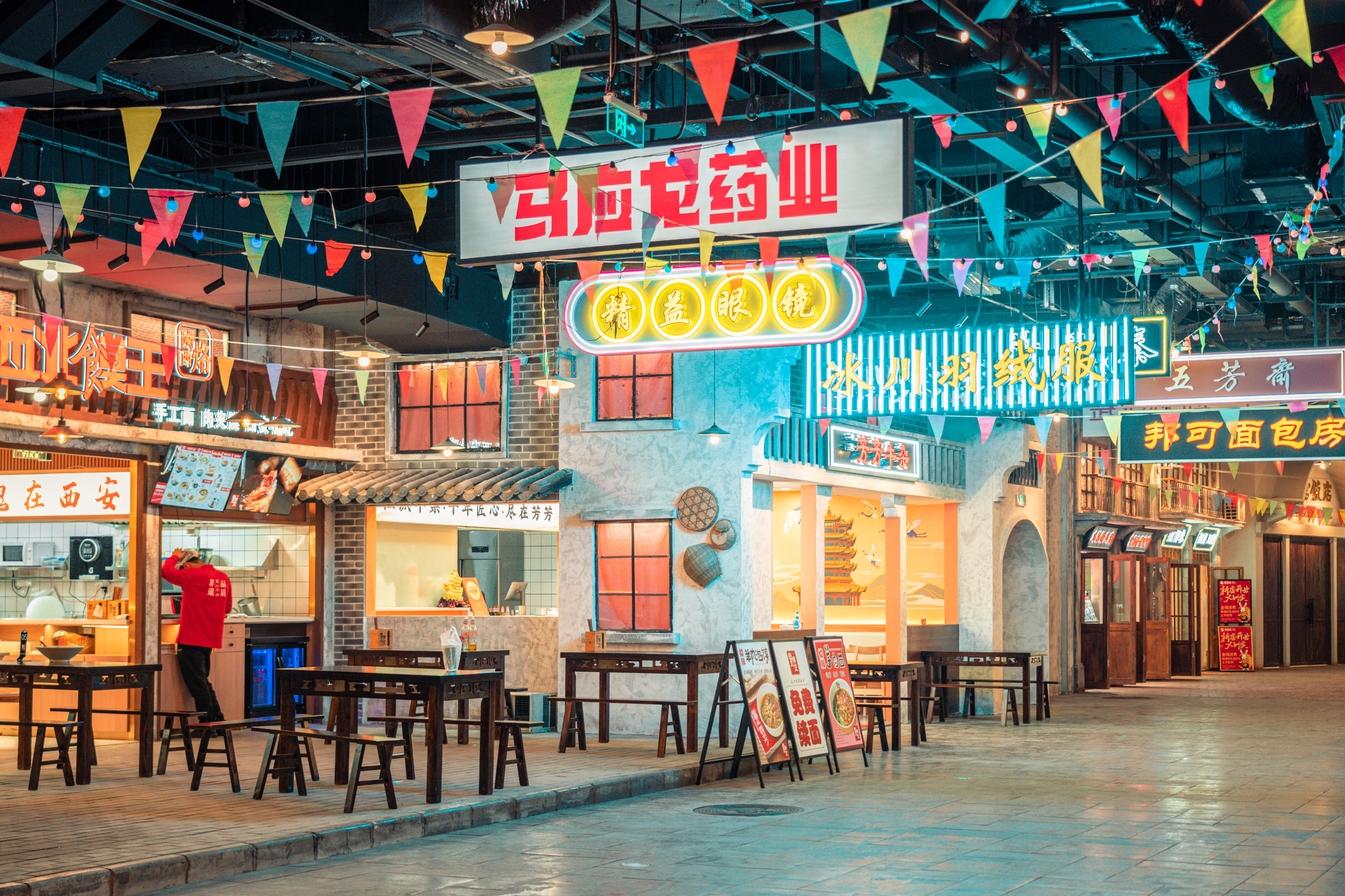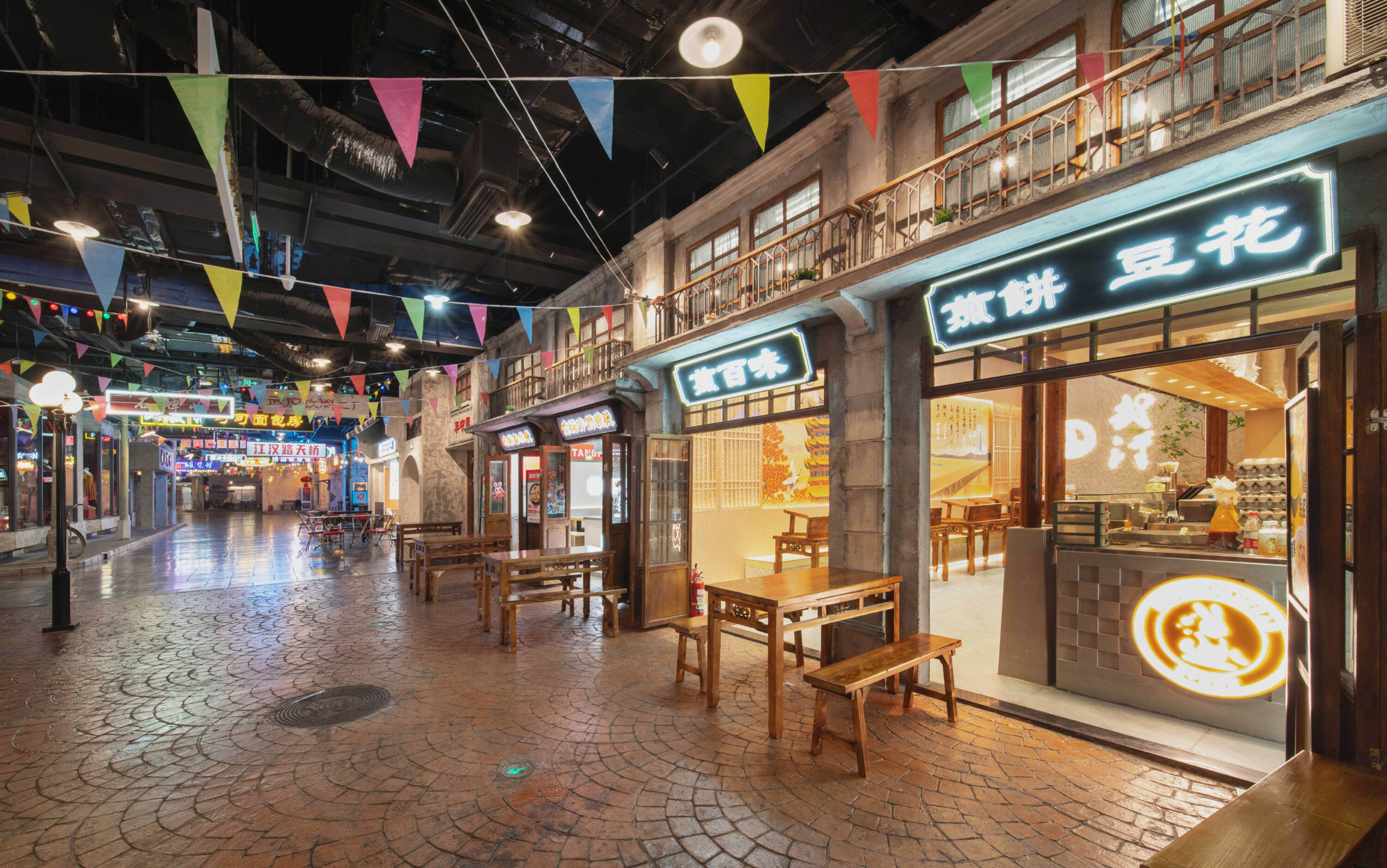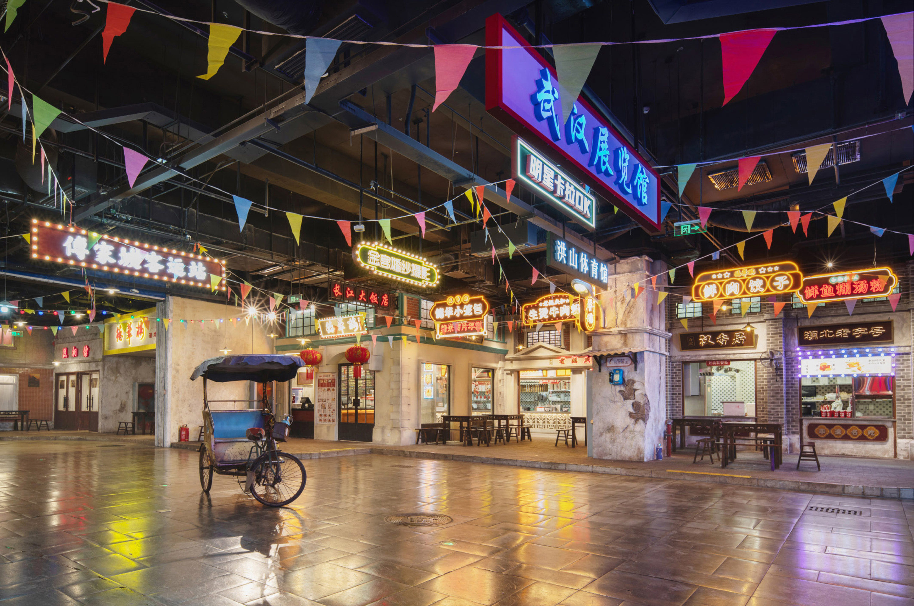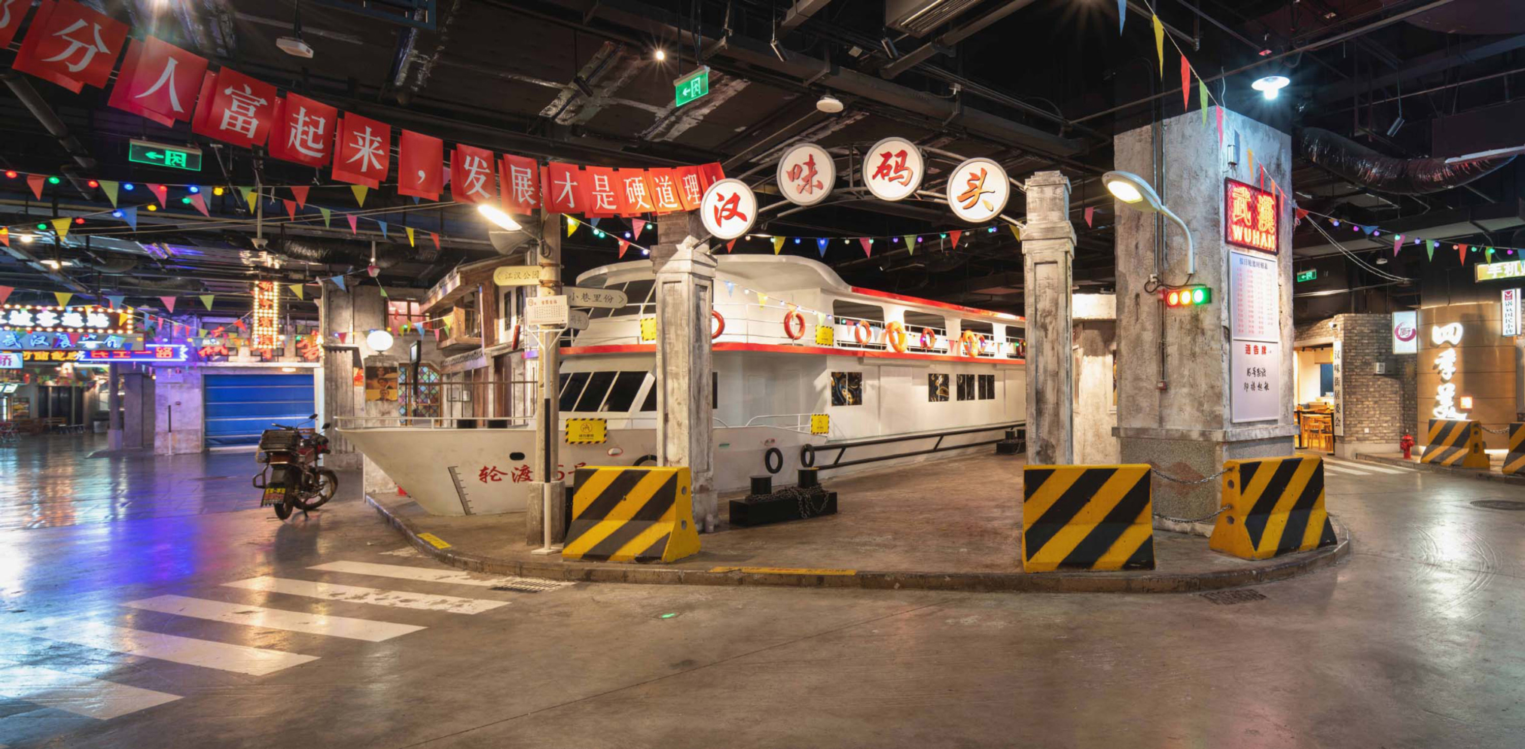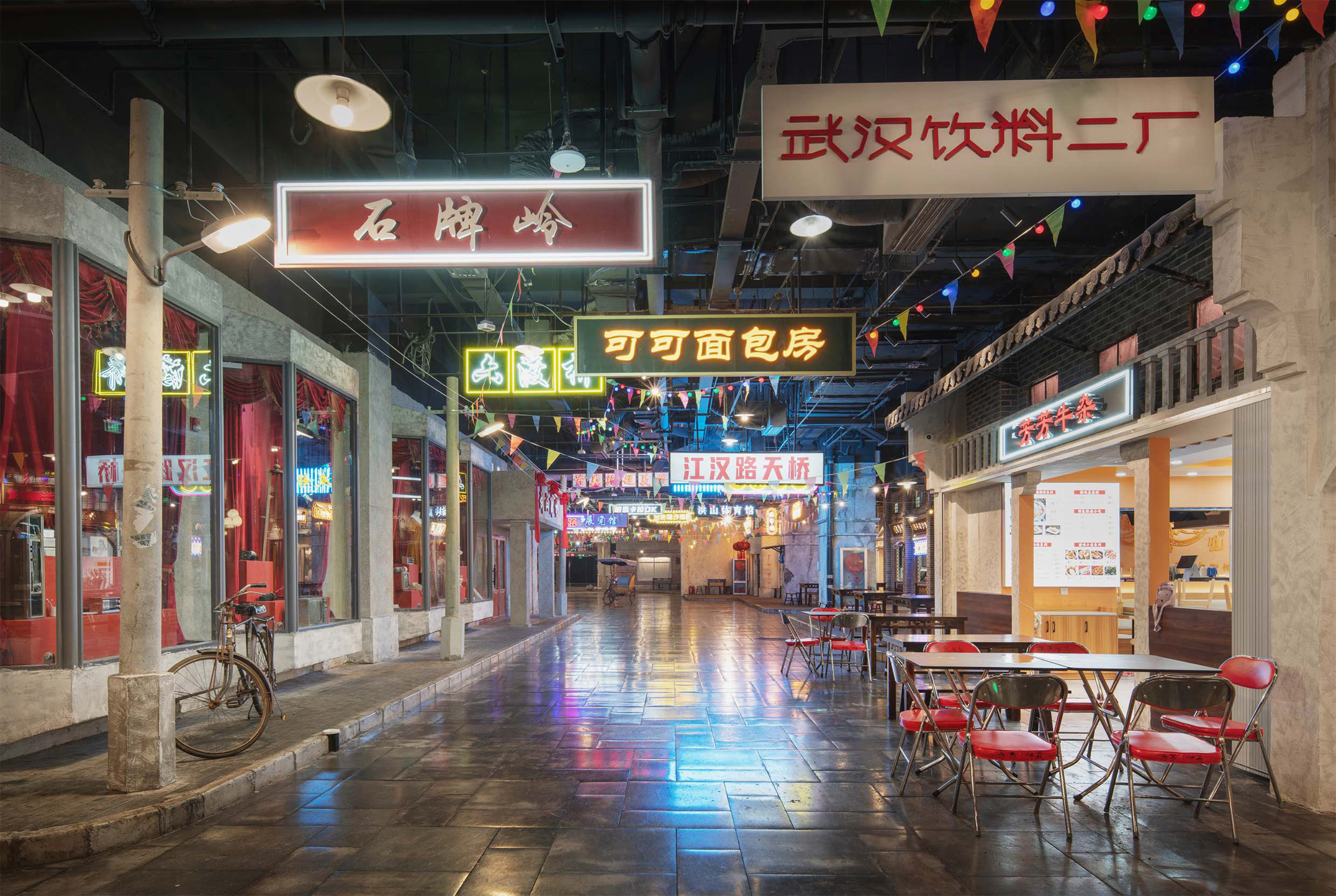 本案业主为武汉市老牌商业集团,业主希望在位于亚洲最大的单体商业项目中打造一条富有“老武汉”特色的美食街区。经过18个月的设计和跟踪,我们在3300平米的负一层打造了一个八九十年代的老武汉,将武汉当地独特的三镇、码头、商业、市井的文化融入复古街区的设计当中,让游客走街串巷,逛吃其中。打造“外地人共情、武汉人共鸣”与众不同的消费体验空间。