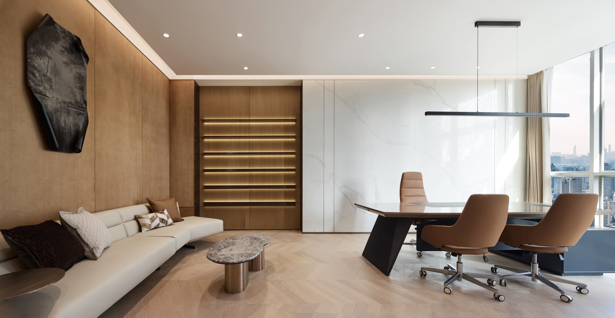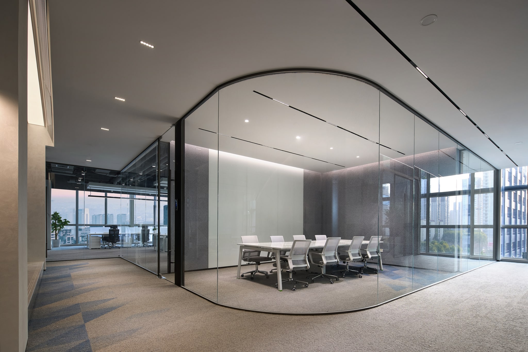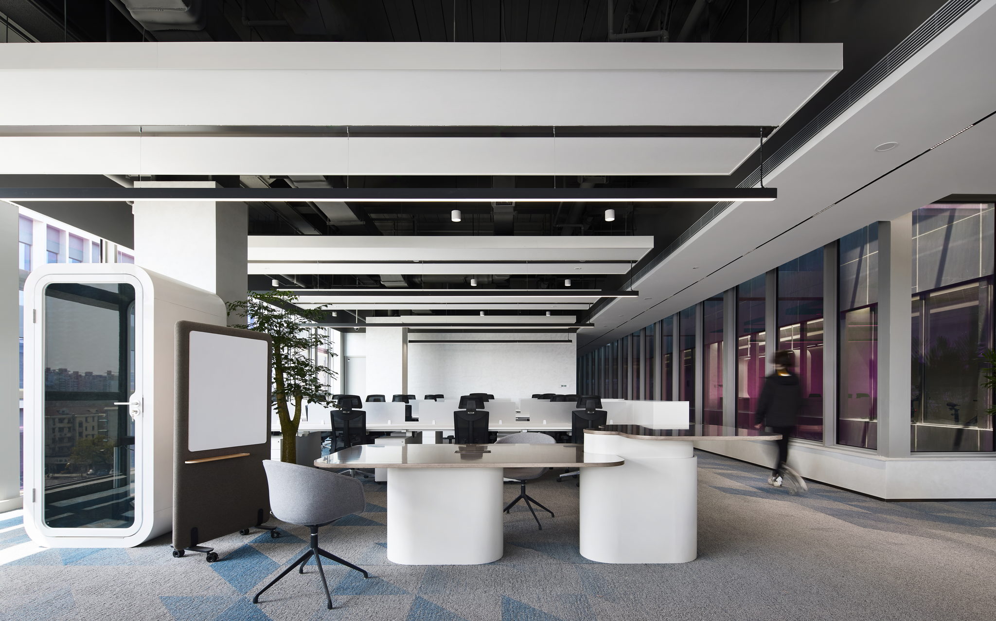 安博通华东区总部办公空间项目,秉承高效、有序、可持续的核心理念,通过创新设计深度融合了企业文化与前沿科技。该项目不仅利用AI人脸识别、智能照明等先进技术提升了办公效率与员工体验,还巧妙融入了模块化设计与自然景观,既满足了未来扩展需求,又彰显了人文关怀与环保理念。此项目不仅是技术与艺术的高度融合,更是企业文化与品牌形象的璀璨展现,引领了智能楼宇设计的新风尚。