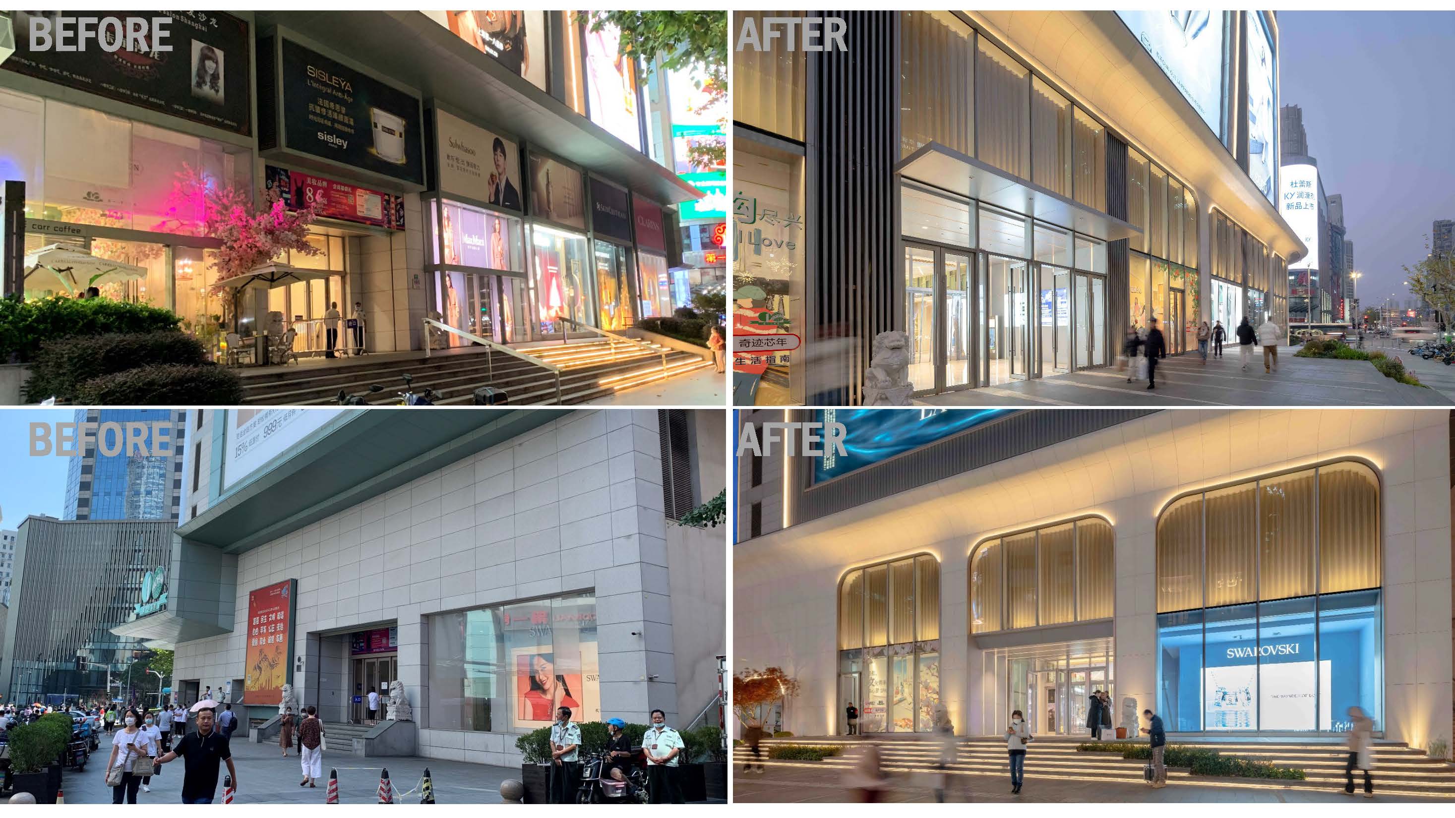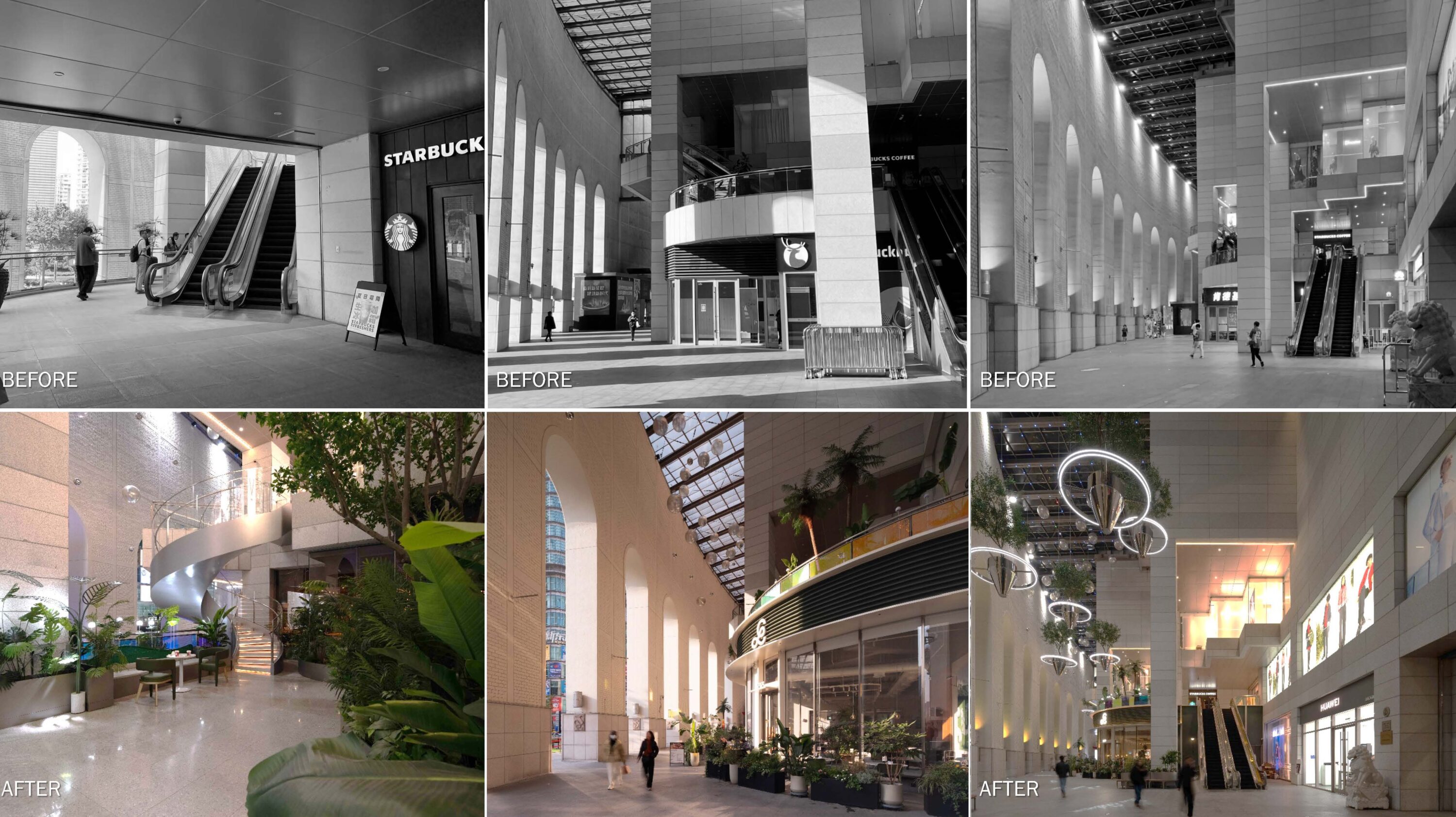 项目如何在留住城市记忆和传承历史文脉的基础上,根据新的业态定位和城市设施改变,通过建筑设计实现项目价值是本次设计所面临的主要挑战。基于此,我们秉持 “经典回归,场景更新” 理念,以 “前门焕新,花园重塑”“展面升级,定义重奢”“整体蔓延,无界生长” 三大策略,将第一八佰伴打造成融合绿植、生态与艺术的多元生活体验空间,实现从传统商业建筑到城市活力枢纽的转变。