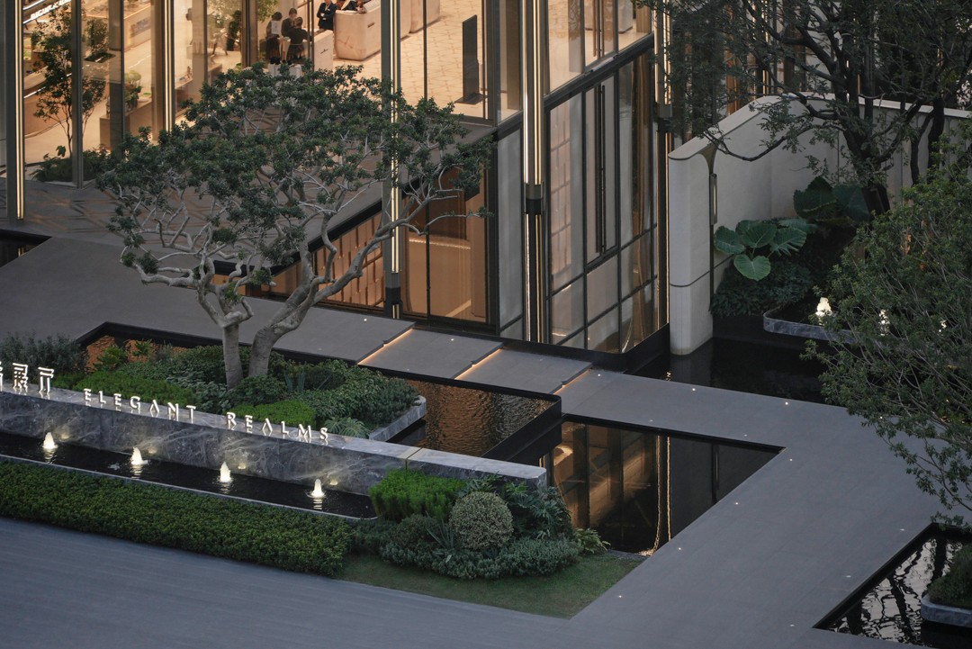 The core design concept of this project is to create a future living experience pavilion with multiple experiences through the progressive creation of spatial sequences. The welcoming entrance is set off by the champagne gold high dome of the building. The metal with rounded corners and the agate beige scenery wall collide and reflect each other, highlighting the meticulous craftsmanship. Walking along the water, the water reflects the dome, and the characteristic paving echoes the dome elements. The tree pools and flower beds are scattered in a patchwork, and the blue-gray plants create an elegant plant atmosphere. The axis water feature and the array of Chinese tallow trees float above the water, reflected on the translucent marble and elegant beige scenery wall. Strolling here, one’s steps are light, enjoying the beauty of life