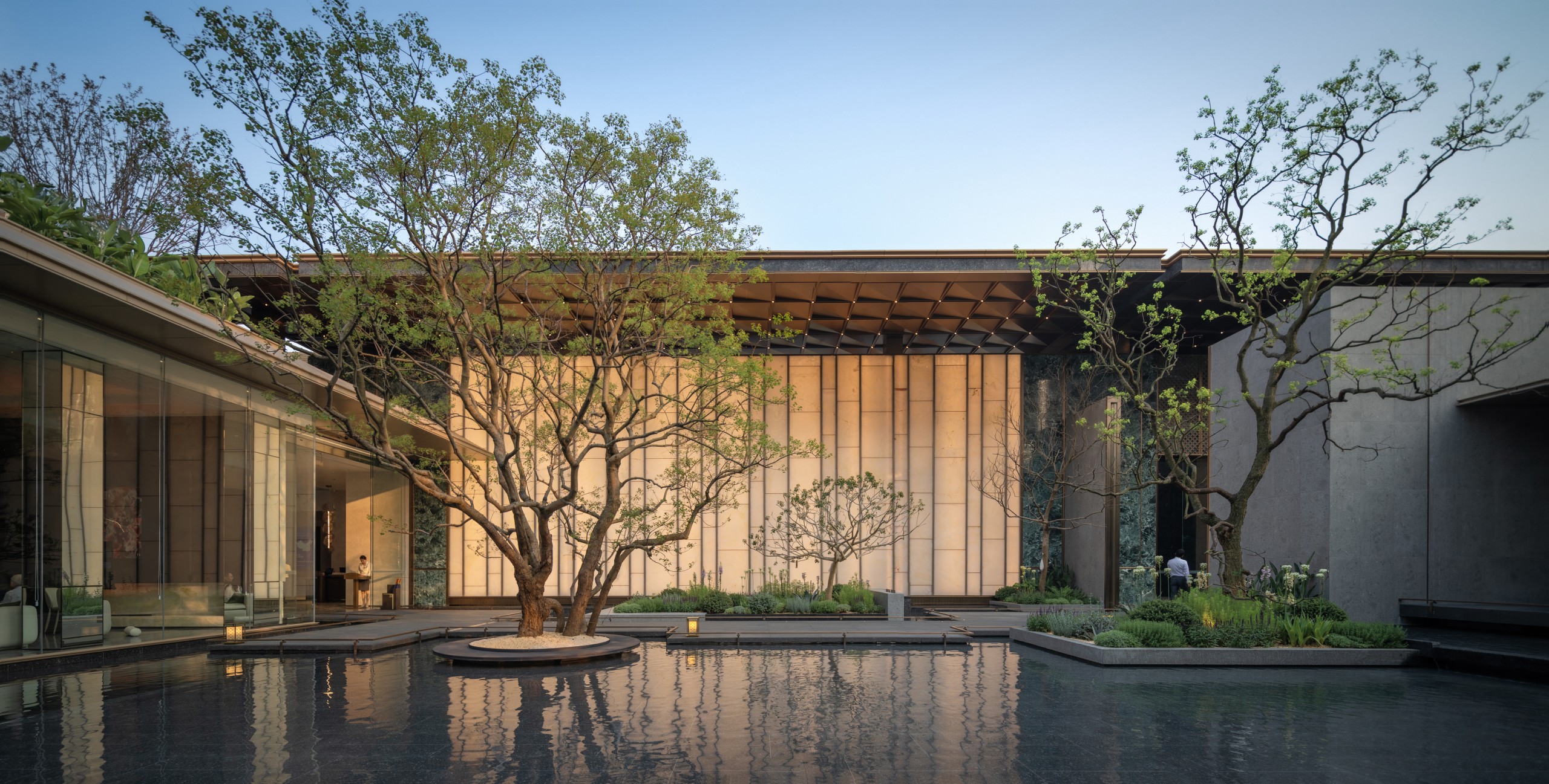 成都绿城锦海棠项目位于历史文化名城成都,旨在为新生代人群打造一个融入锦地生活美学的未来社区。设计灵感源自成都深厚的文化底蕴,蜀锦作为成都的传统文化瑰宝,以其精美的编织工艺和丰富的文化内涵闻名于世;海棠花则象征着美好与浪漫,是成都的市花之一。项目以“编织蜀居,麓见海棠”为主题,将蜀锦的编织肌理与海棠花的文化寓意融入现代景观设计中,通过空间与情感的交织,营造出具有东方意境的现代居住社区。