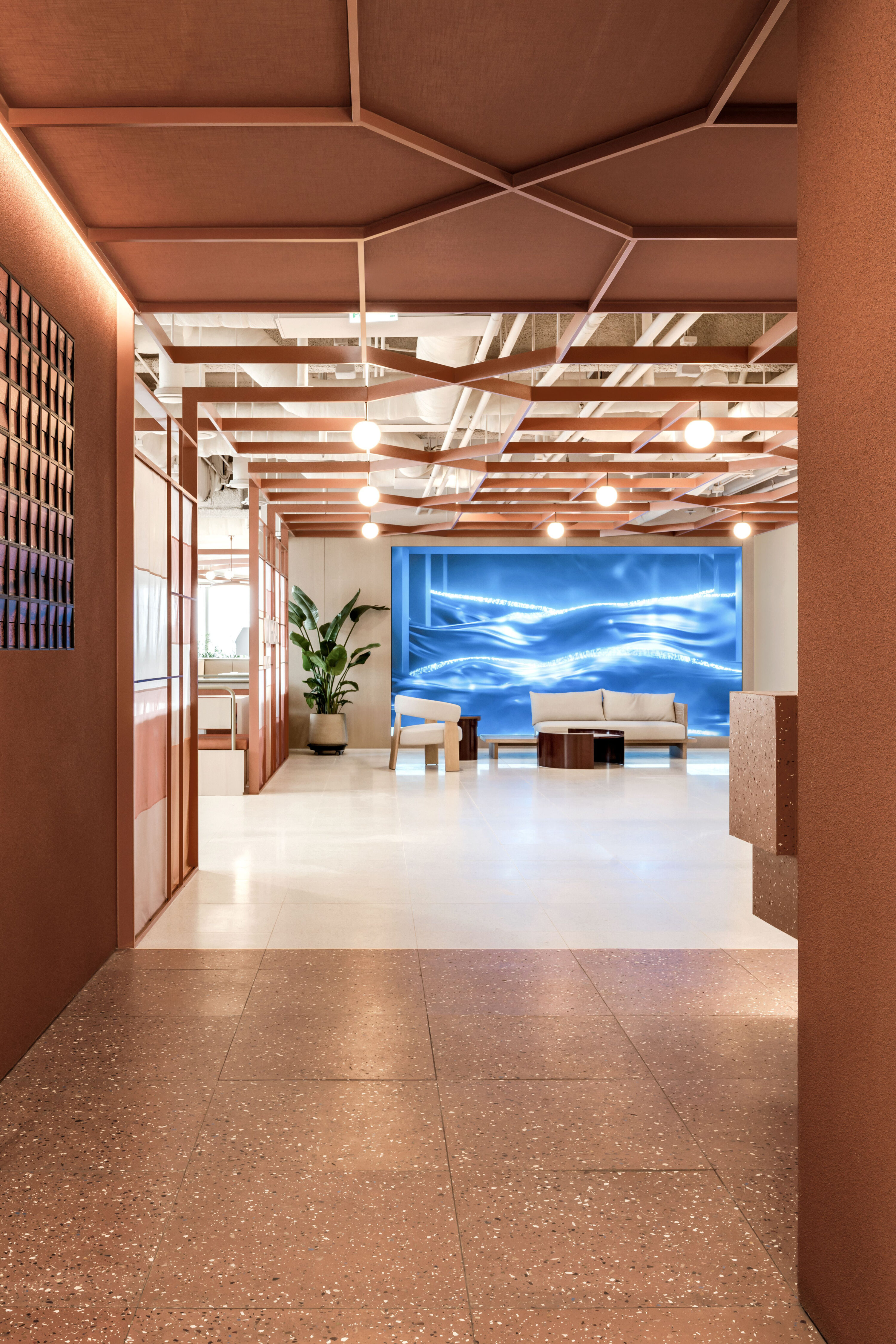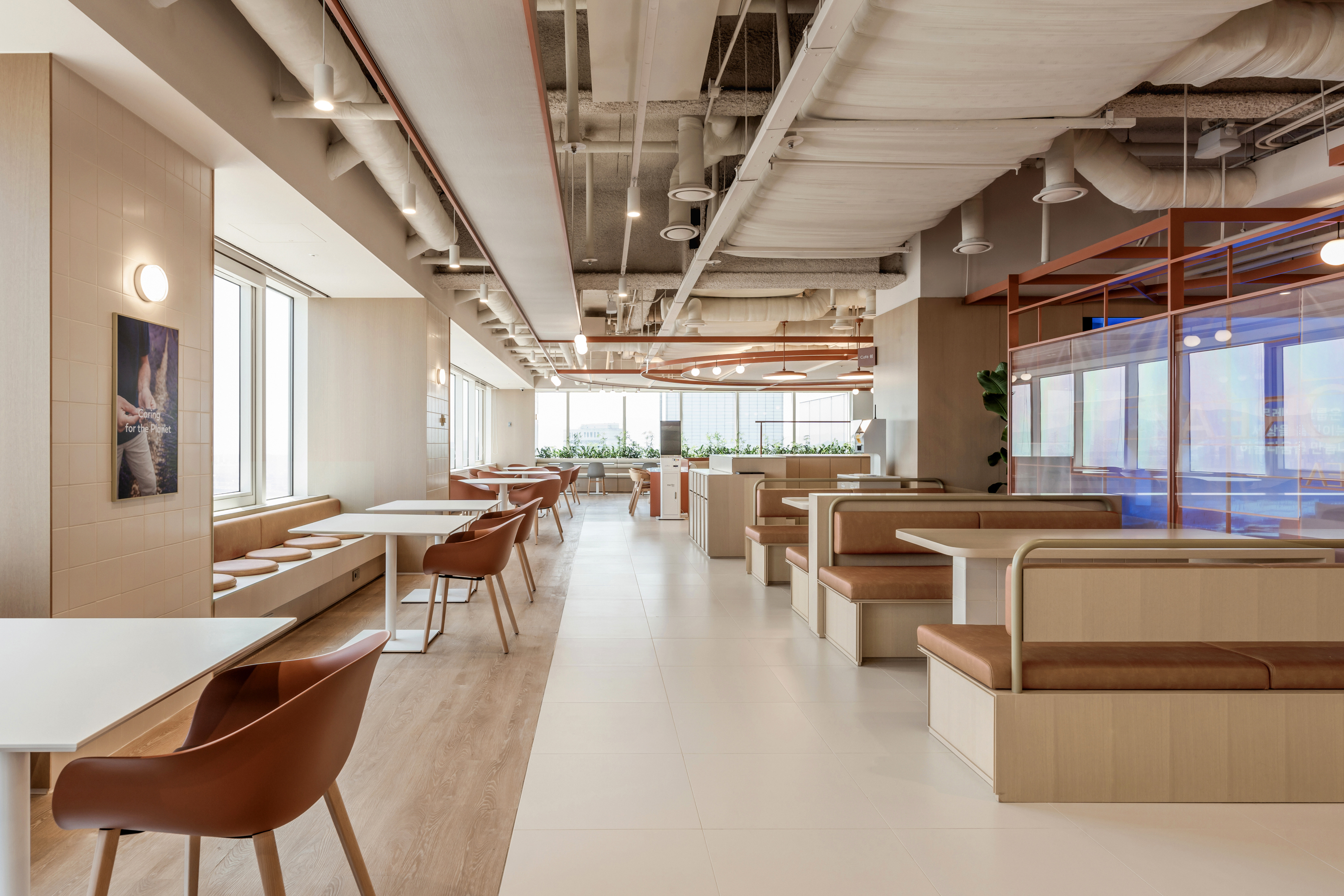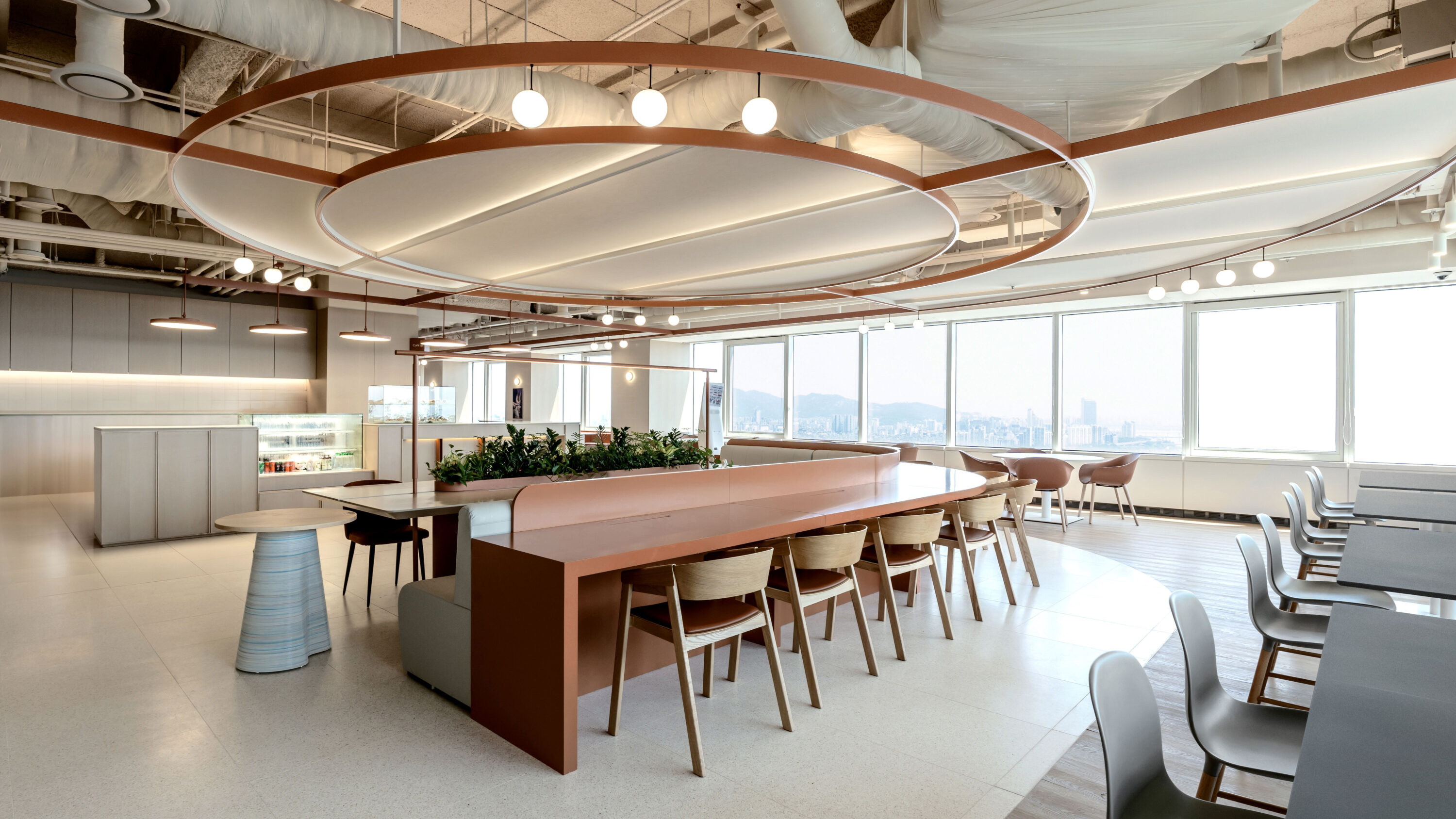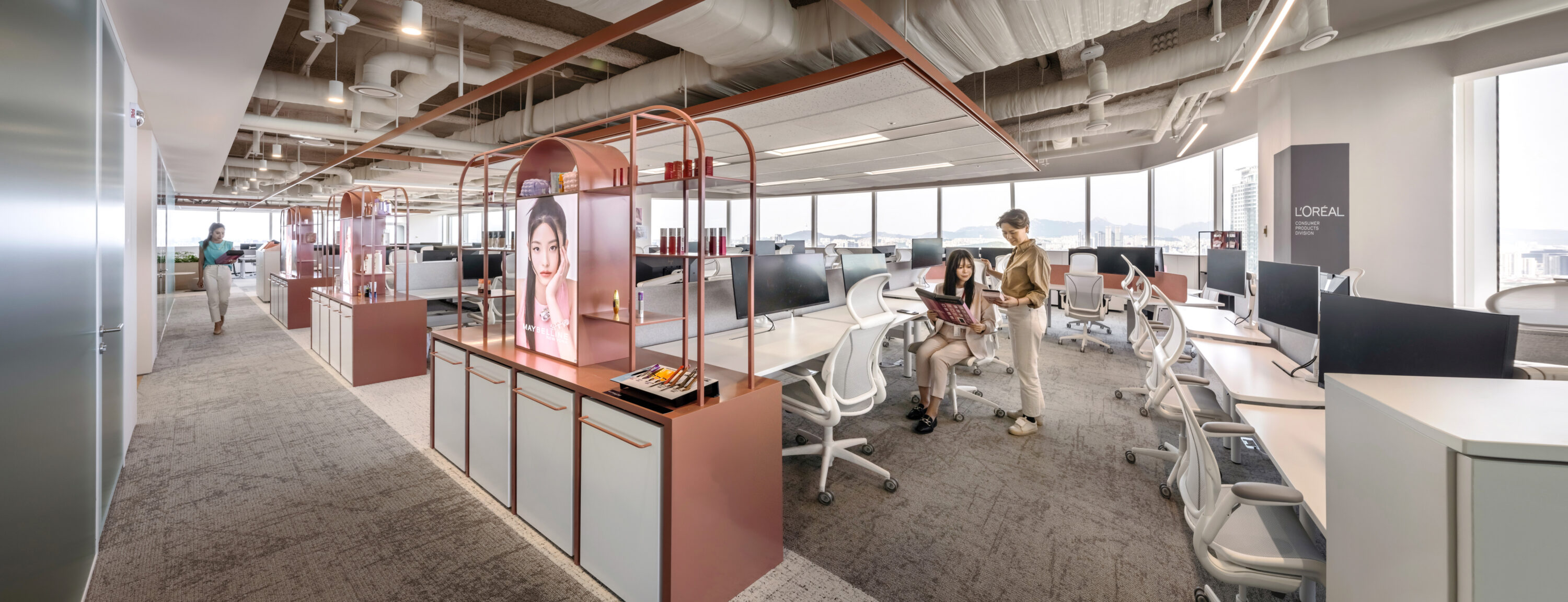 欧莱雅韩国首尔总部办公空间以“共生”为核心理念,融合品牌美学、首尔城市特色与协作文化,打造兼具灵活性与归属感的混合办公环境。设计灵感源自首尔的城市脉络,以艺术性的线性与曲线构建空间动线,呼应城市交错与秩序之美。本土文化元素如韩屋窗棂与传统布艺 Jo Kak Bo 的融入,则增添空间的人文温度。项目致力于通过开放而多元的设计,提升员工福祉与创造力,并积极回应欧莱雅在ESG可持续发展上的承诺。