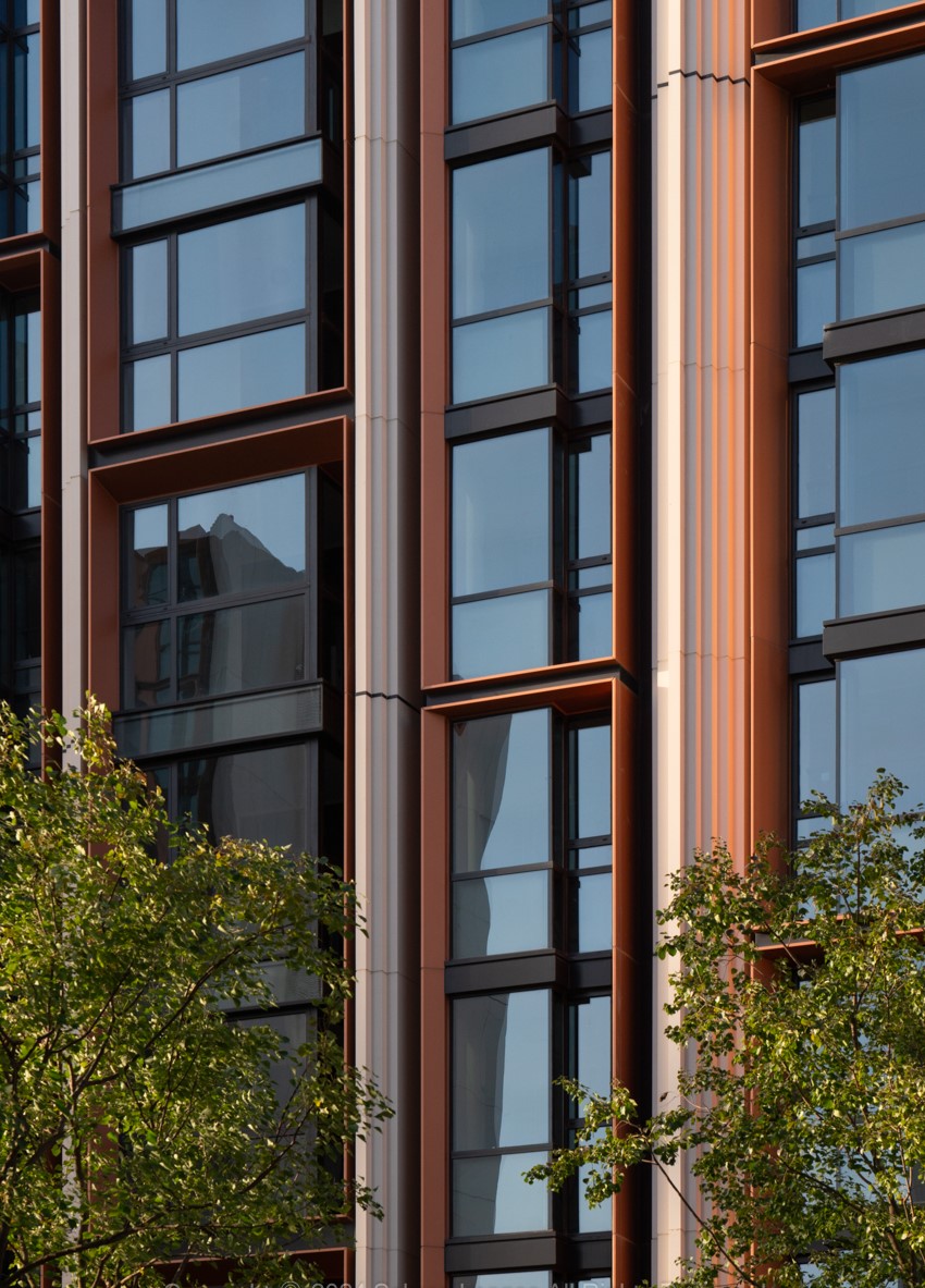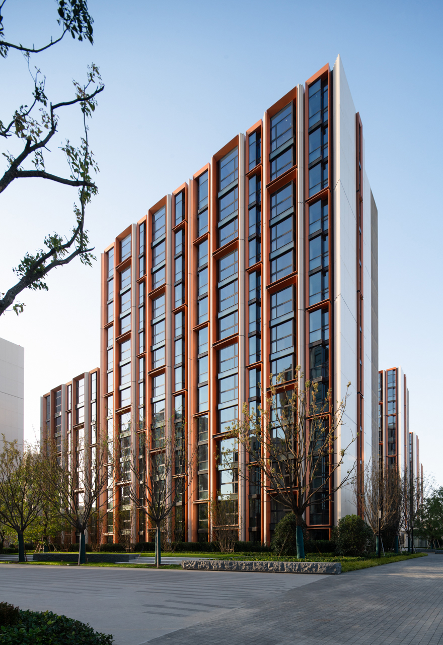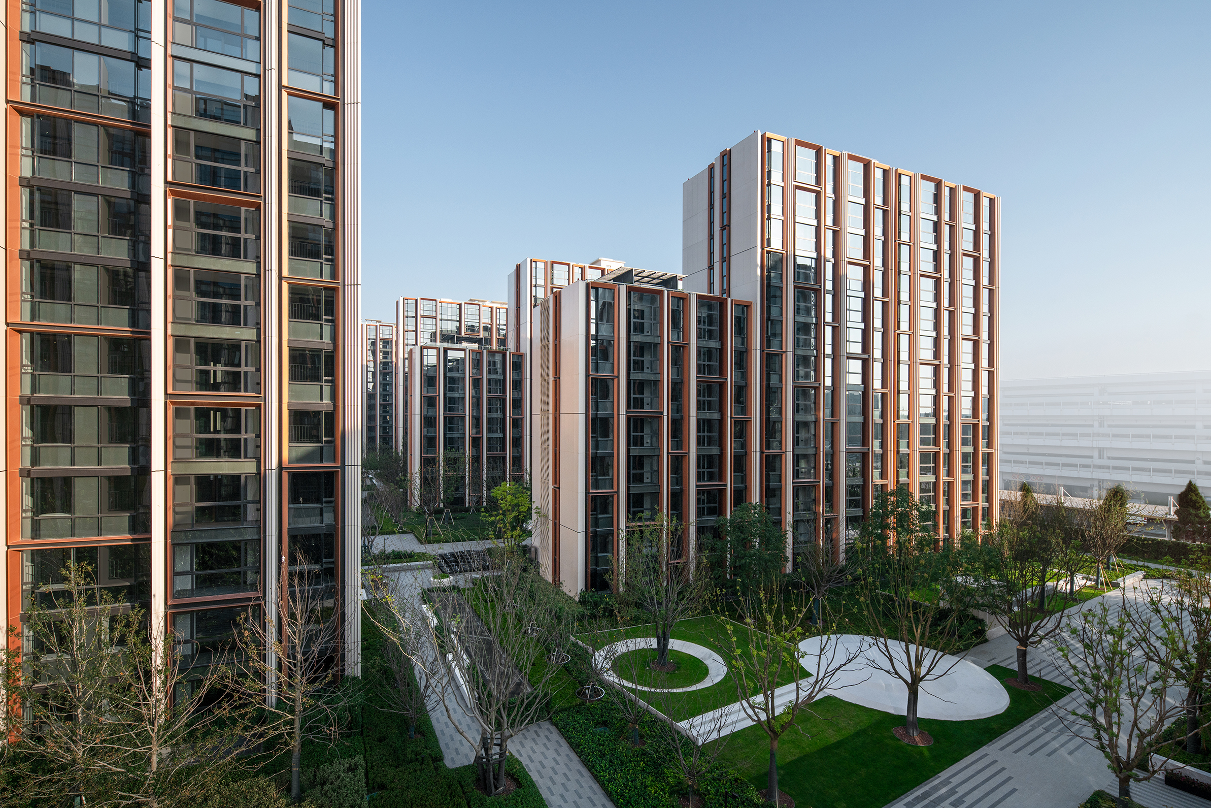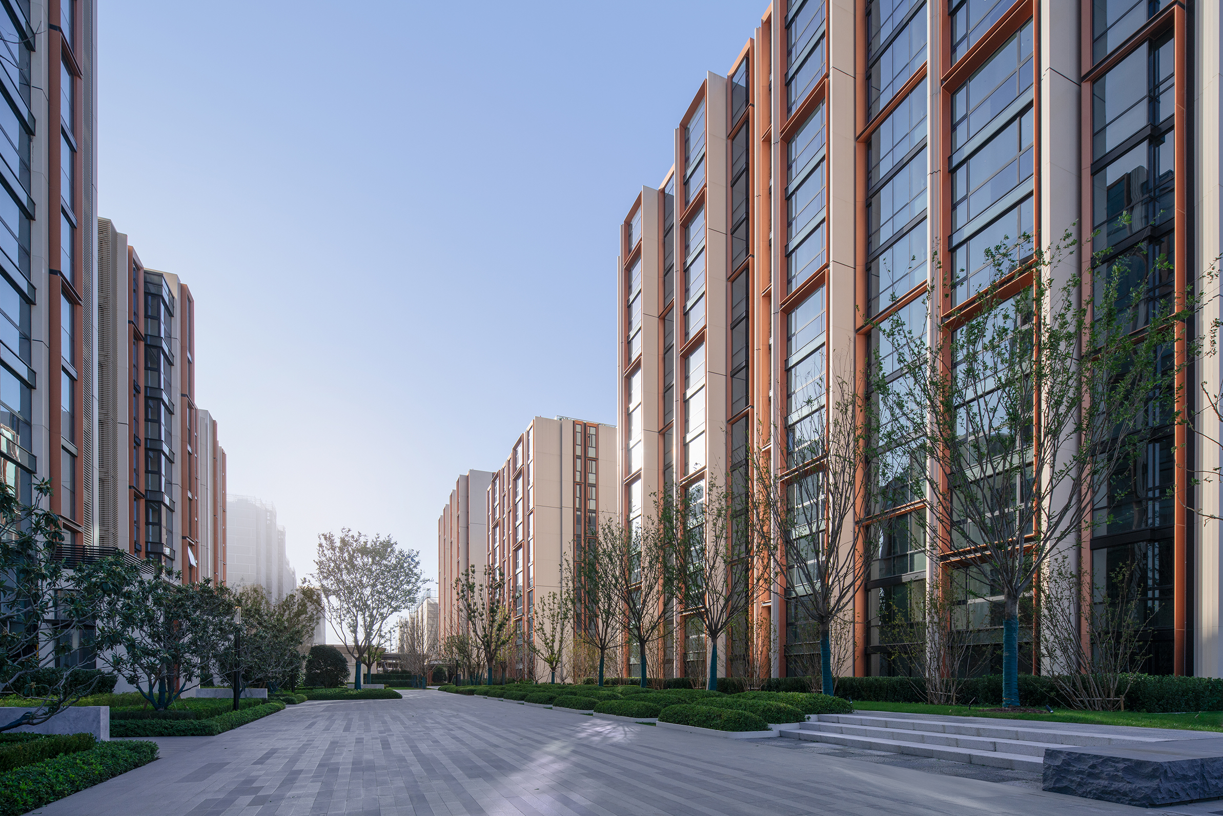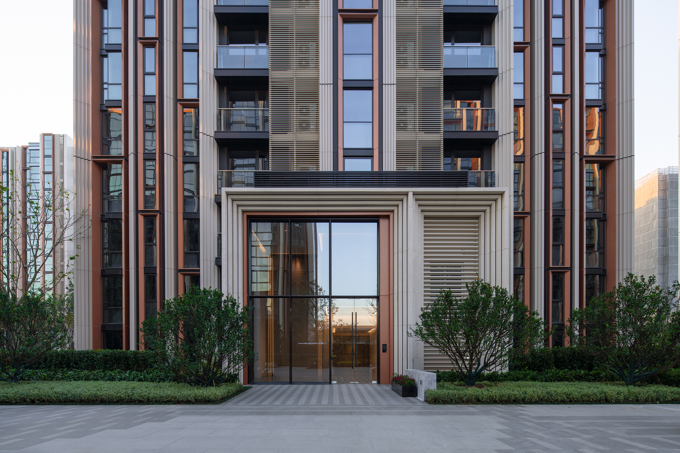 天安1号项目业态涵盖高端住宅、街区商业、养老院、养老公寓、幼儿园、运动中心、社区菜场等为一体的大型综合社区。项目以城市街道和住区绿轴作为媒介串联起各个组团,清晰的规划路径与均匀布置的核心开放空间有机结合,点式塔楼则围绕核心空间积聚布置,从而形成开放与半开放空间的相互对话,建筑与景观相辅相成的极具前瞻性的规划设计。建筑立面以简洁竖向线条为主,细节精致,体现上海海派文化,展现当代中国建筑水平与地域特色。