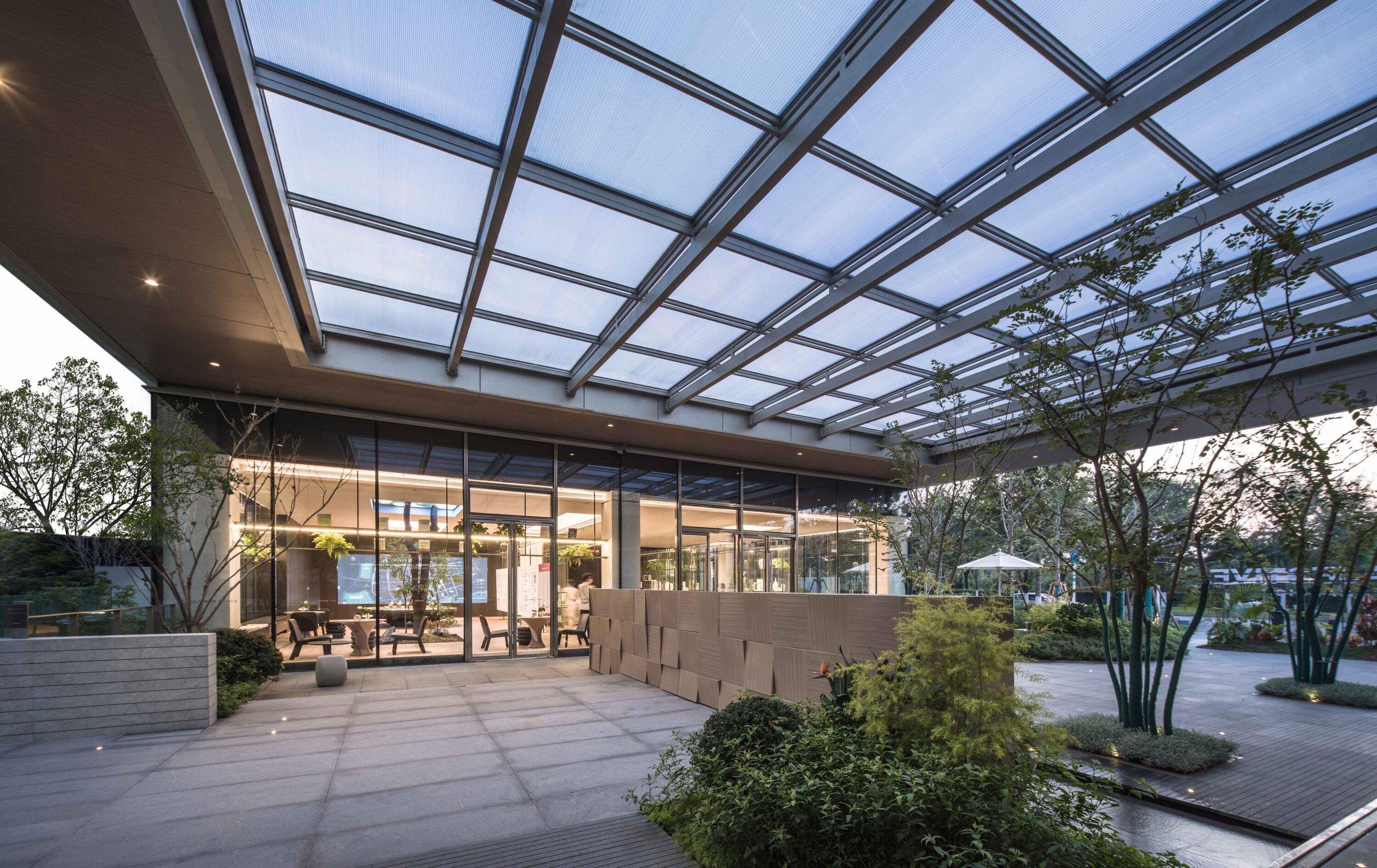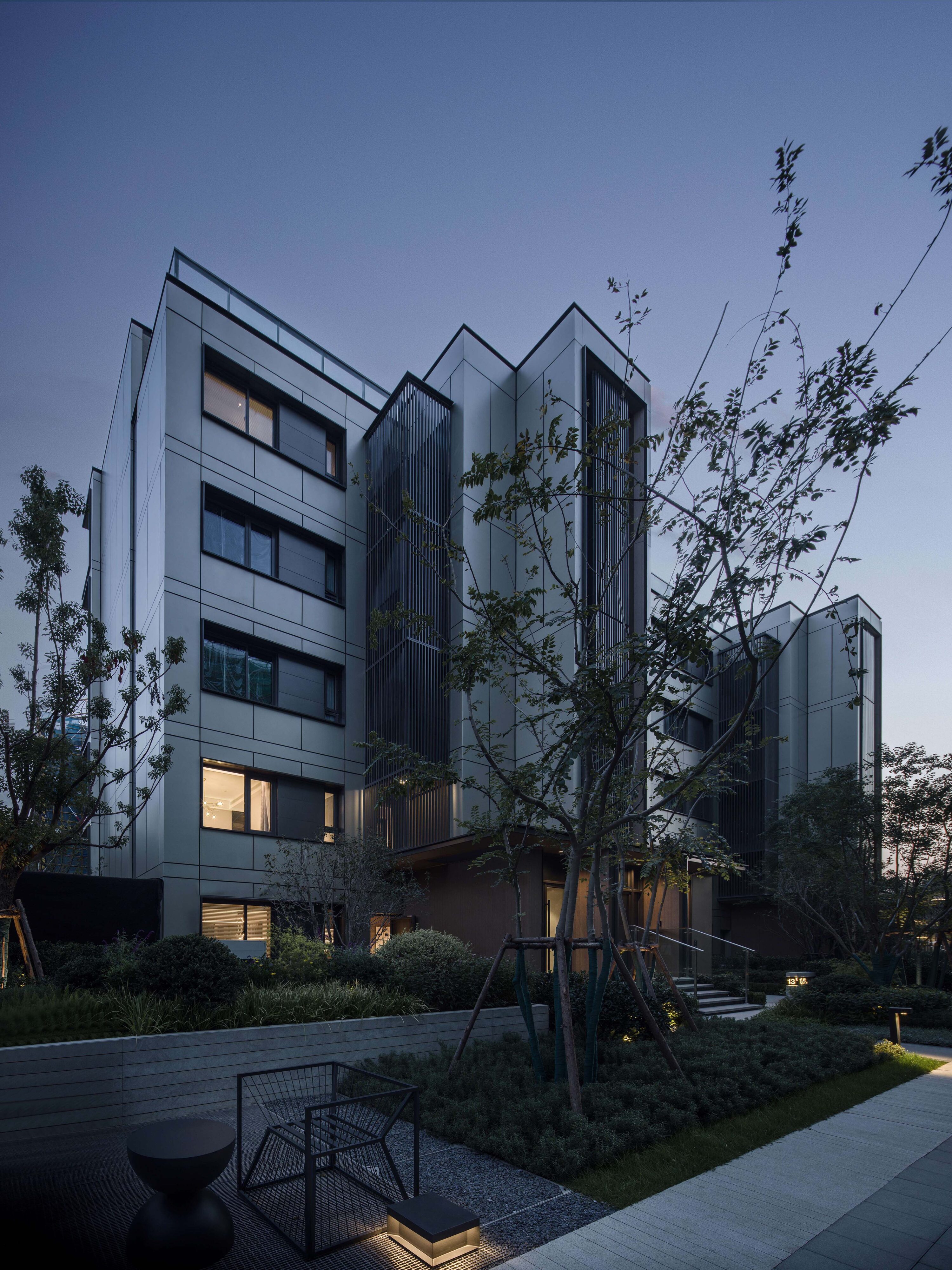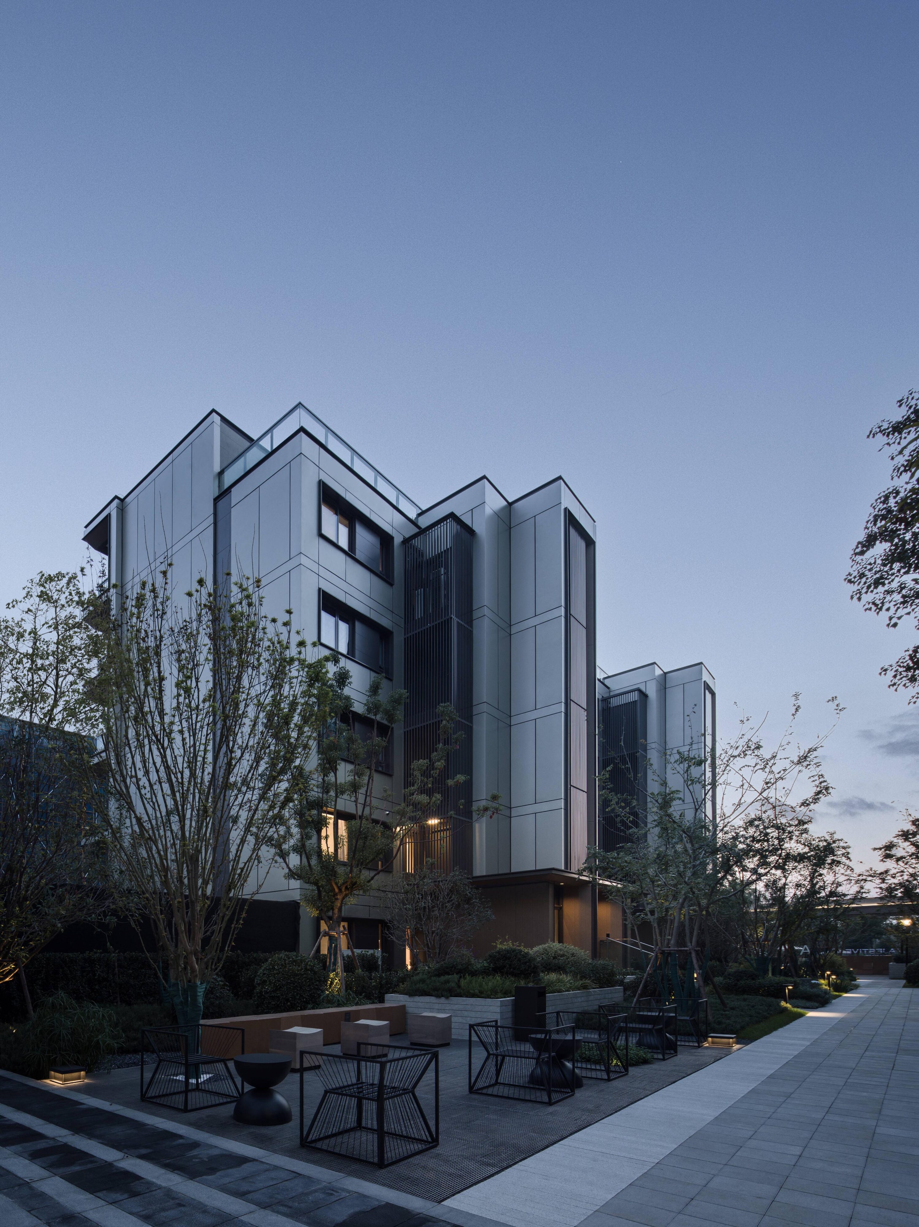 项目位于无锡市经济开发区,场地水系环抱。整体规划及景观营造中结合场地现有的水居环境,打造长40m的“居溪廊”、建筑面积100㎡的流水茶亭及200m长的“原溪”生活花园。 且在临溪长廊形成溪畔的儿童活动乐园、禅意花园、临溪客厅等节点,整体打造具备疗愈力、清幽雅致的生活场域。建筑以线条构建精致大气现代简约的风格,建筑外立面以浅香槟色铝板为主,结合木色铝板材料,形成具有亲和力的水乡精神的居住氛围。