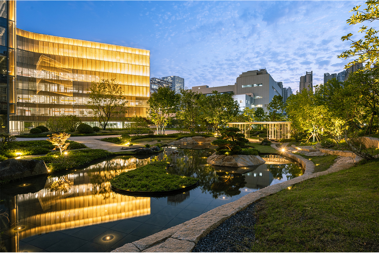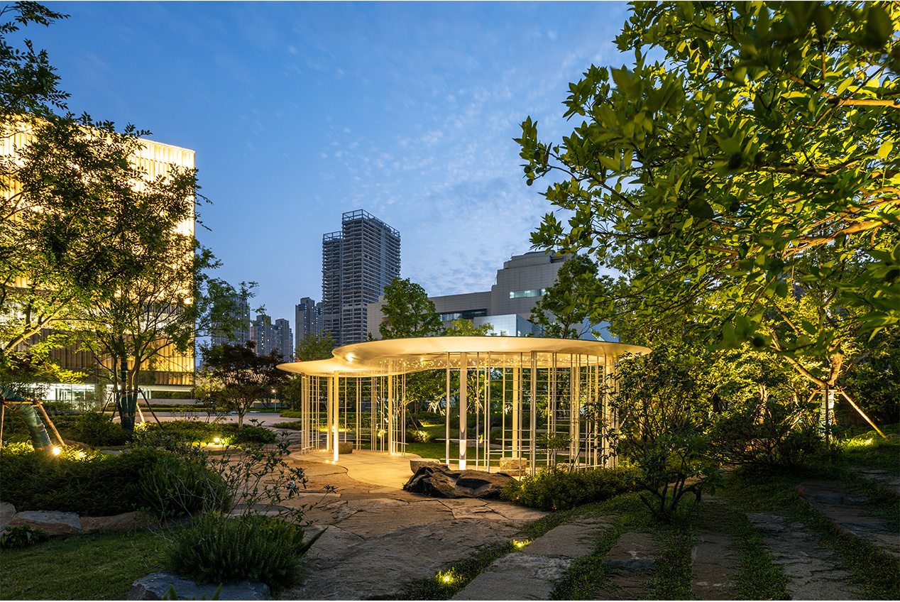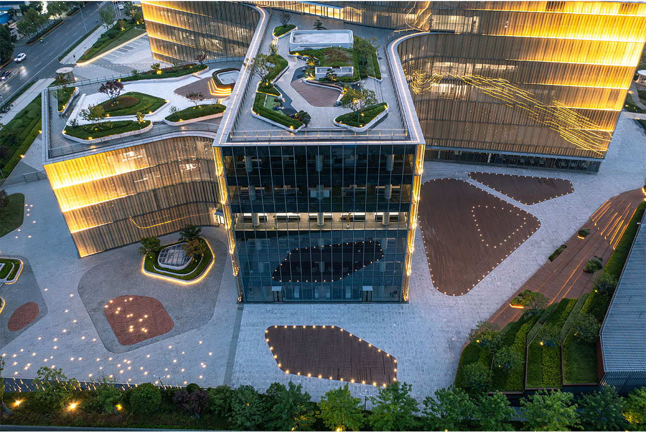 长飞光纤科技总部位于武汉光谷,Gensler的设计团队与业主基于“智慧联接,美好生活”的愿景,秉持“联结、创新、绿色、健康”的设计理念,共同打造了一座以人为本,促进协作与创新、绿色低碳的总部办公大楼,全方位展现了长飞光纤全球光通讯行业的领军地位以及“中国制造、联结全球”的国际化战略。AURA从长飞公司的企业文化着手,将其与科学的起源和自然的五大元素相联系,发展各具特色的景观空间。