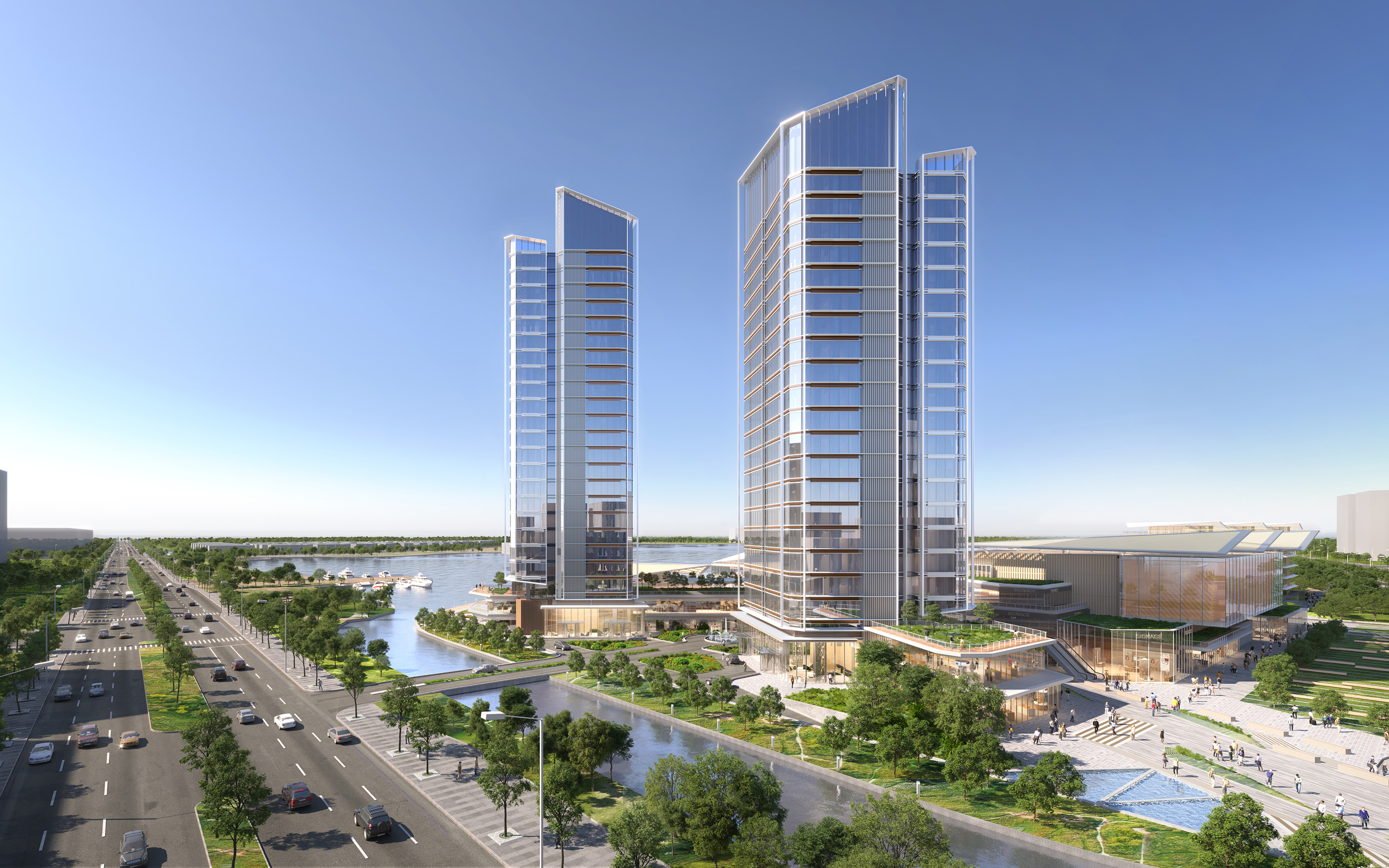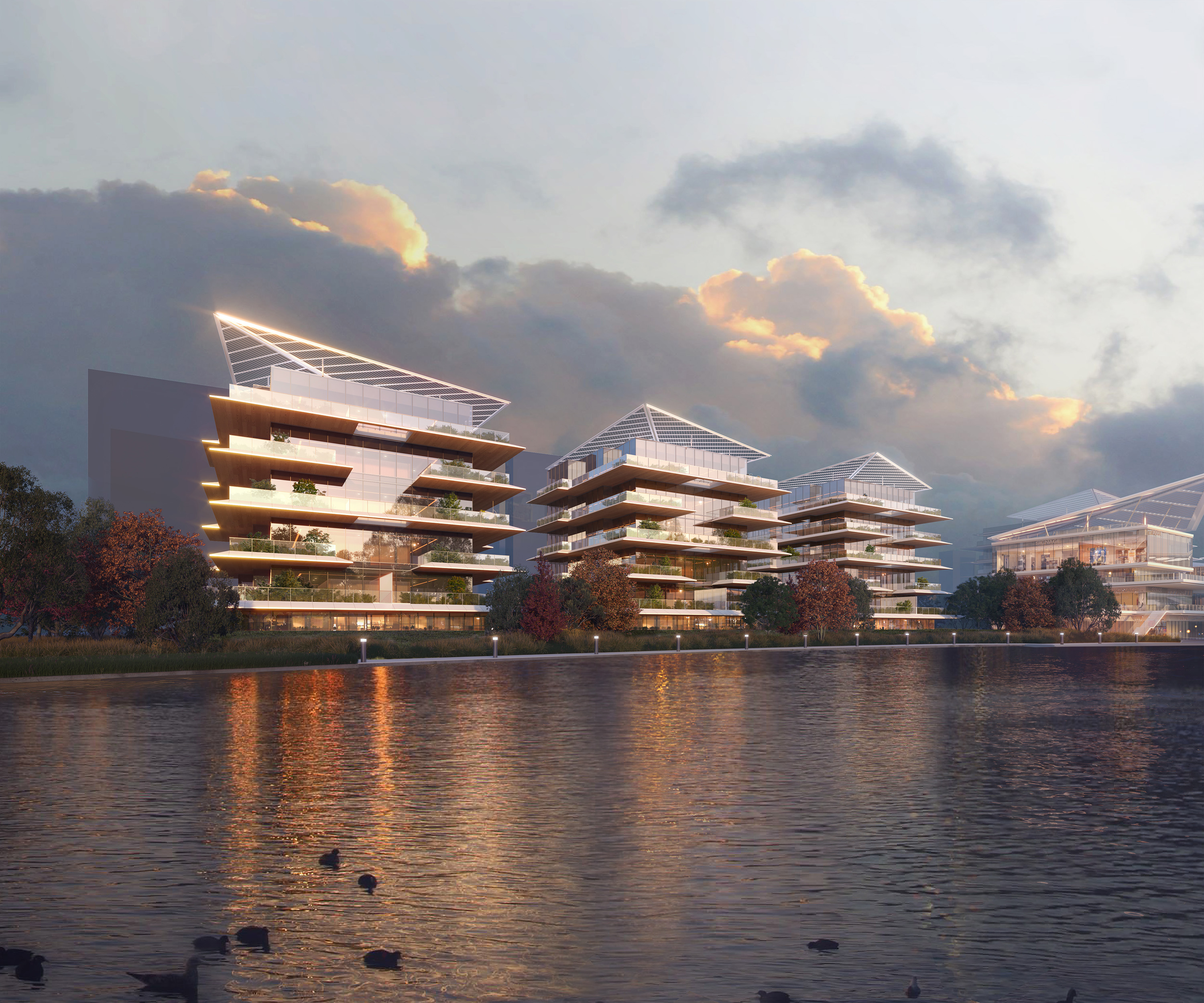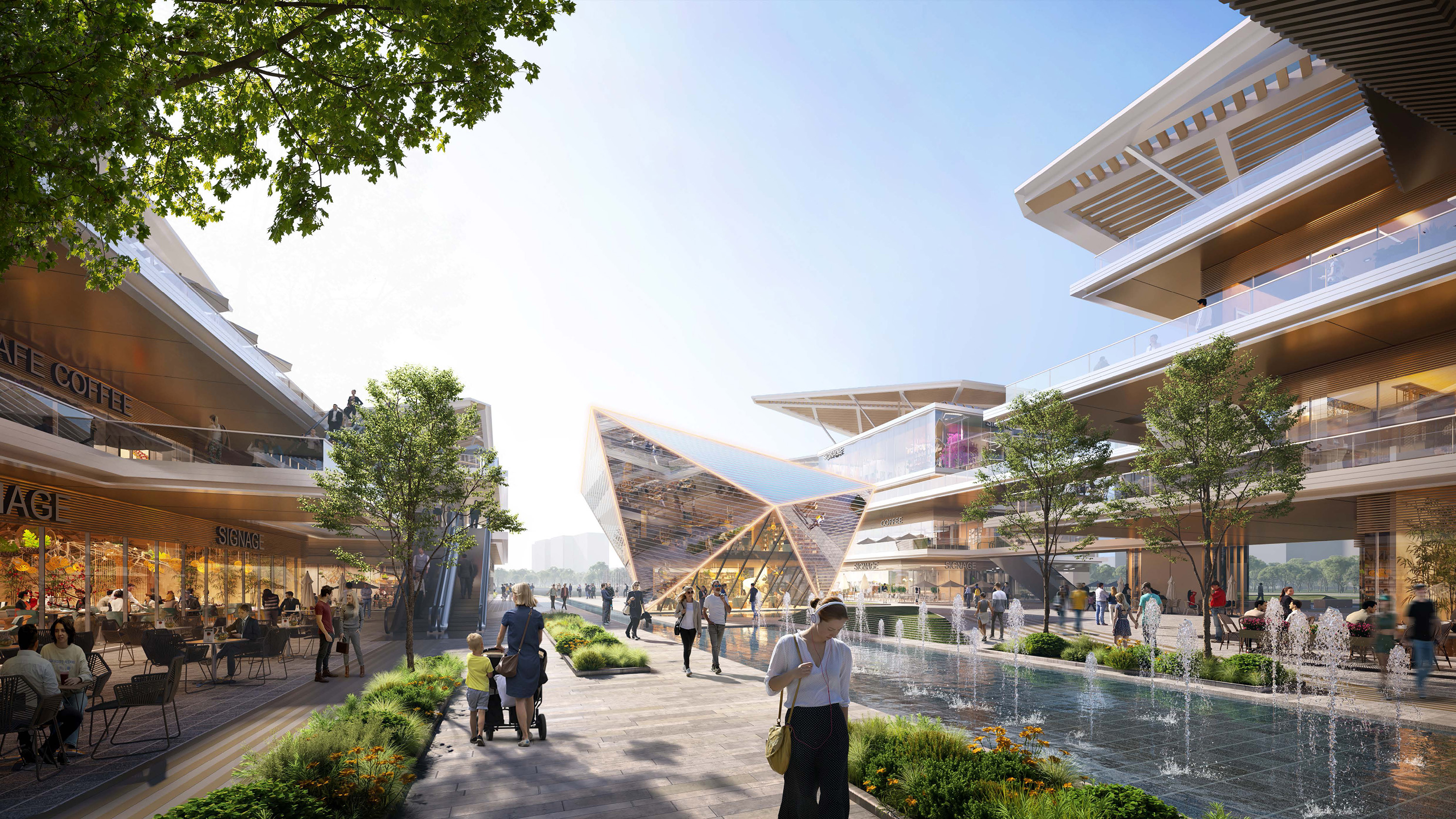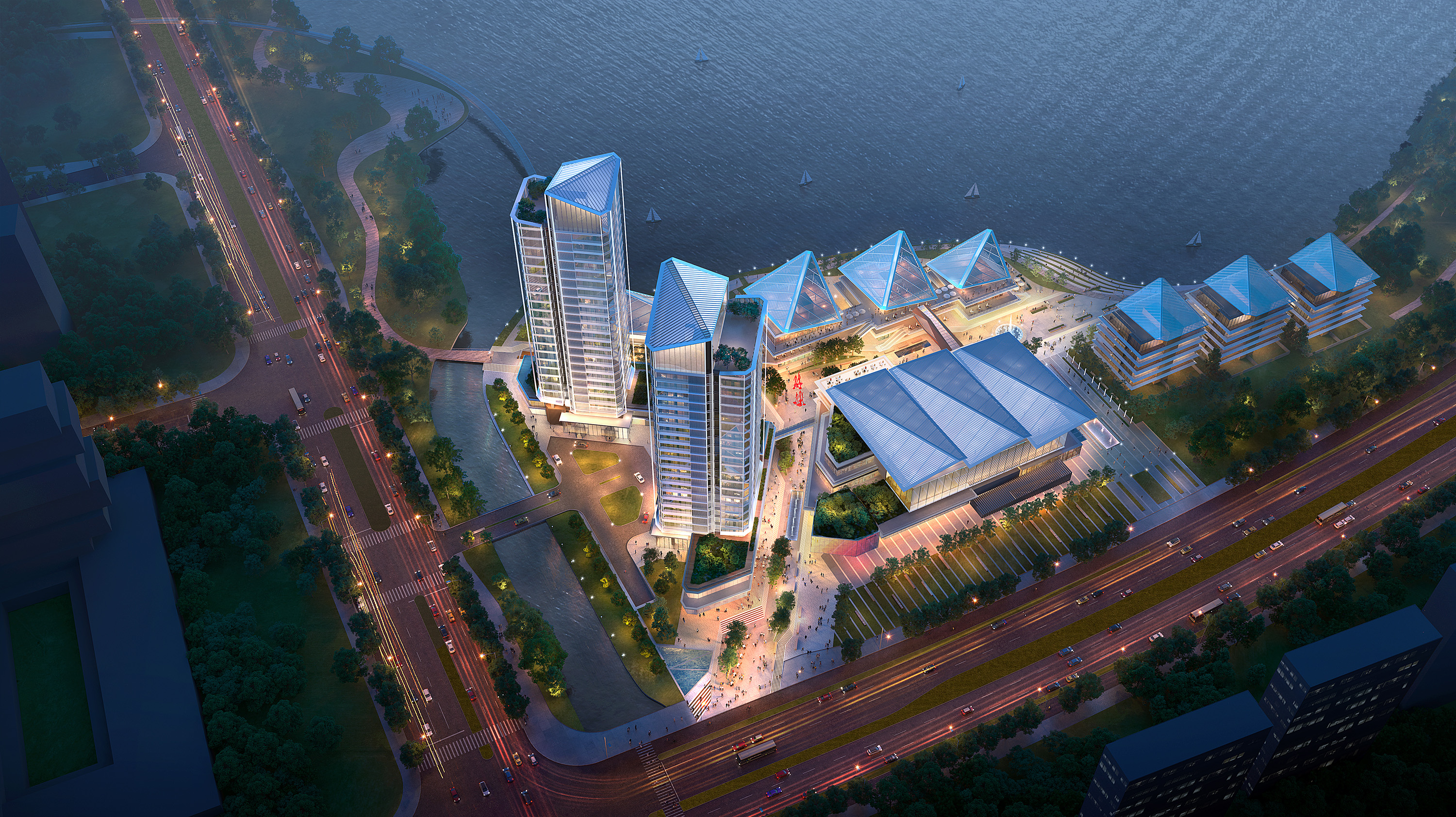 青剑湖商业广场位于苏州青剑湖畔,总面积64800平米,融合住宅、酒店、文化和娱乐,结合周围的公园系统,以生态和公共设施为特色。 它将成为社区的文化中心,包括21500平米高层住宅、8200平米别墅式住宅、16200平米零售、10500平米酒店和5000平米剧院。灵感来自苏州历史悠久的水乡,以折叠屋顶和乡村小径为特色。 从城市景观过渡到自然景观,成为一个充满活力的滨水景点,享有人行步道和自然美景。