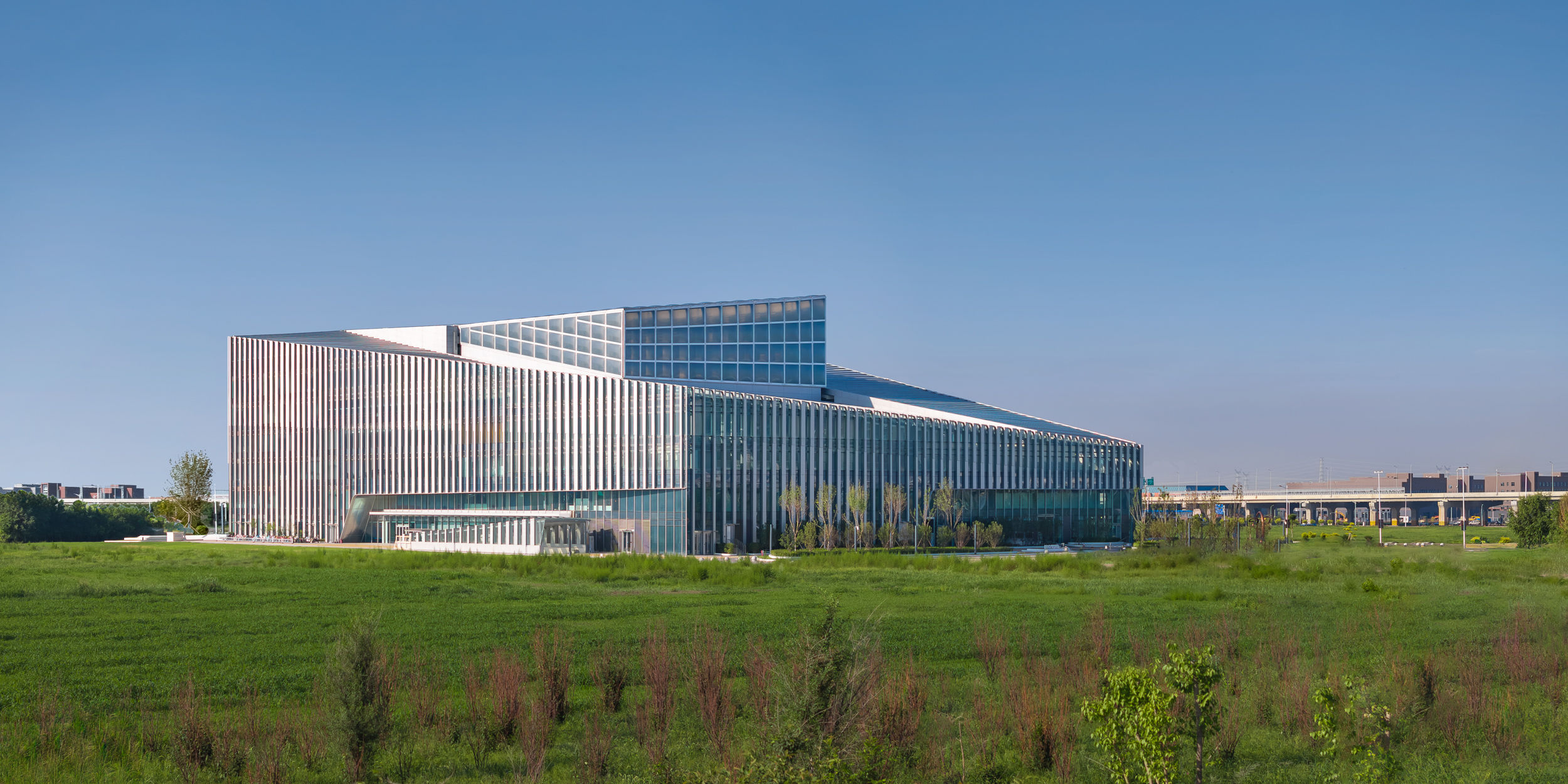 受内蒙古乳业技术研究院委托而设计的国家乳业技术中心,是中国唯一的国家乳品技术创新中心,用于在中国推广和展示该领域先进技术。该建筑位于呼和浩特市伊利健康谷西侧,占地面积22213平方米,总建筑面积45137平方米。建筑设计的灵感来源于“融于牛奶中的方糖” ,象征着各种元素和功能的完美融合。这也意味着整合知识、资源和人才,建设国家创新中心。