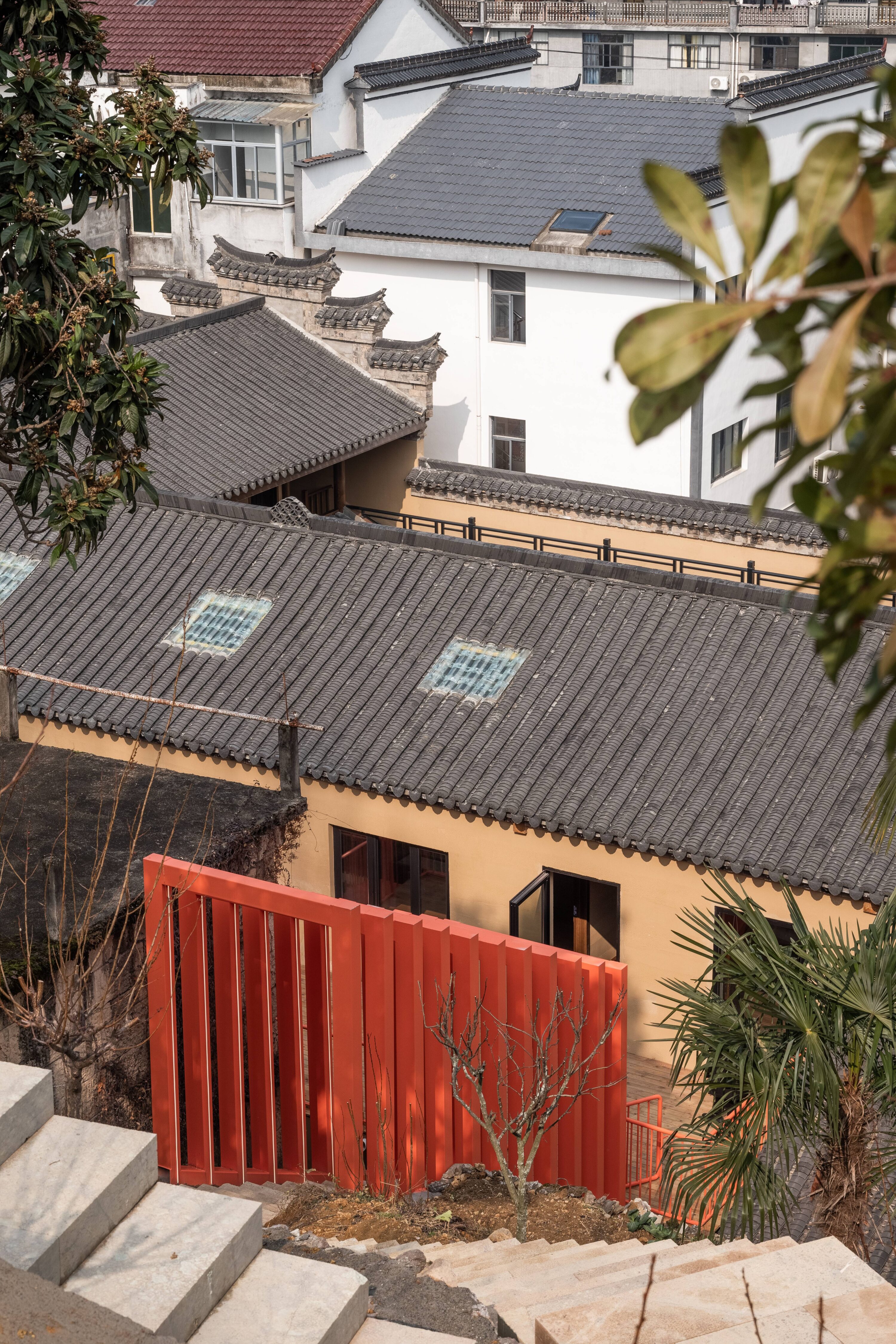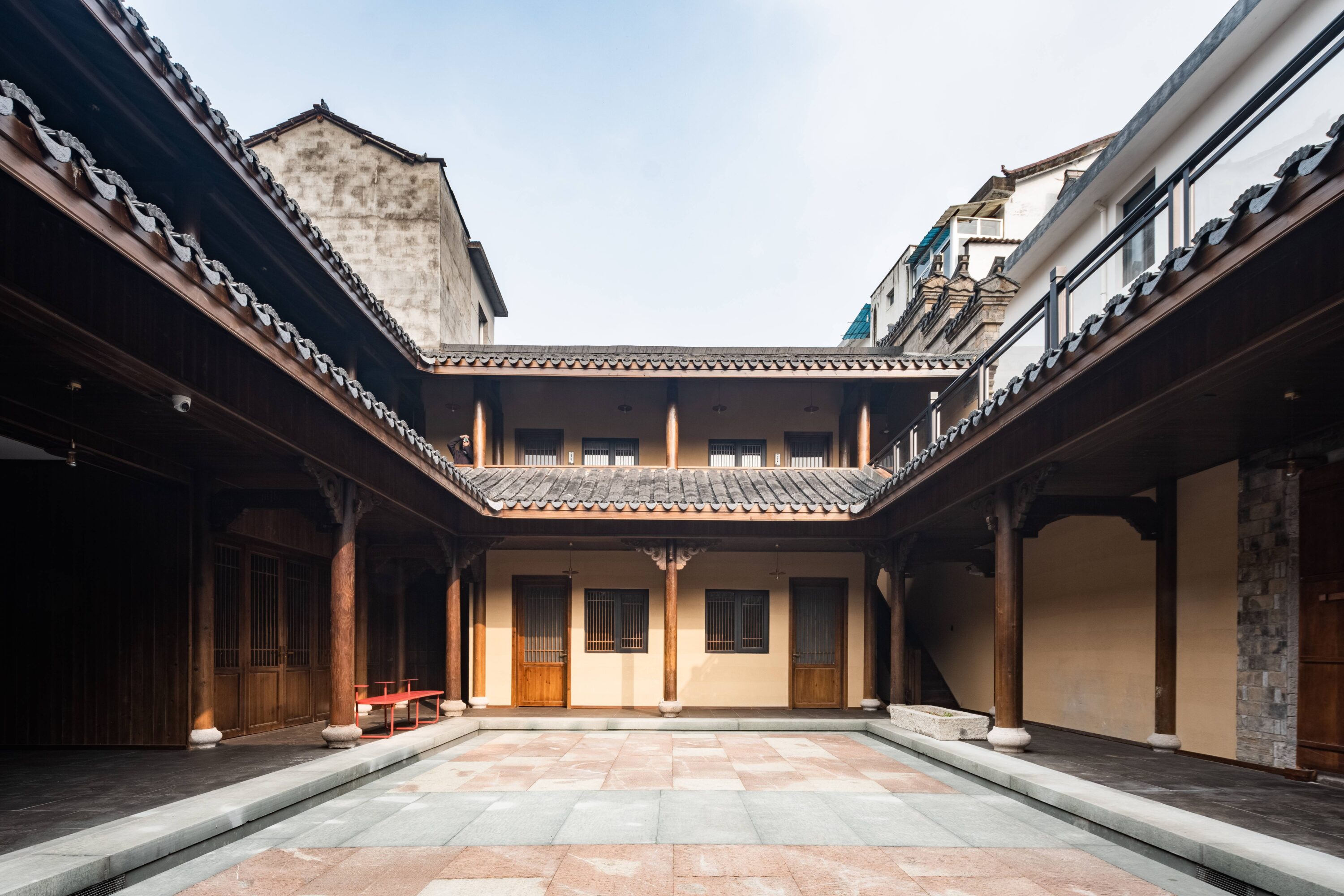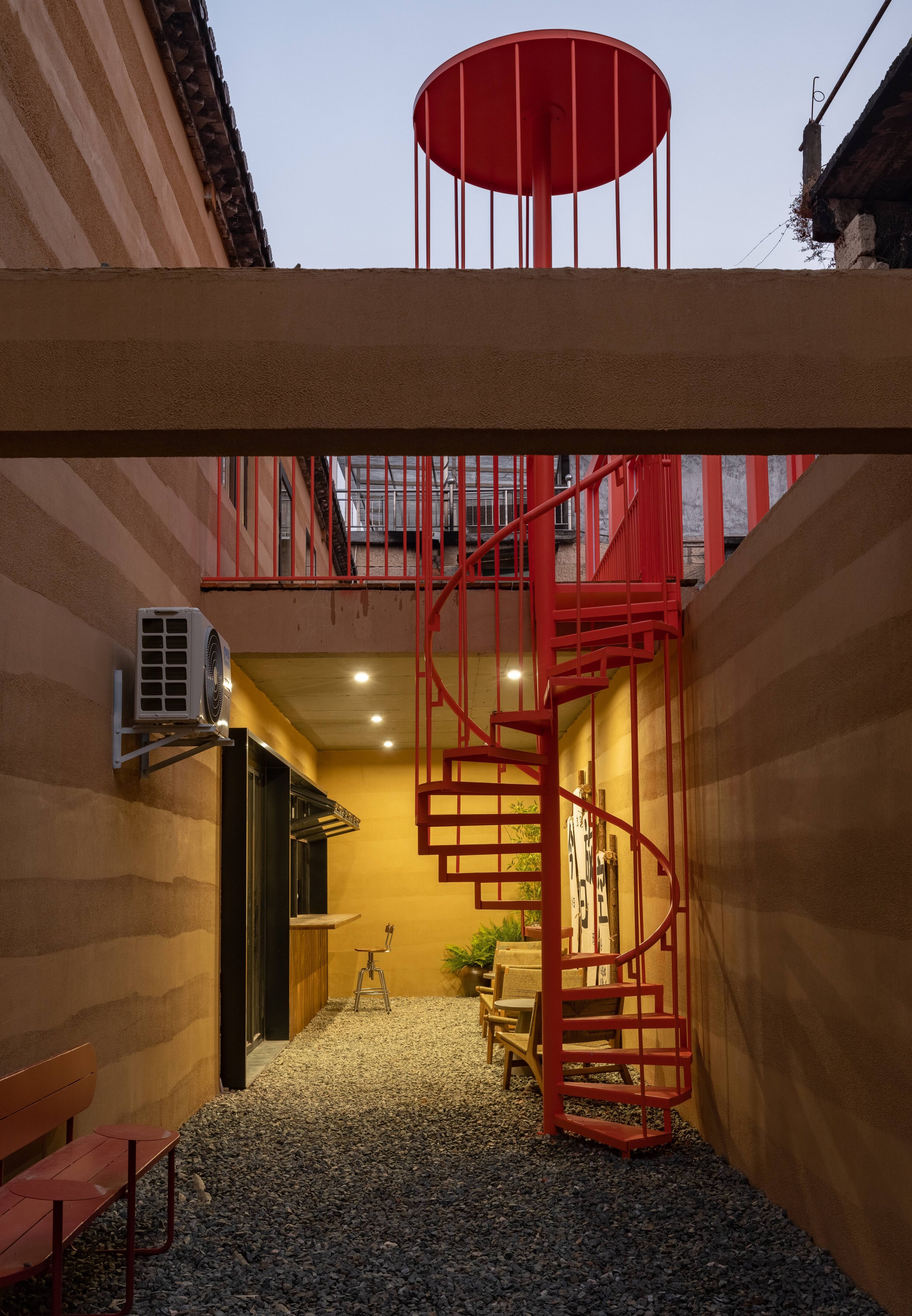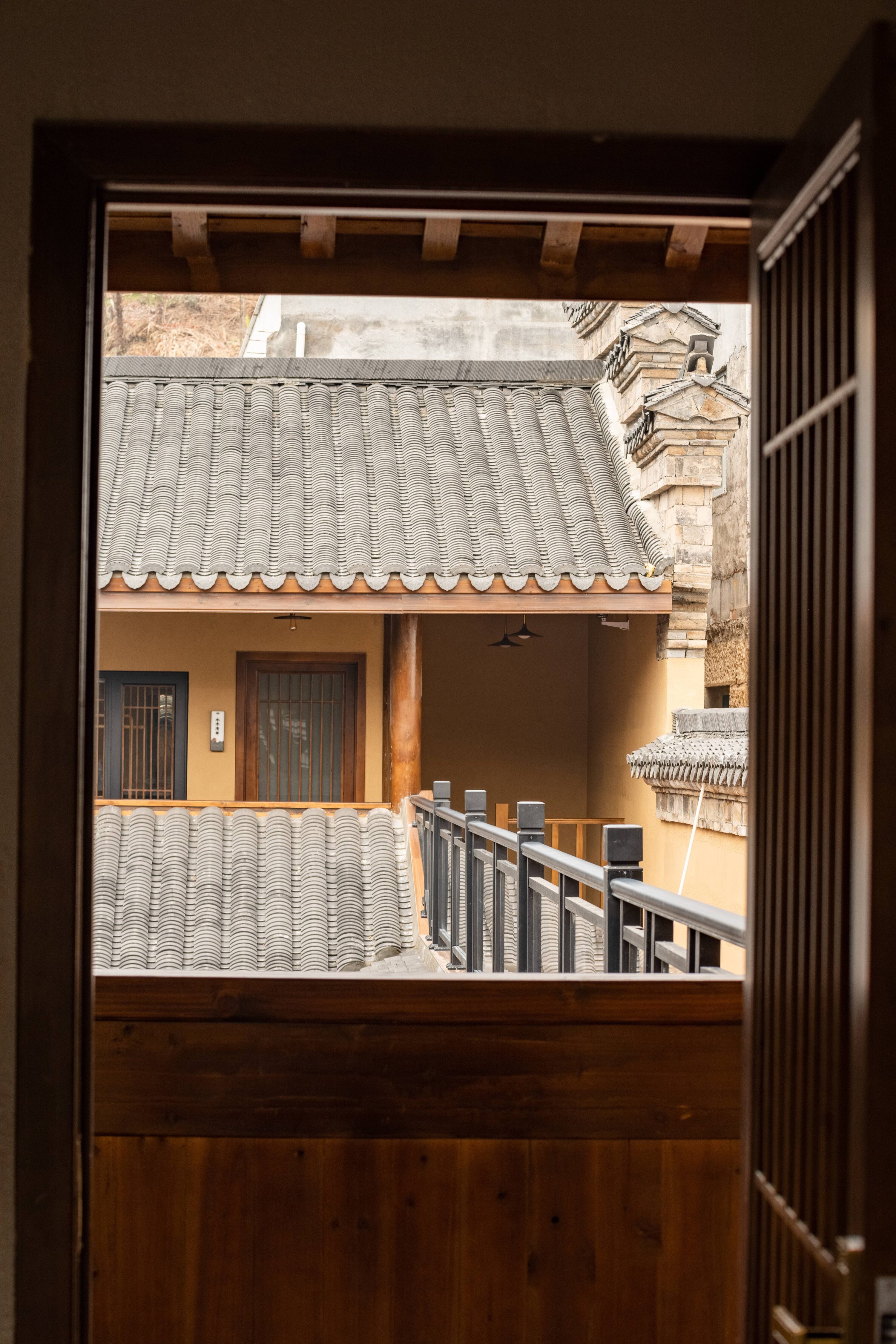 本案以”时空叠合”为核心设计哲学,在历史建筑肌理与现代生活需求之间构建对话,打造一座承载文化记忆、激活空间生命力的诗意栖居之所。设计严格遵循传统四合院”四水归堂”的空间理念,保留抬梁式木构架、青砖马头墙、纹样砖雕等建筑基因。主厅保留”明堂”格局,定制夯土墙面肌理源自本地黄泥采样分析,二层置入回廊串联多功能区和客房区,拉近了人与自然的距离,展现了开合有序的空间变化,冲淡了建筑内外部的界限。