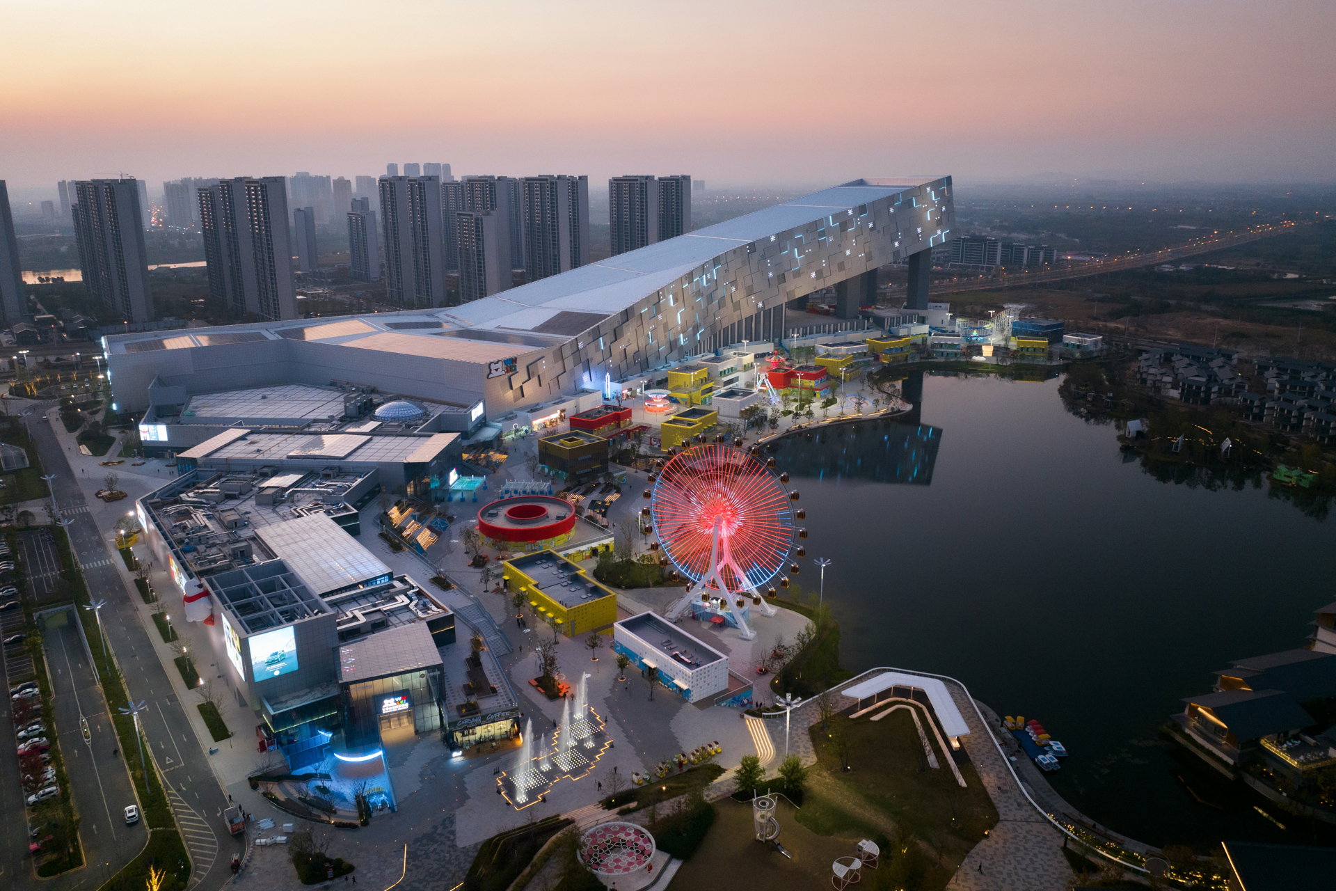 项目位于武汉黄陂区的甘露山国际滑雪场,毗邻木兰古镇,是一个环绕中央湖区,集结各类娱乐、体育、零售等设施的超大型商业娱乐综合体,大面积公共露台的建筑体量与三维像素主题的外立面相映成趣,将成为区域的全新地标型建筑。全新的娱乐综合体将室内滑雪运动、户外主题乐园以及商业街区完美结合,开创提供全方位服务的新型超级休闲综合地标。甘露山国际滑雪场规划定位为一个环湖娱乐24小时不停歇的综合性舞台。狂欢的氛围、室内室外贯通的商业街、水上运动和抽象的山景融为一体,在奇幻的大型综合体中给人们带来沉浸式的体验。