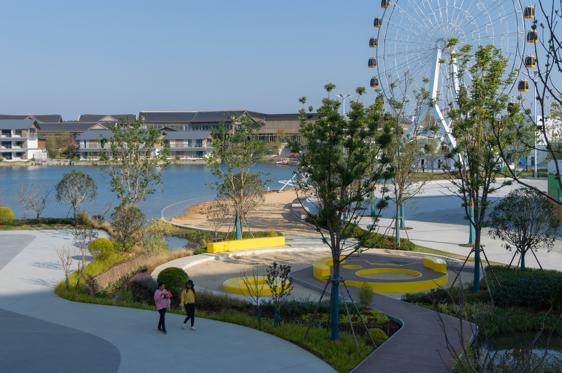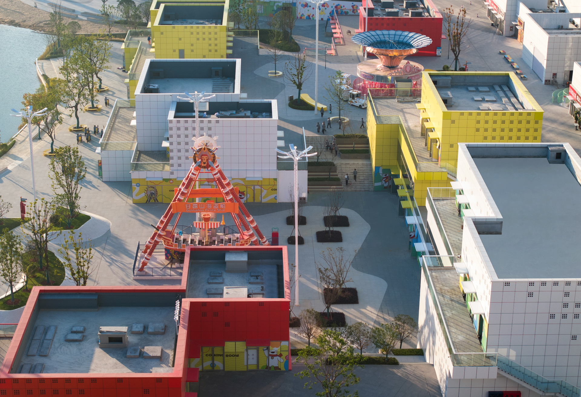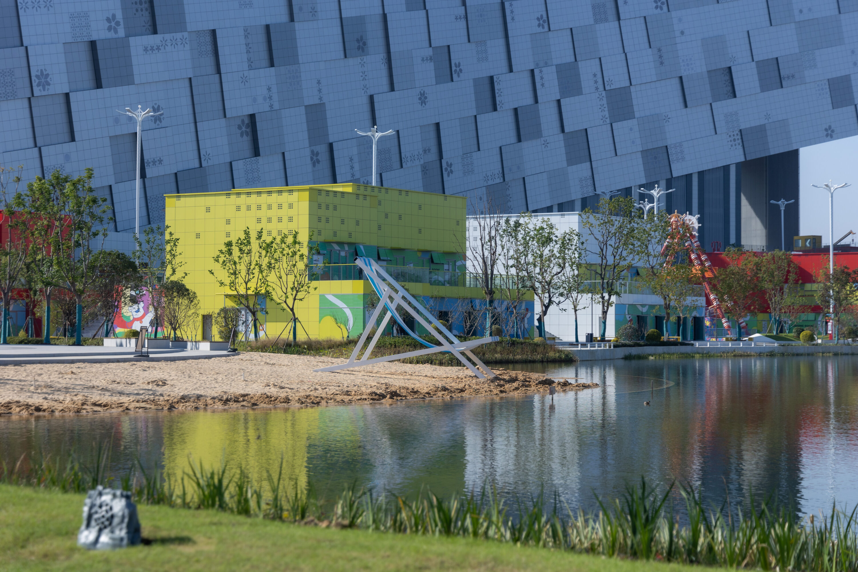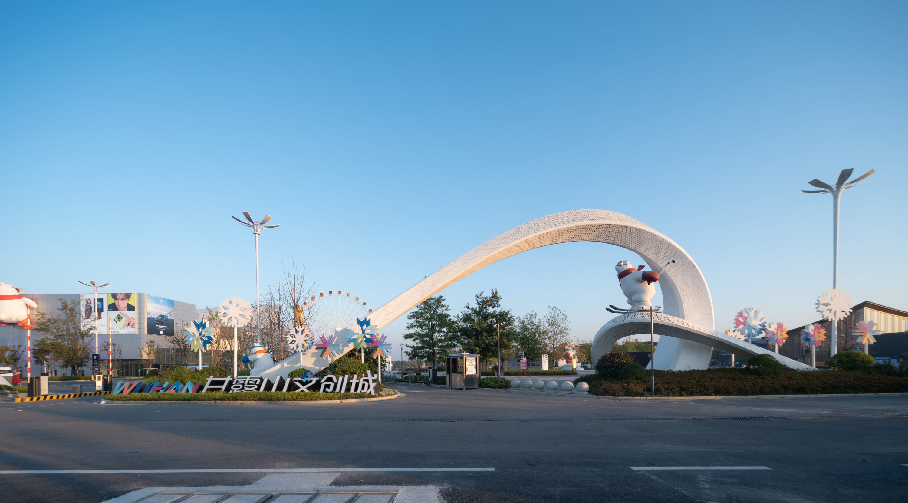 项目位于武汉黄陂区的甘露山国际滑雪场,毗邻木兰古镇,是一个环绕中央湖区,集结各类娱乐、体育、零售等设施的超大型商业娱乐综合体,大面积公共露台的建筑体量与三维像素主题的外立面相映成趣,将成为区域的全新地标型建筑。全新的娱乐综合体将室内滑雪运动、户外主题乐园以及商业街区完美结合,开创提供全方位服务的新型超级休闲综合地标。甘露山国际滑雪场规划定位为一个环湖娱乐24小时不停歇的综合性舞台。狂欢的氛围、室内室外贯通的商业街、水上运动和抽象的山景融为一体,在奇幻的大型综合体中给人们带来沉浸式的体验。