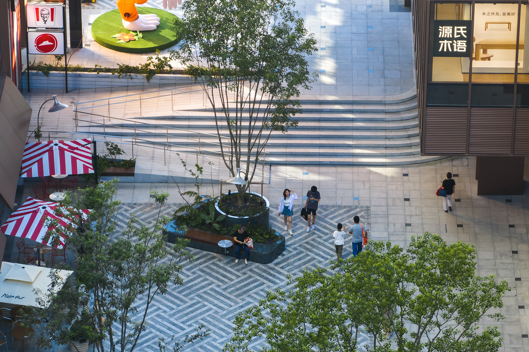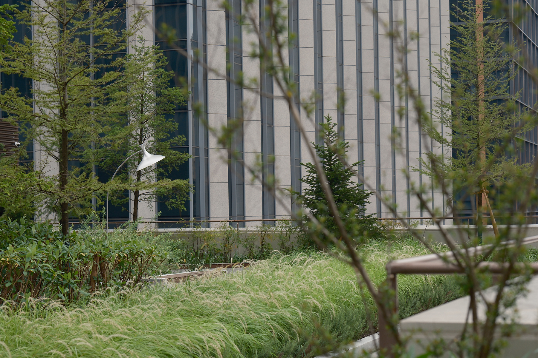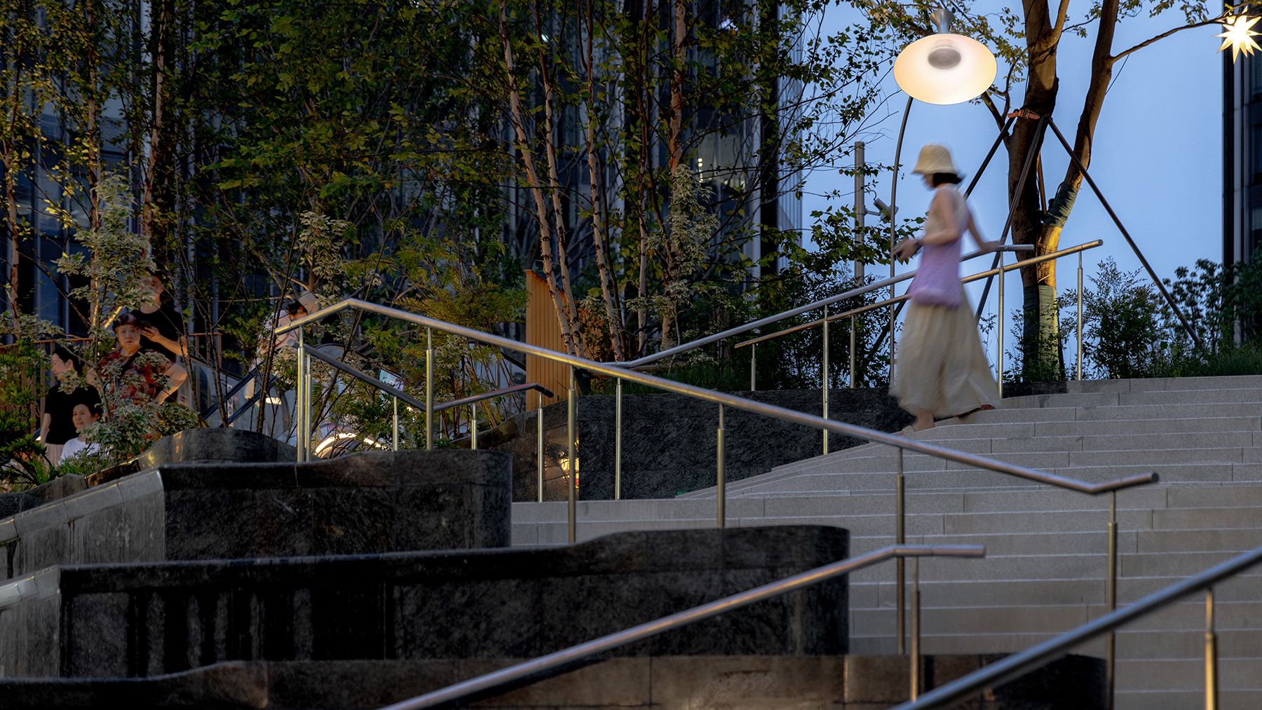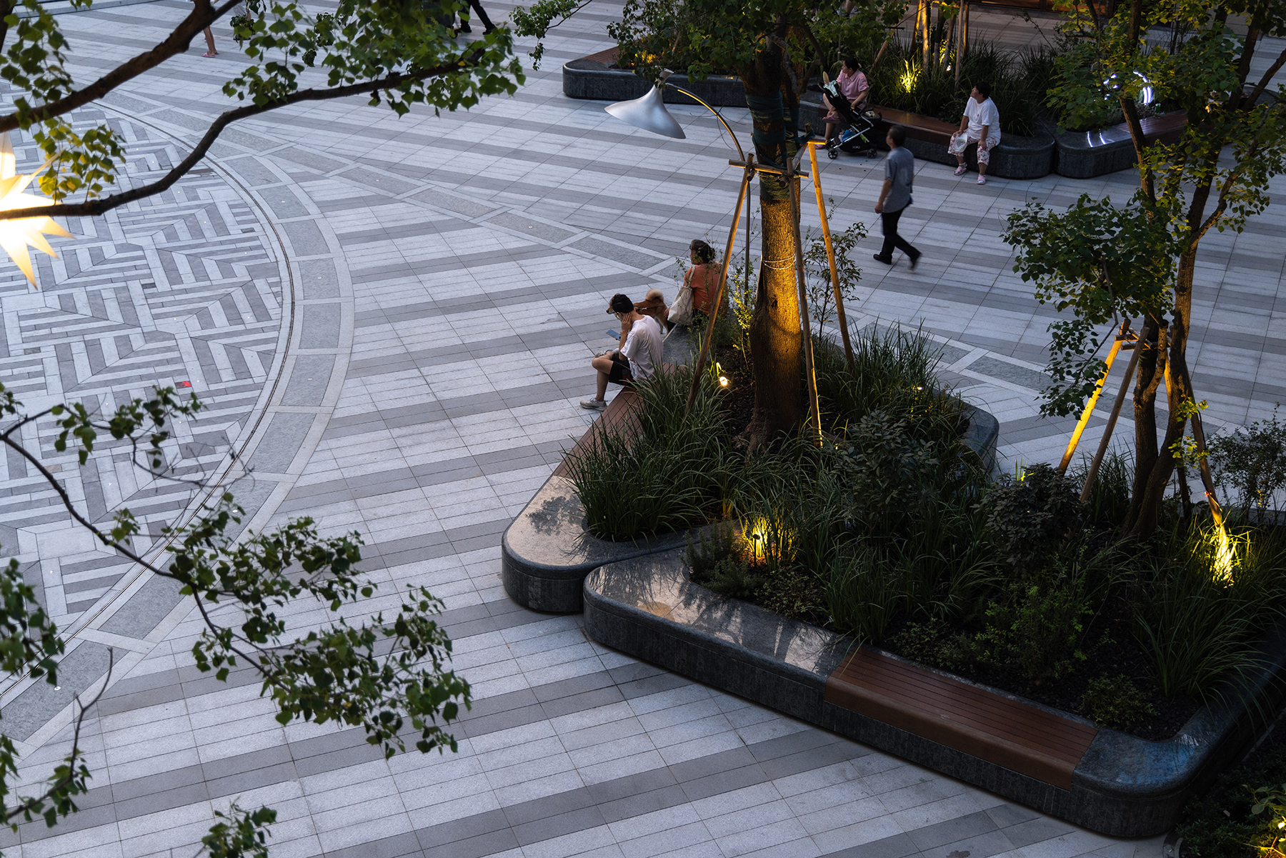 上海徐汇万科中心历经12年开发,以“山林中城”为核心理念,整合三期共72万㎡综合体。项目毗邻上海南站枢纽,通过“POD(公园×TOD)”模式,以“高效链接”策略缝合被割裂的场地,构建立体步行网络串联商业、办公与绿轴公园;“自然共生”策略通过生态圈分层与杂木林种植,打造低维护、可持续景观。设计强调“日常致远”,以人性化公共空间抵御极端气候考验,平衡城市更新与生态韧性,重塑可持续城市肌理。