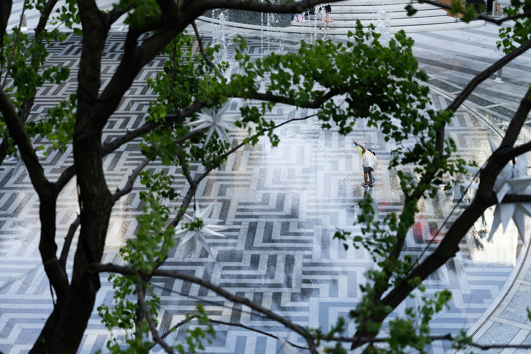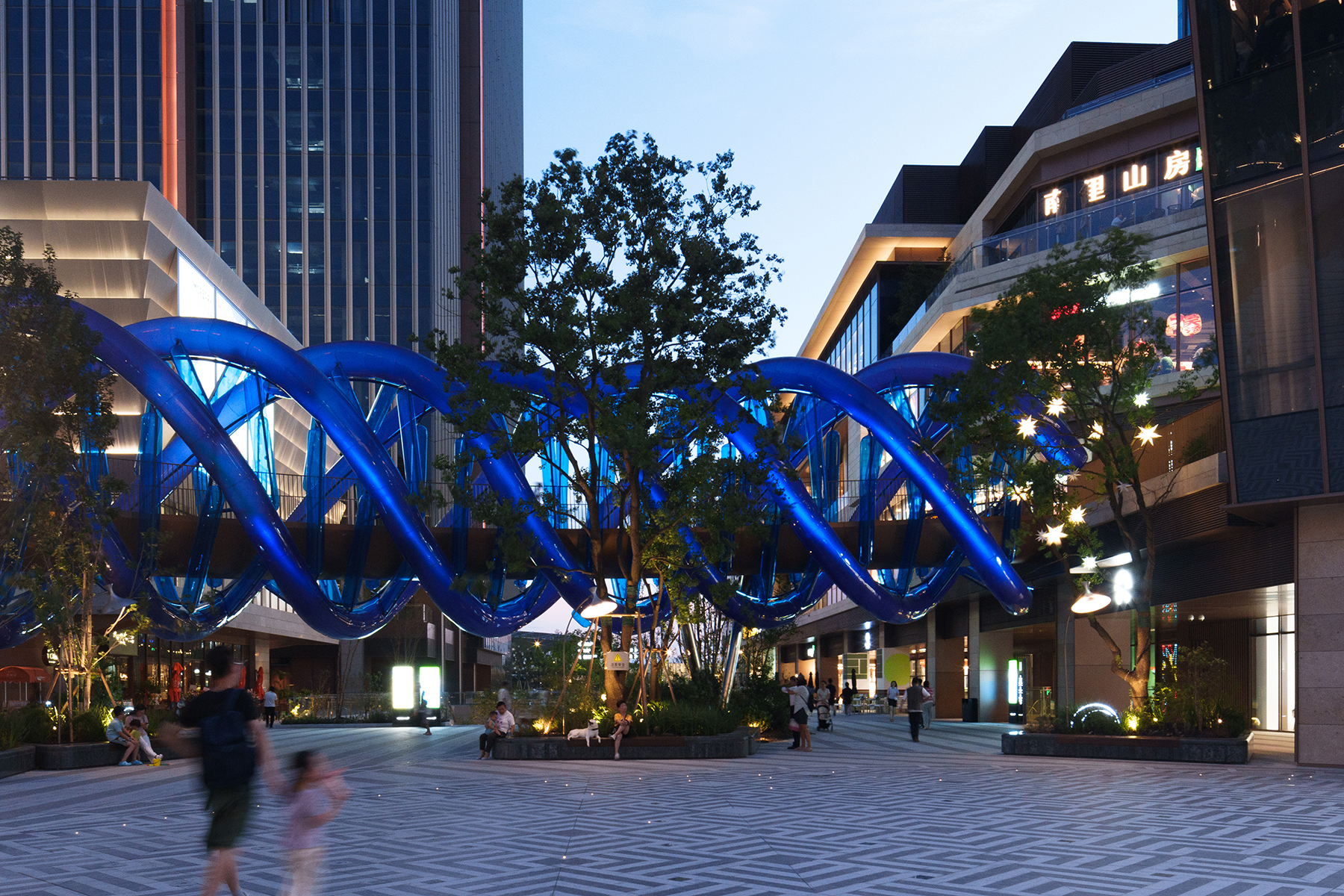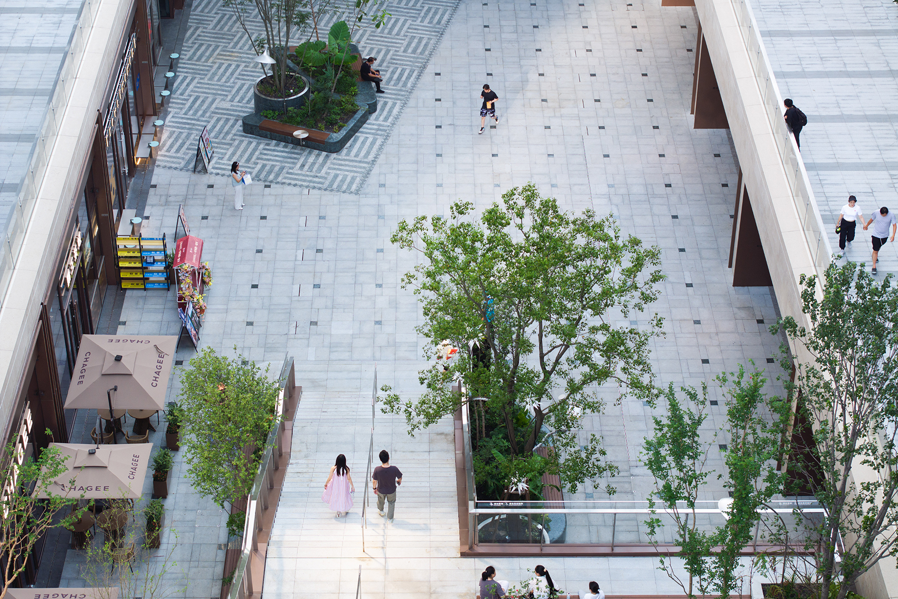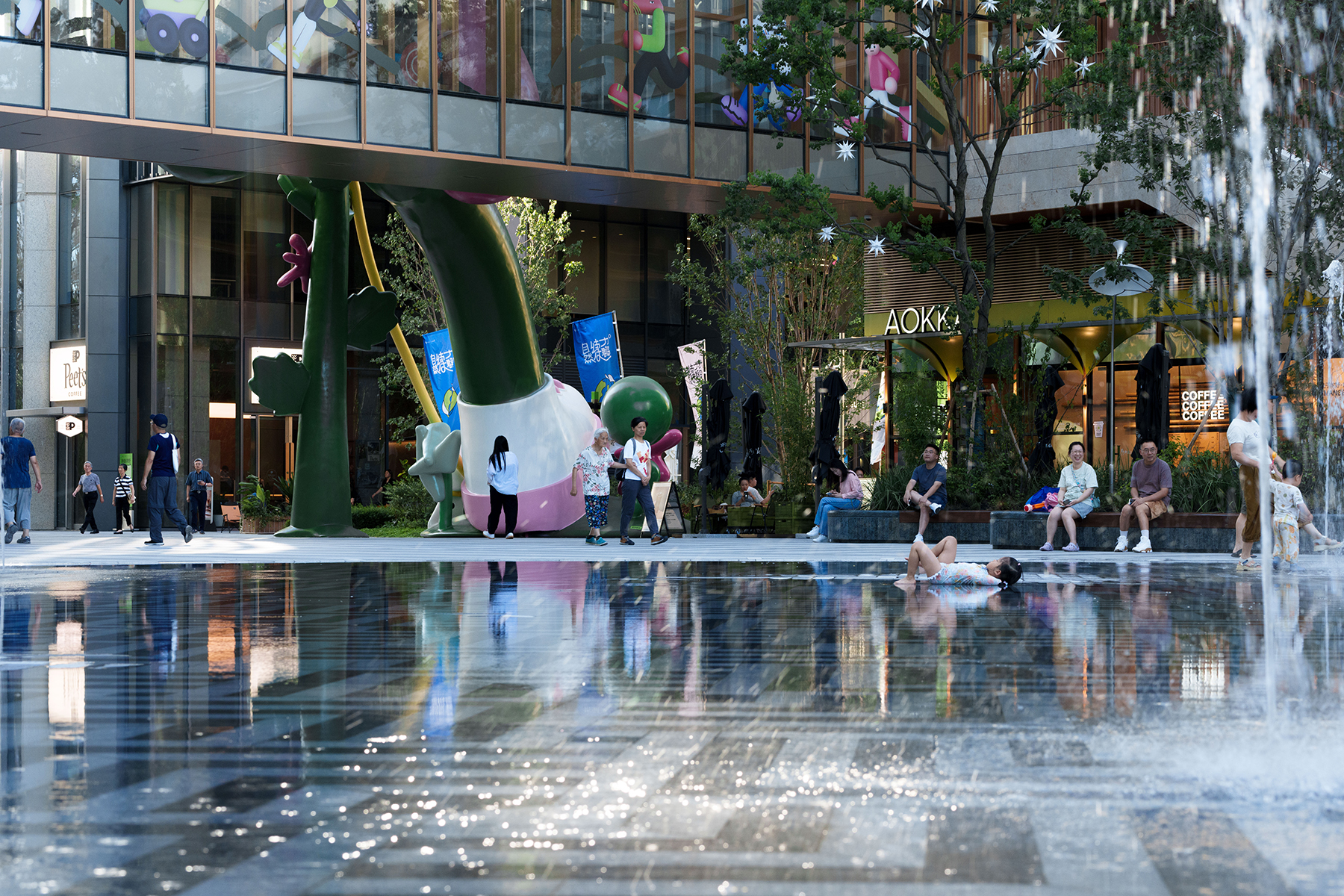 上海徐汇万科中心历经12年开发,以“山林中城”为核心理念,整合三期共72万㎡综合体。项目毗邻上海南站枢纽,通过“POD(公园×TOD)”模式,以“高效链接”策略缝合被割裂的场地,构建立体步行网络串联商业、办公与绿轴公园;“自然共生”策略通过生态圈分层与杂木林种植,打造低维护、可持续景观。设计强调“日常致远”,以人性化公共空间抵御极端气候考验,平衡城市更新与生态韧性,重塑可持续城市肌理。