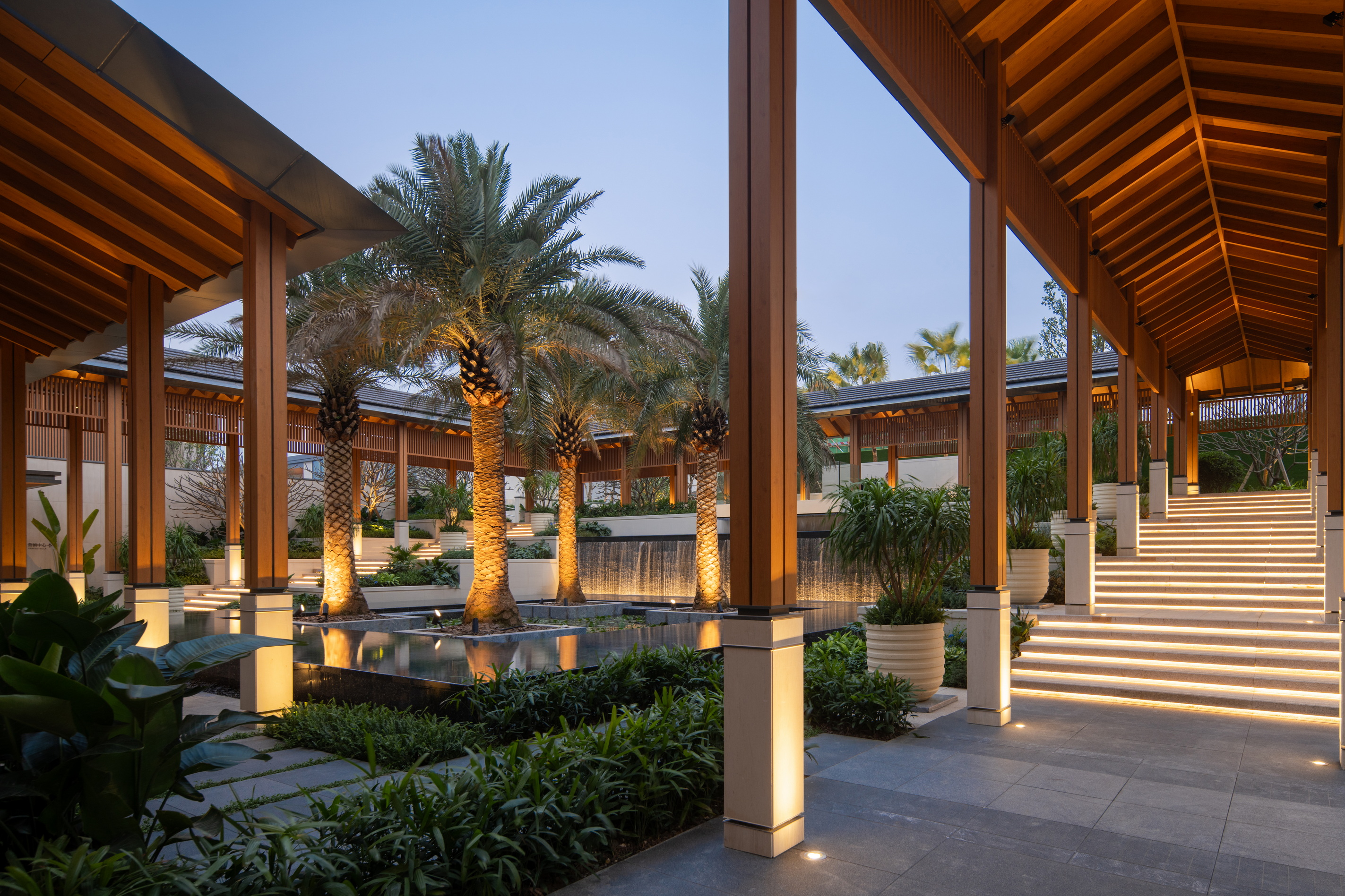 在美丽的中山,设计者打造了一个带有岭南地域文化的“原墅”生活场。场地拥有迷人的景观资源,东侧紧邻城市公园,距珠江海面仅1.5KM。从开阔的沿海水面到青翠的公园绿地,整体氛围是与自然和谐相处的奢华体验。对于将在此地新生的展示区,设计师希望最大程度地保留沿海环境,释放海面疗愈的度假感受。让归家者能在这片林、海、雾环绕拥抱的土地中,轻轻地放下自己,找到心的归处。