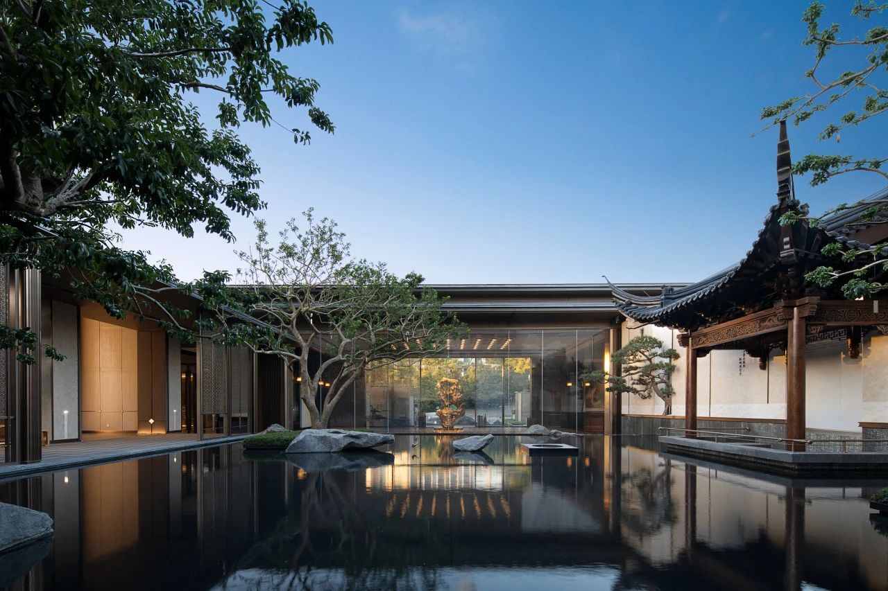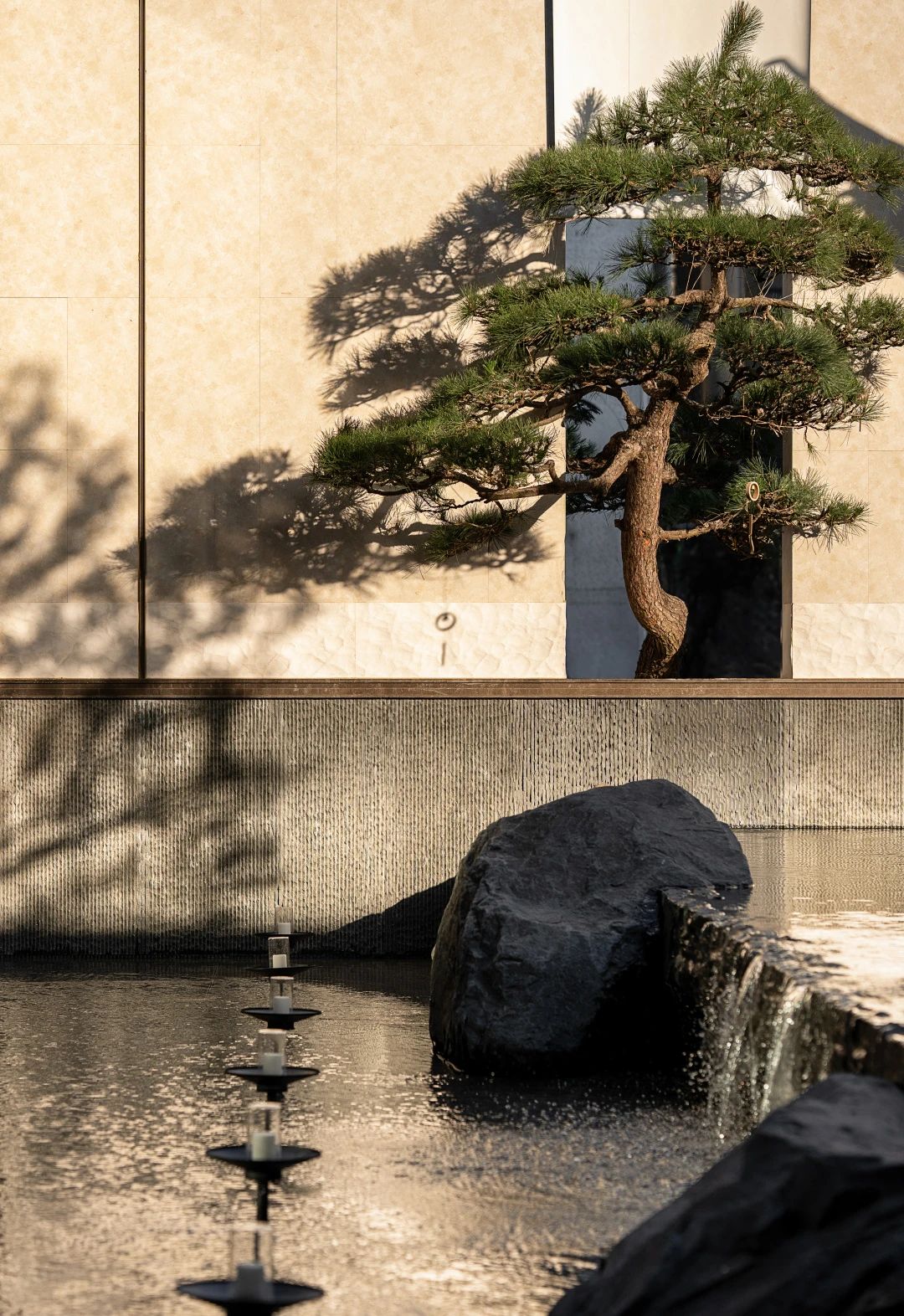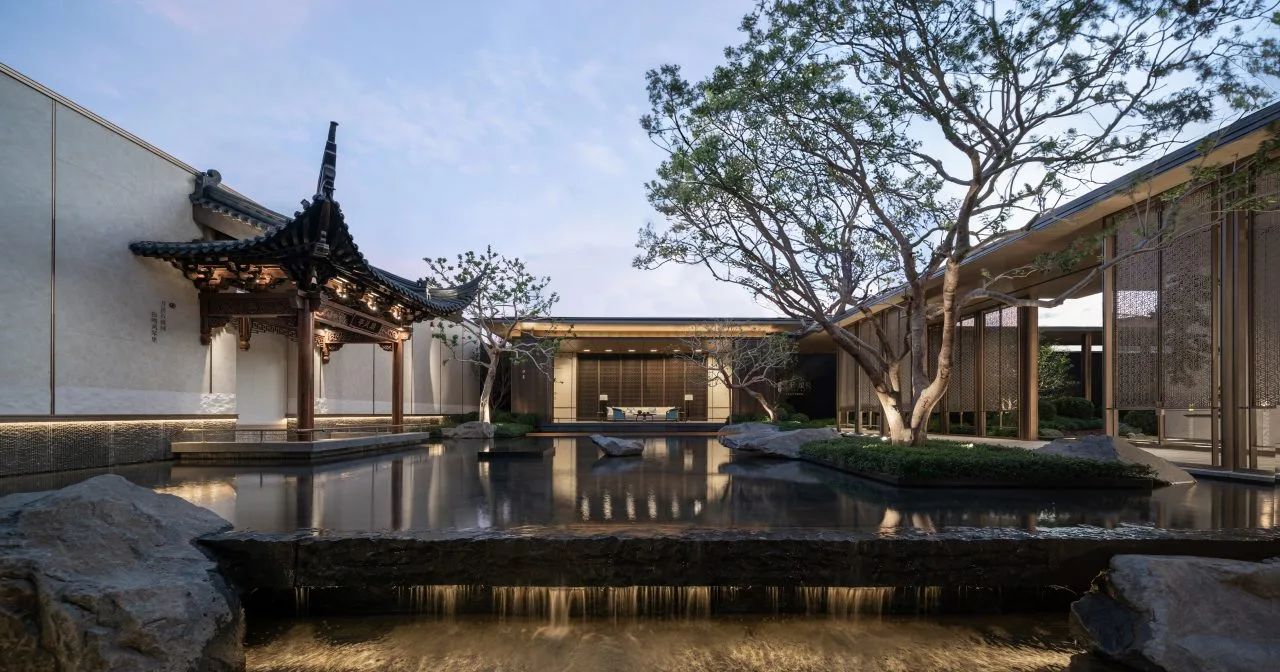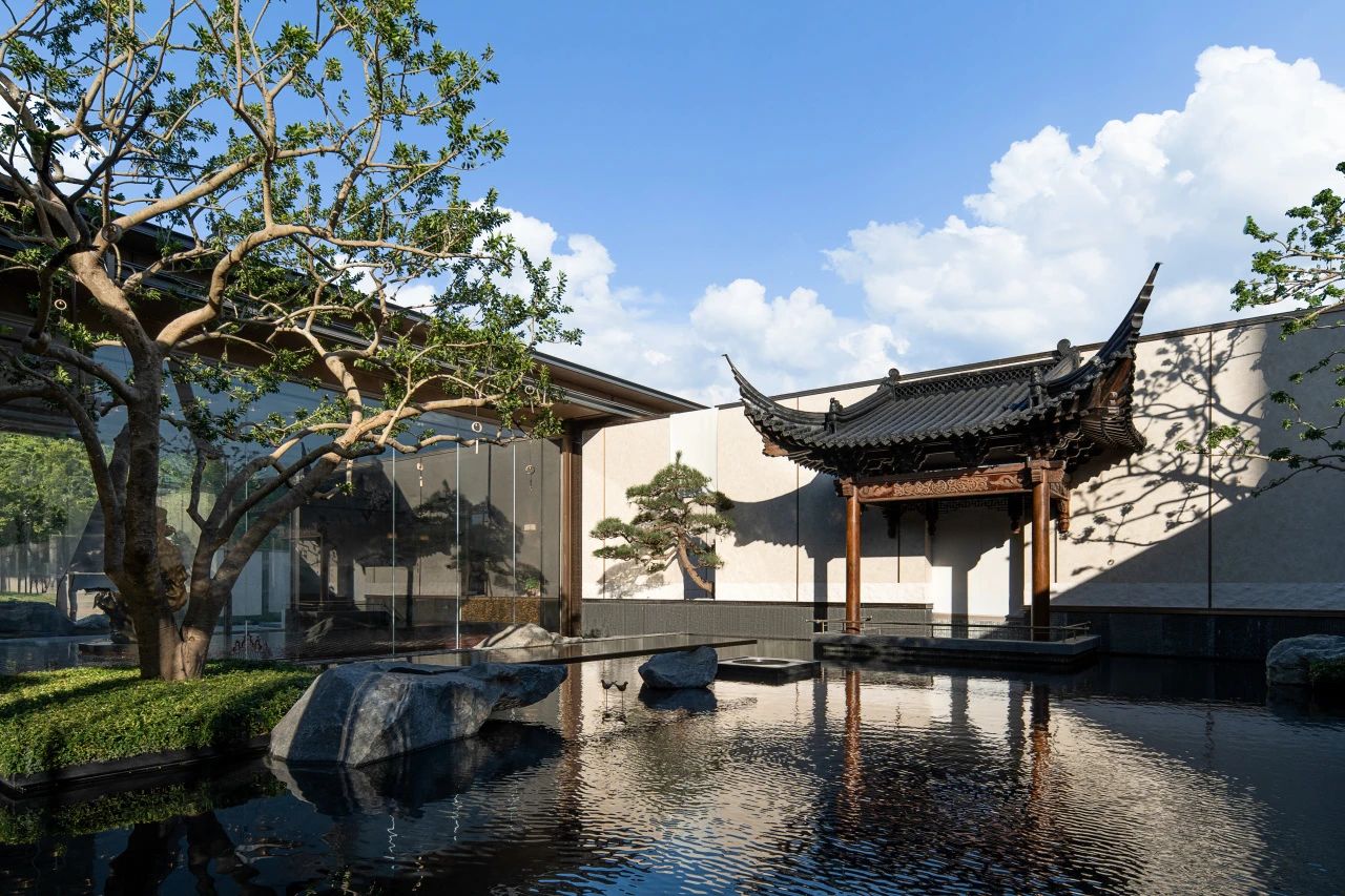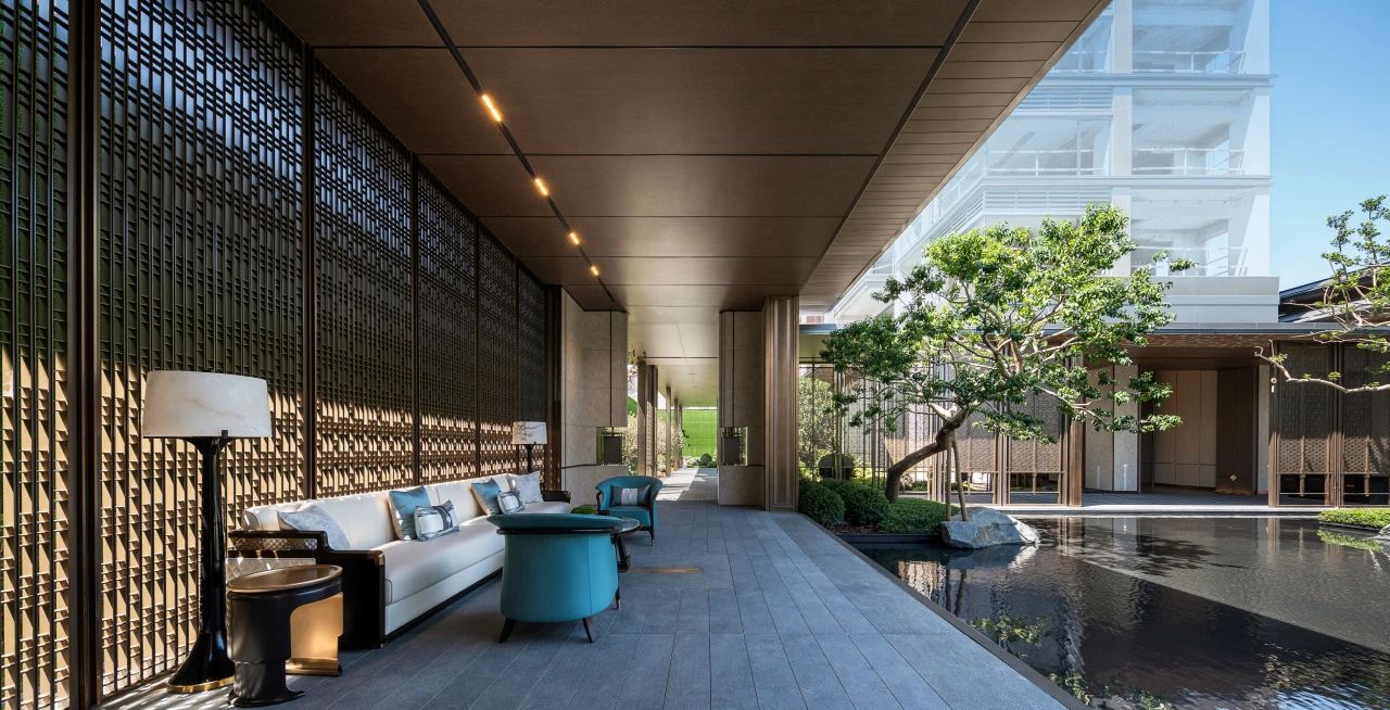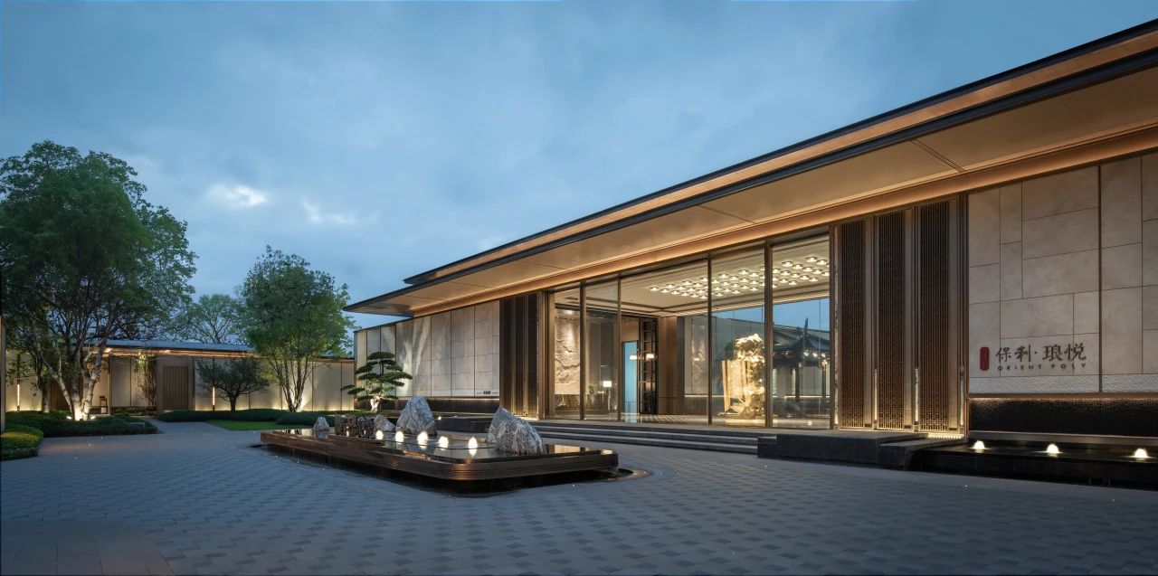 保利琅悦秉承“意境东方、一园三堂、悦见青绿、松石守望”的设计理念。空间上,琅悦通过“一园三堂”的布局、“四境十景”的意境,演绎起转承合的宋式美学空间故事;从岭南四大园林之一的“清晖园”中汲取灵感,将“疏密得宜 、曲折尽致”的古典造园手法结合现代几何美学,营造可行、可望、可游、可居的现代东方园林。