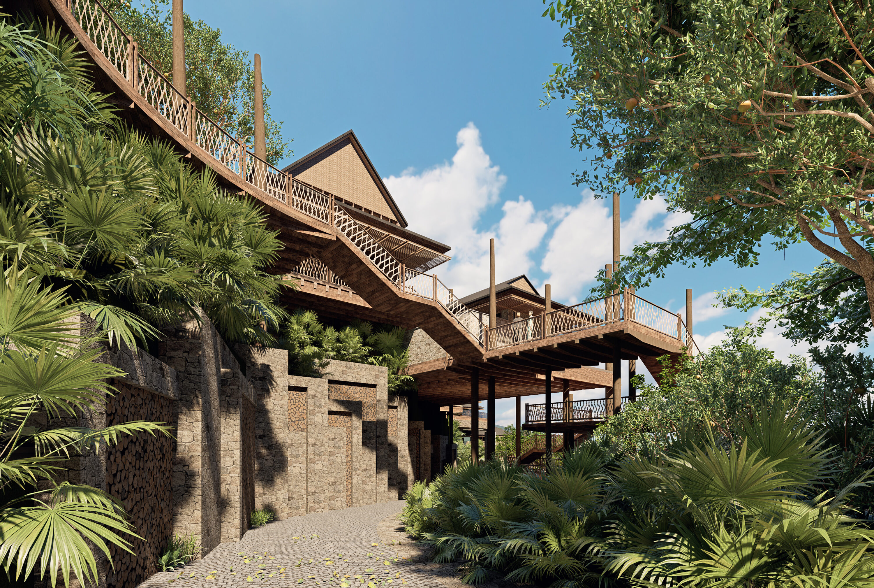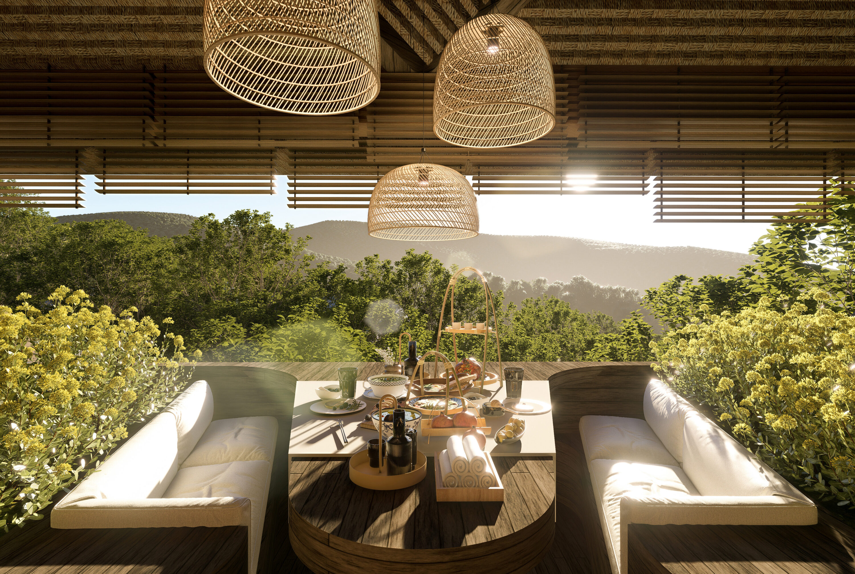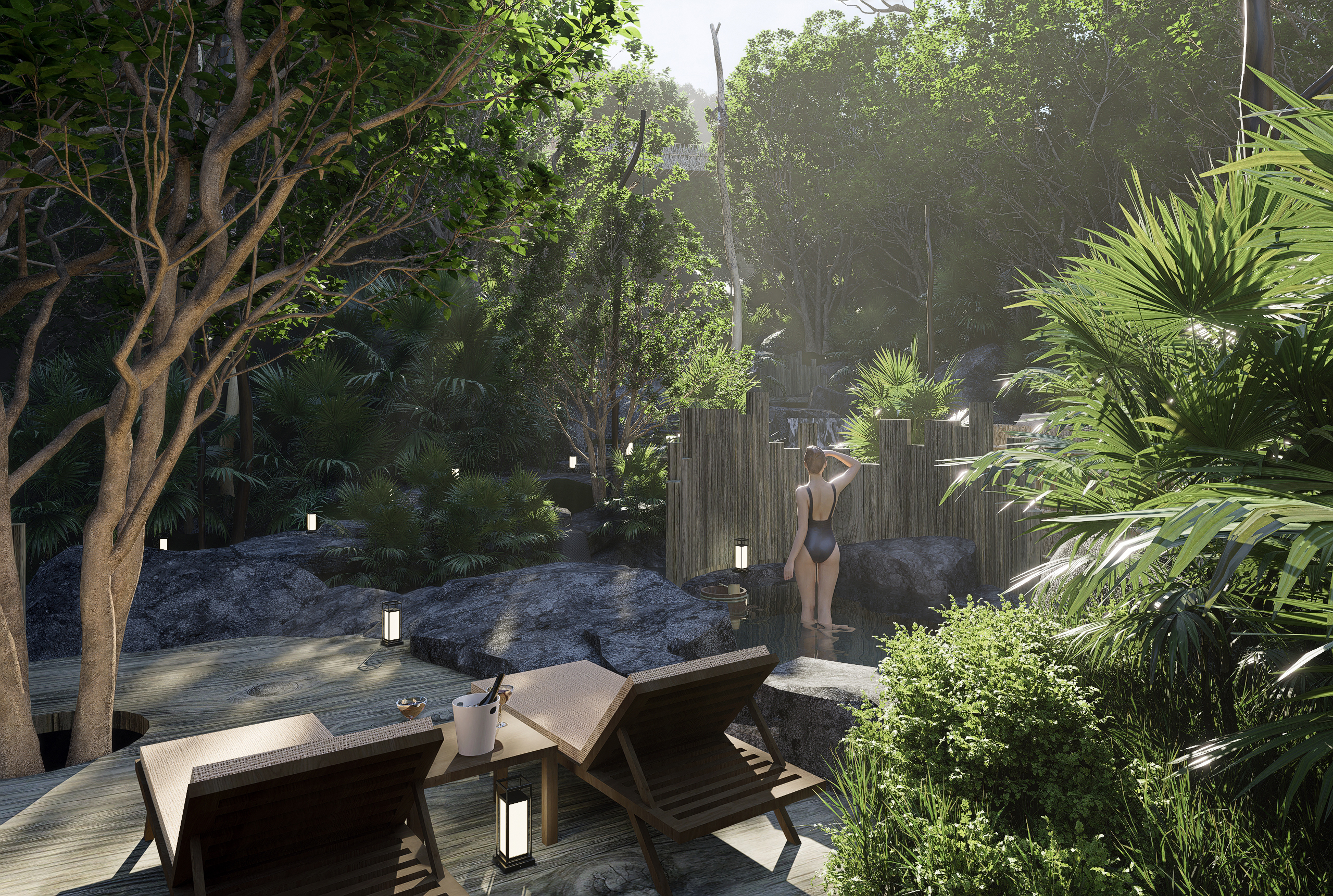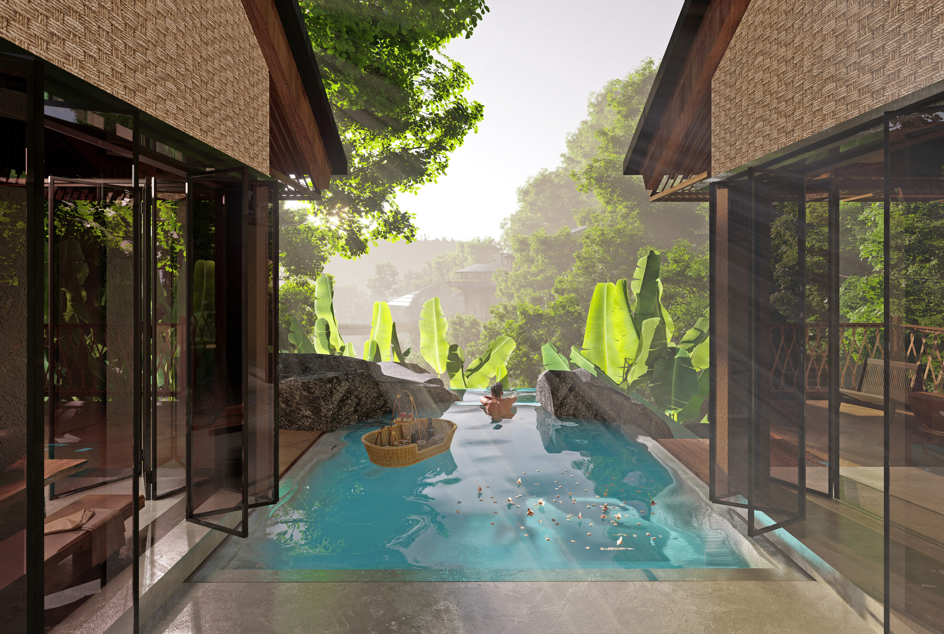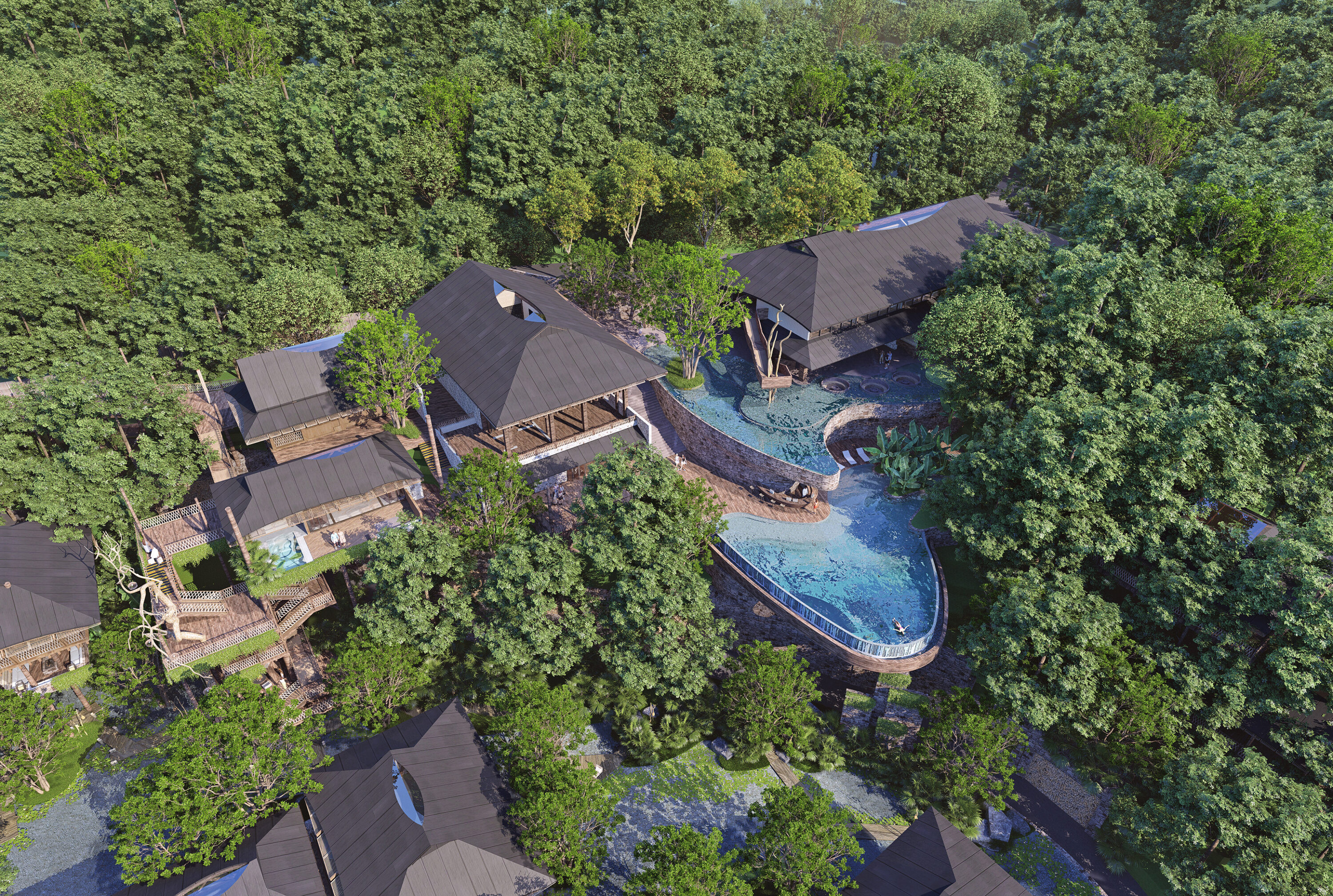项目位于云南普洱市澜沧县惠民镇付腊村,距县城30公里,毗邻澜沧景迈机场及思湳高速,交通便利。地处原始森林腹地,周边植被茂密,坐拥自然温泉资源。项目占地3.7万平方米,规划建筑面积1.1万平方米,以高端野奢度假为核心,配置原生温泉SPA、特色餐酒吧、传统茶坊、高端会议厅及多样化度假单元,结合户外拓展功能,打造隐逸静谧的生态度假空间,精准服务追求自然野趣的高端消费客群。