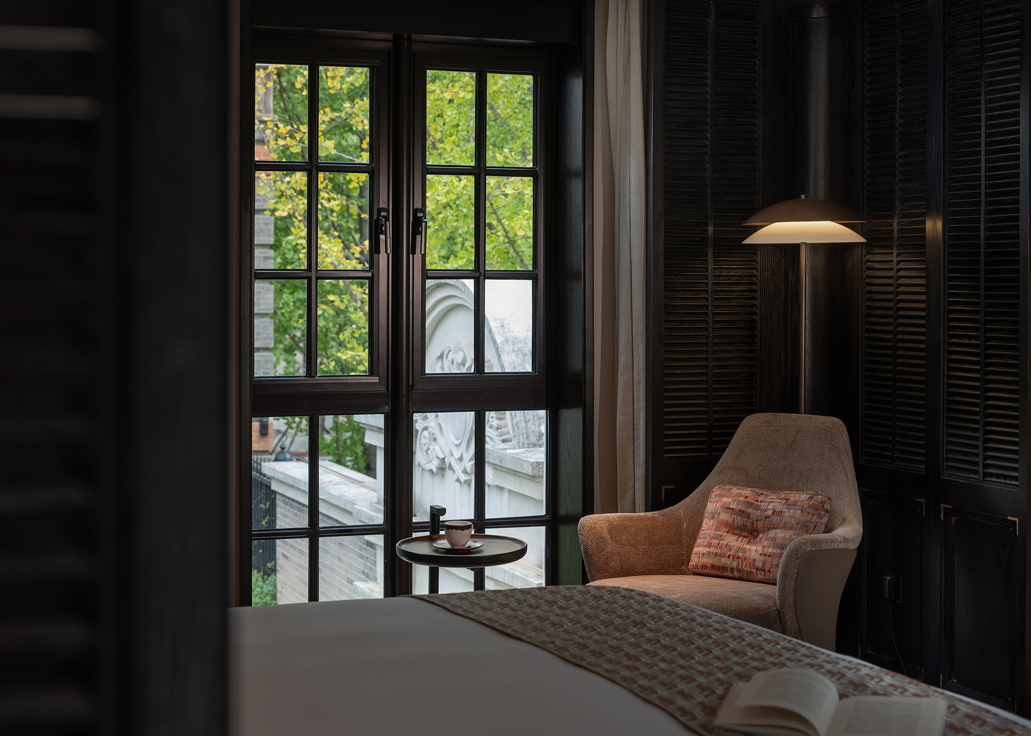 璟源·露香园酒店的室内设计融合了上海复古风情与现代雅致美学。客房设计灵感源自昔日顾氏风雅生活,以东方风格为基调,融合青莲、万竹等主题刺绣,展现出独特的文化韵味。室内采用深色木作墙面与浅色壁纸交织,地面铺设暖色鱼骨拼地板,搭配复古家具与现代艺术摆件,营造出温馨而典雅的氛围。走廊陈列民国时期的上海风情,重现老城厢的烟火气。整体设计在细节中融入上海的历史文化记忆,为宾客打造一场穿越时空的艺术之旅。