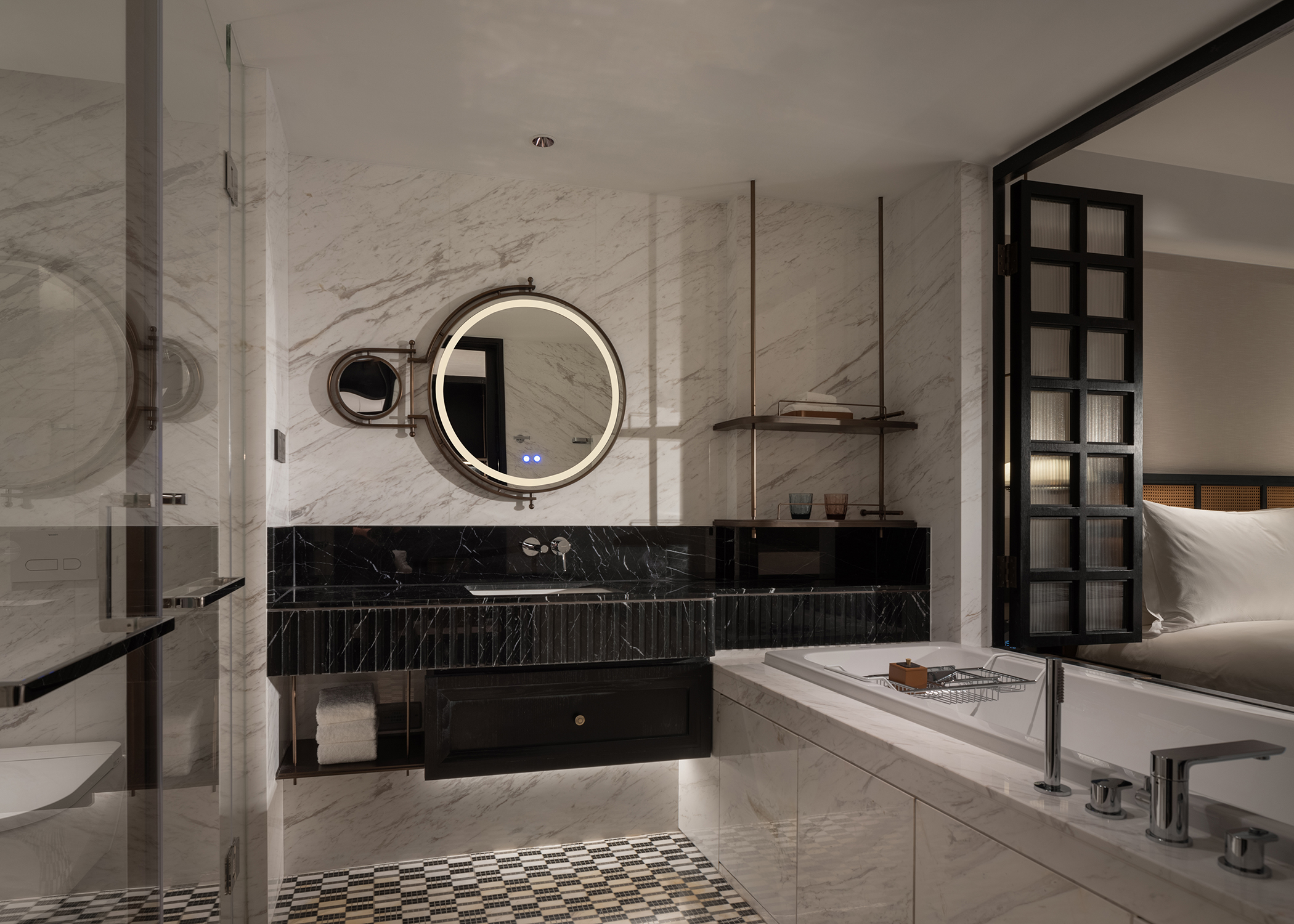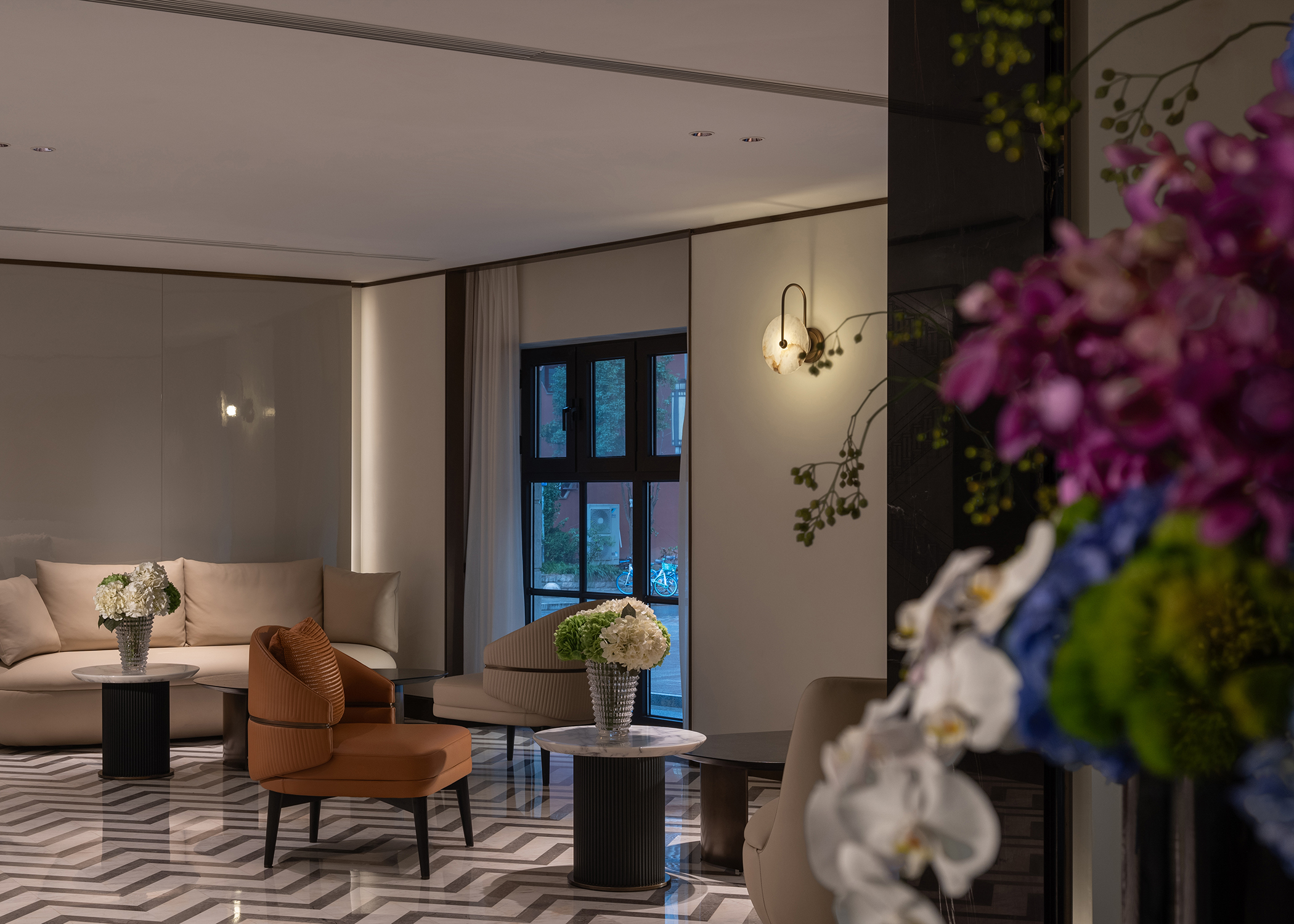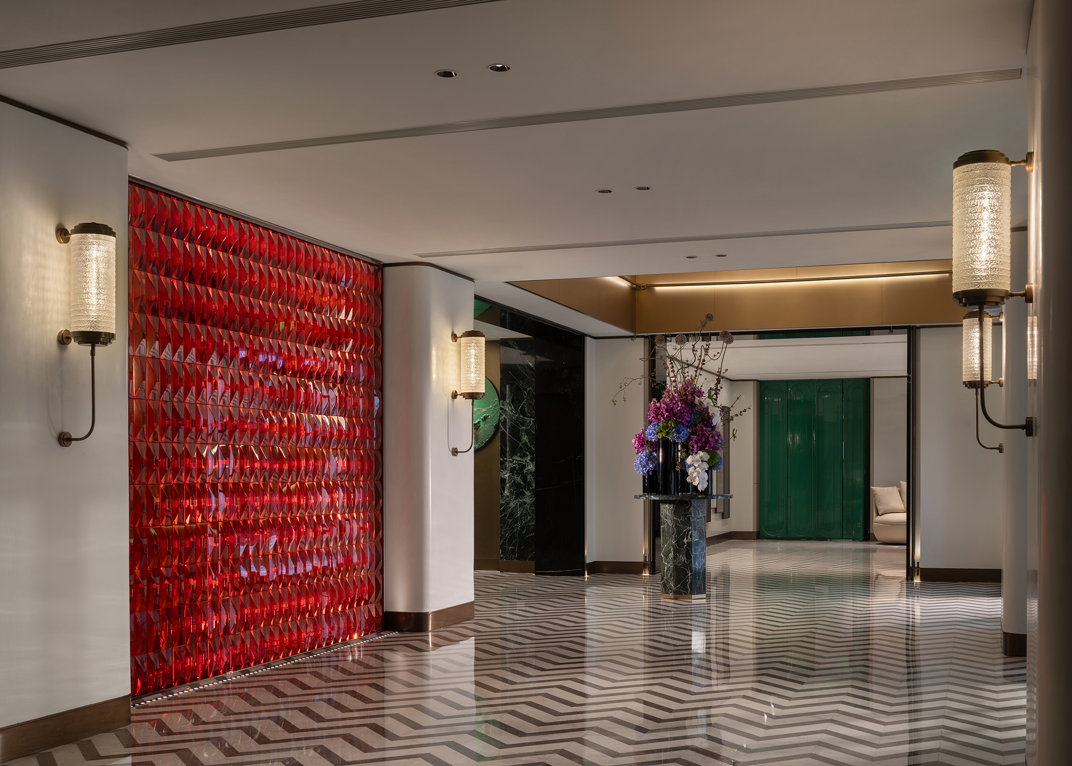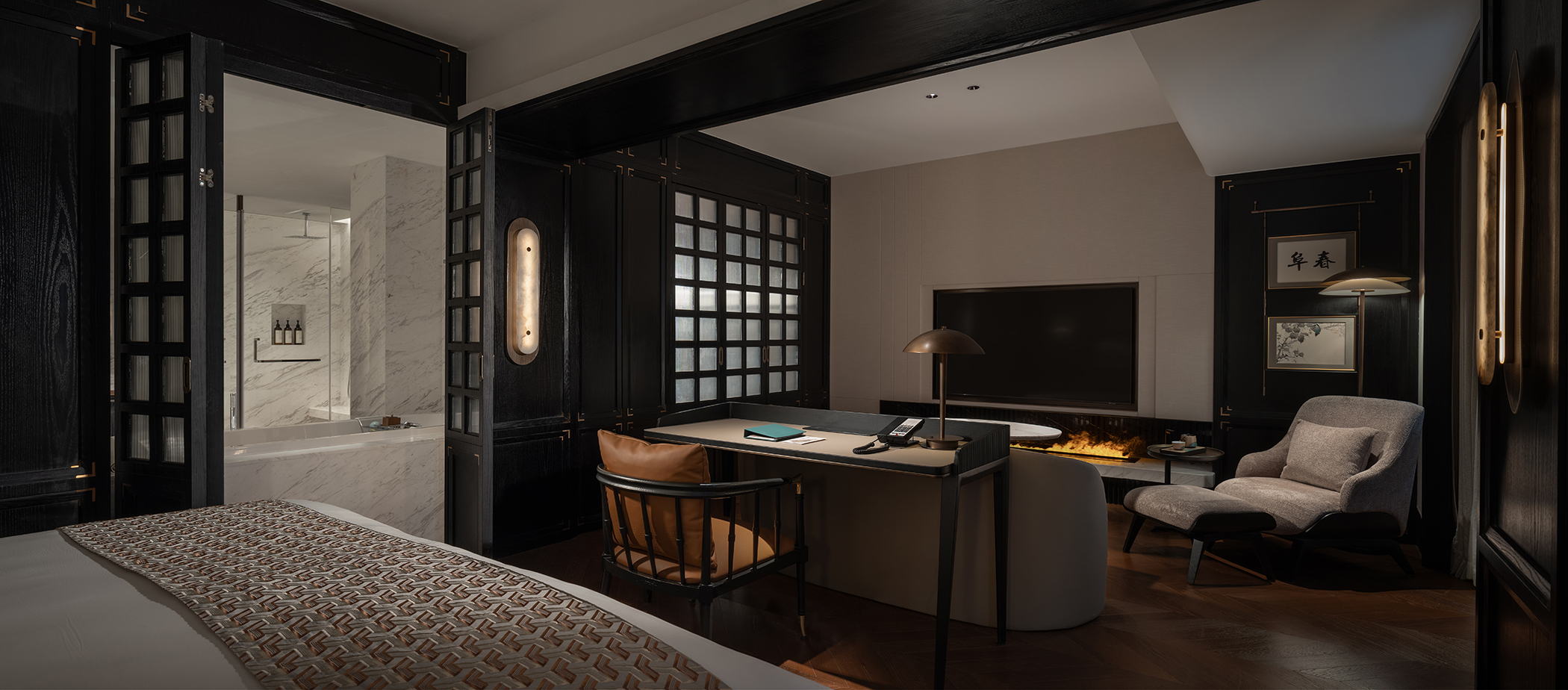 璟源·露香园酒店的室内设计融合了上海复古风情与现代雅致美学。客房设计灵感源自昔日顾氏风雅生活,以东方风格为基调,融合青莲、万竹等主题刺绣,展现出独特的文化韵味。室内采用深色木作墙面与浅色壁纸交织,地面铺设暖色鱼骨拼地板,搭配复古家具与现代艺术摆件,营造出温馨而典雅的氛围。走廊陈列民国时期的上海风情,重现老城厢的烟火气。整体设计在细节中融入上海的历史文化记忆,为宾客打造一场穿越时空的艺术之旅。