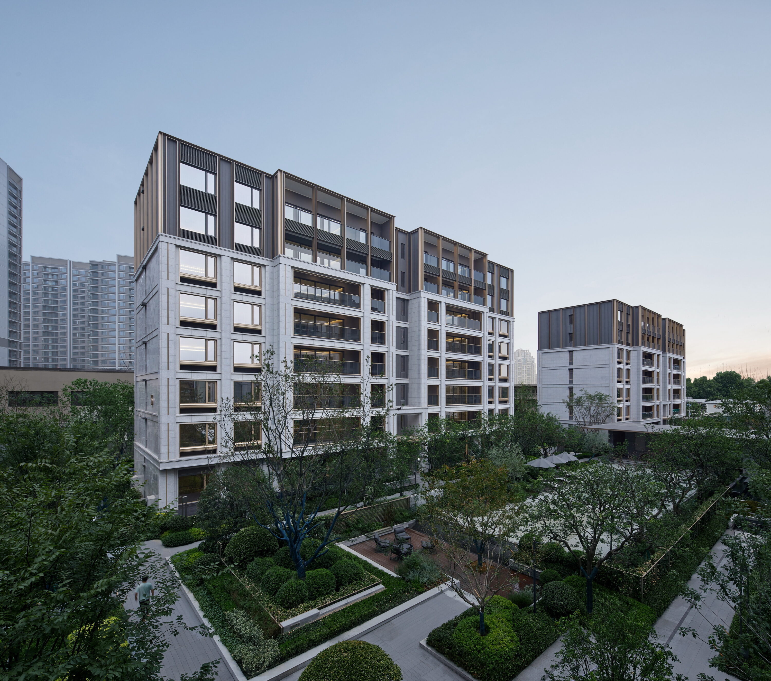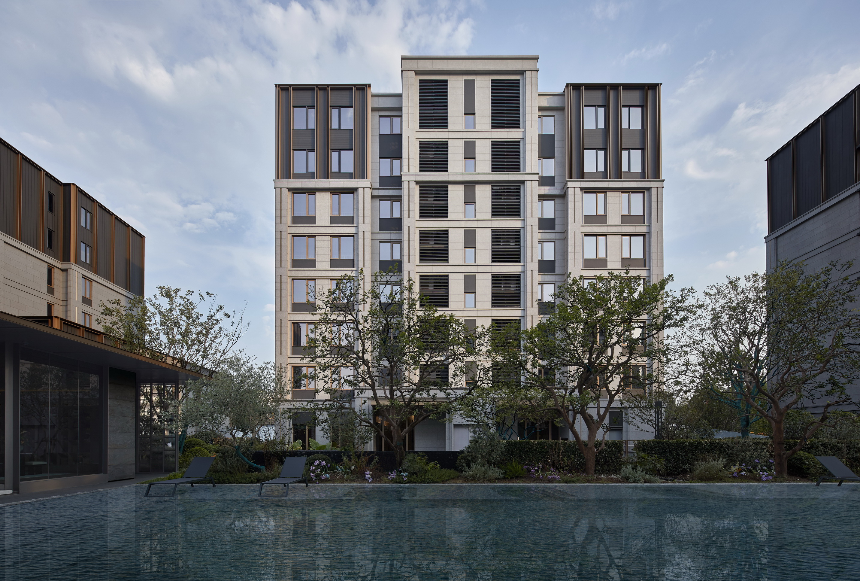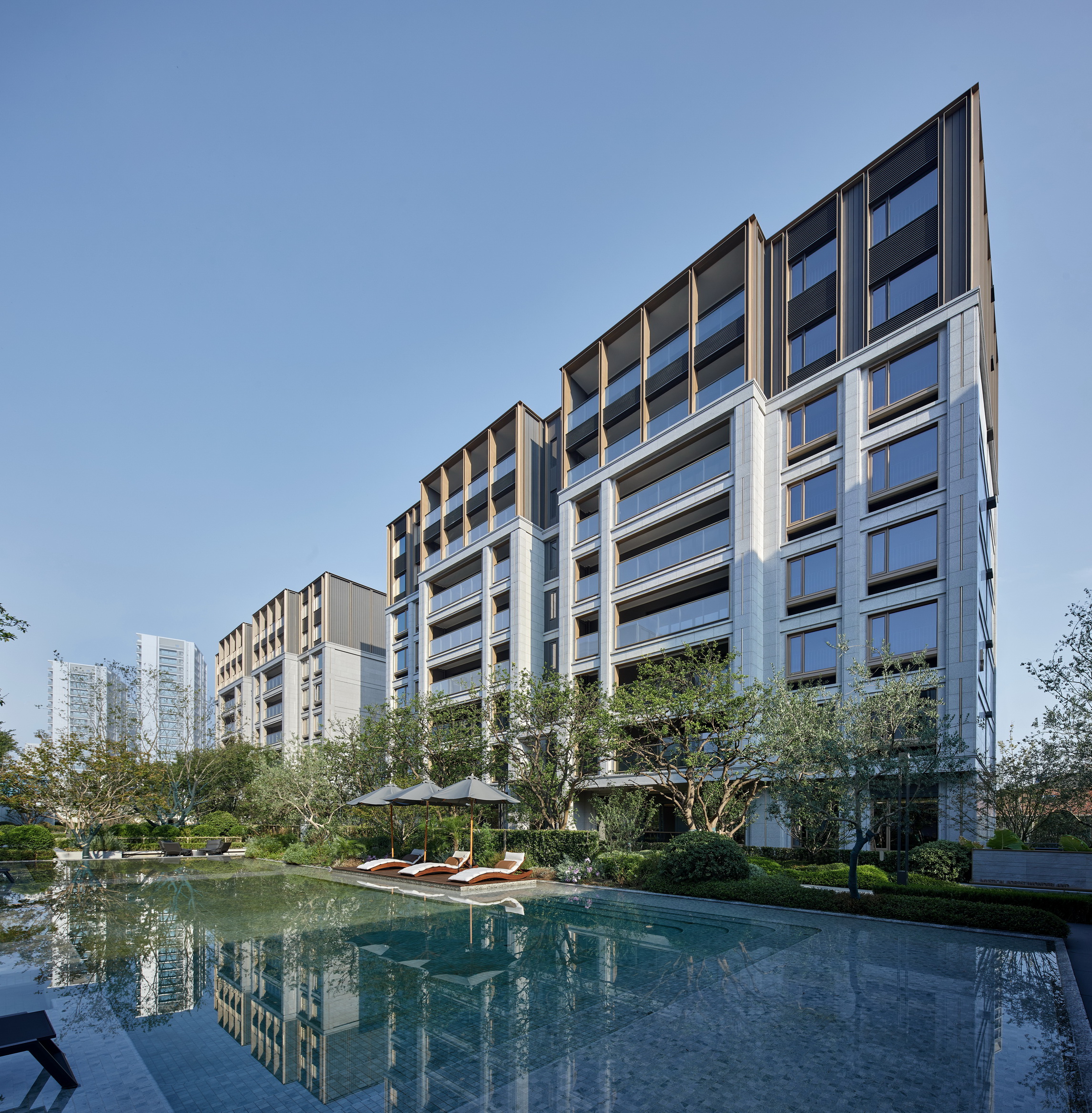 杭州华润置地·珹上润府位于拱墅区小河单元,紧邻千年运河与华丰造纸厂旧址。项目以“闹中取静”为理念,采用低密度8层小洋房设计,容积率仅1.5。立面设计融合华丰造纸厂的工业记忆与现代美学,铝型材与石材巧妙搭配,营造出轻盈与稳重的对比。建筑细节精雕细琢,从石材竖槽到金属框线,均经过严格选样与样板段实验,确保品质。架空层设置社区会客厅、健身房等多功能空间,打造“住在公园中”的精致人文社区,让建筑成为历史与现代交融的载体。