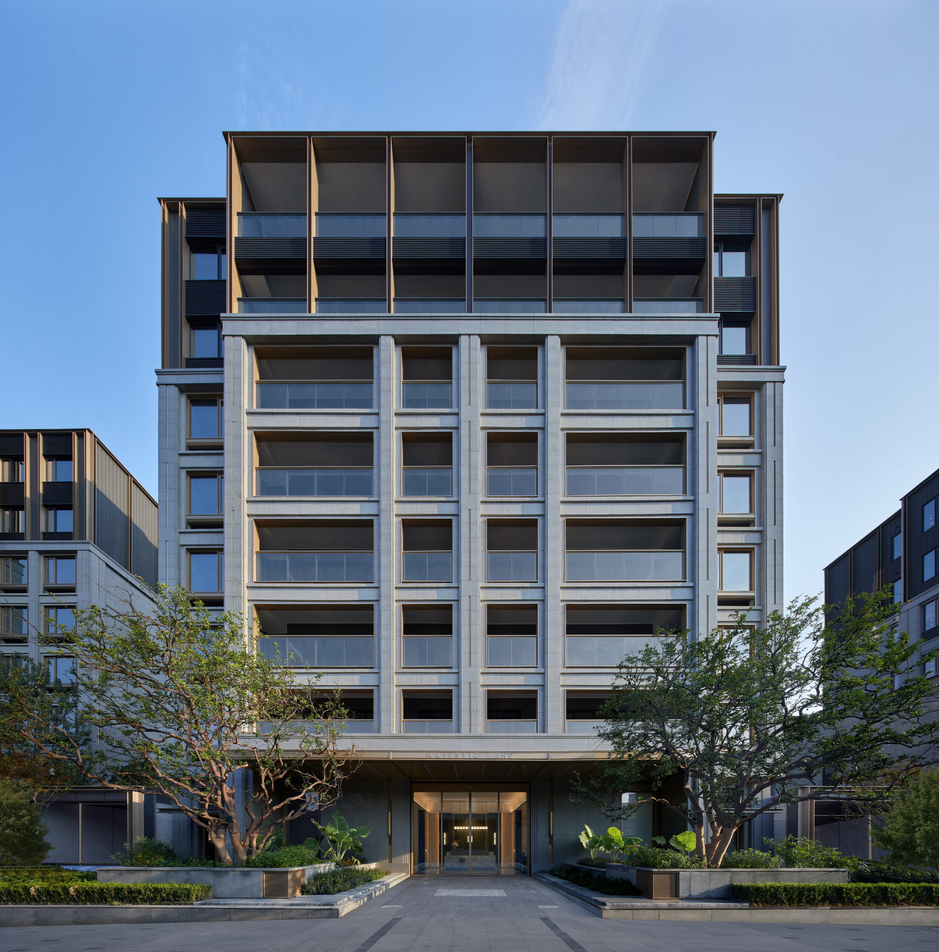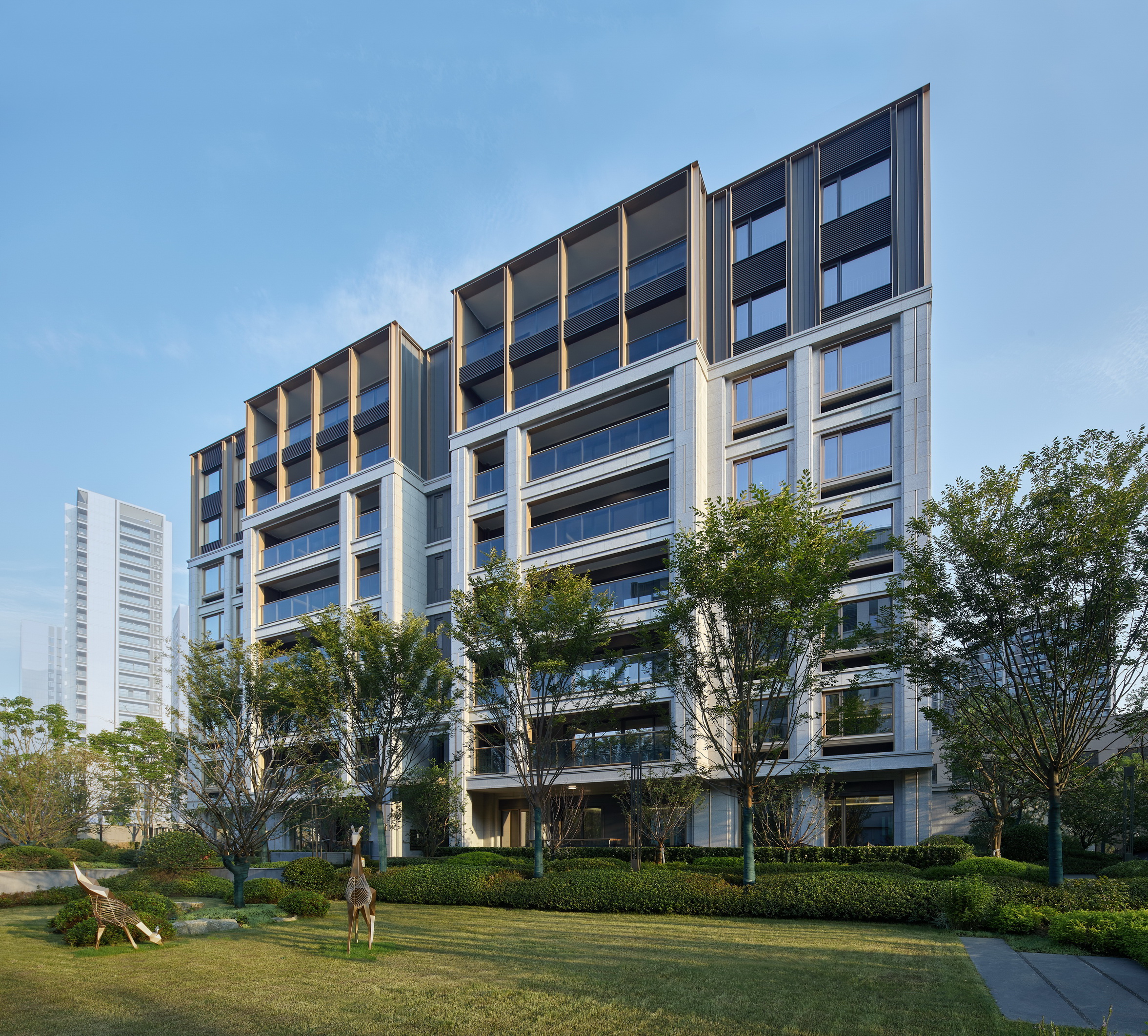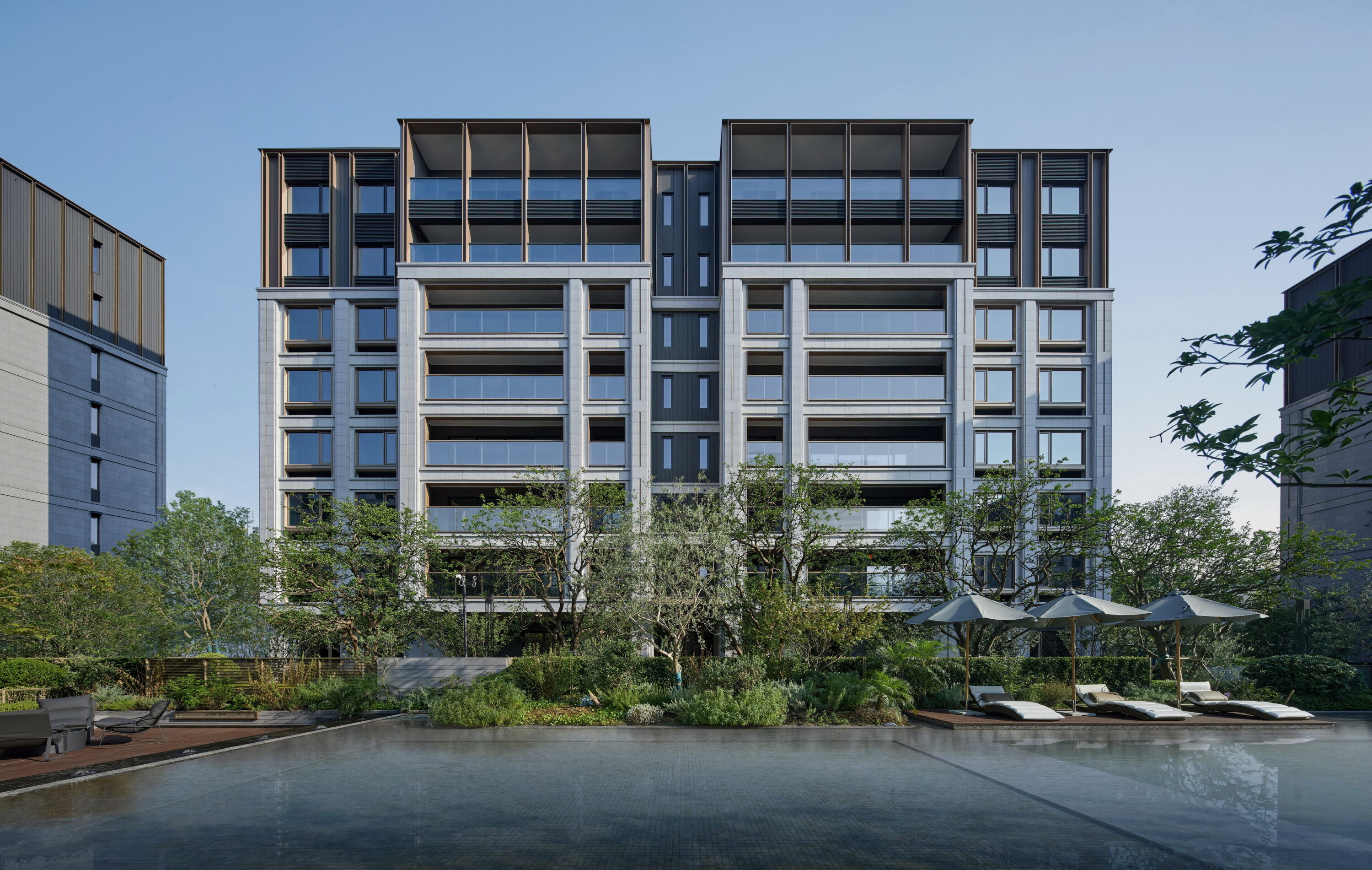 杭州华润置地·珹上润府位于拱墅区小河单元,紧邻千年运河与华丰造纸厂旧址。项目以“闹中取静”为理念,采用低密度8层小洋房设计,容积率仅1.5。立面设计融合华丰造纸厂的工业记忆与现代美学,铝型材与石材巧妙搭配,营造出轻盈与稳重的对比。建筑细节精雕细琢,从石材竖槽到金属框线,均经过严格选样与样板段实验,确保品质。架空层设置社区会客厅、健身房等多功能空间,打造“住在公园中”的精致人文社区,让建筑成为历史与现代交融的载体。