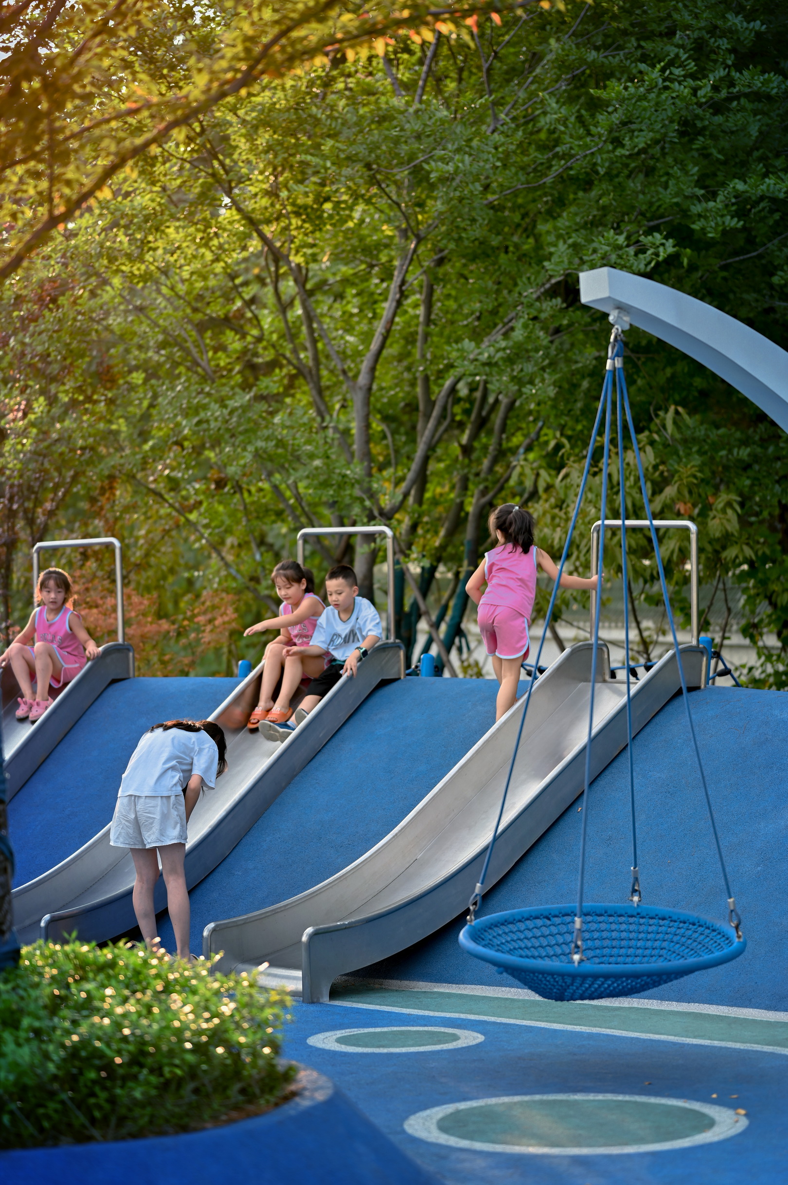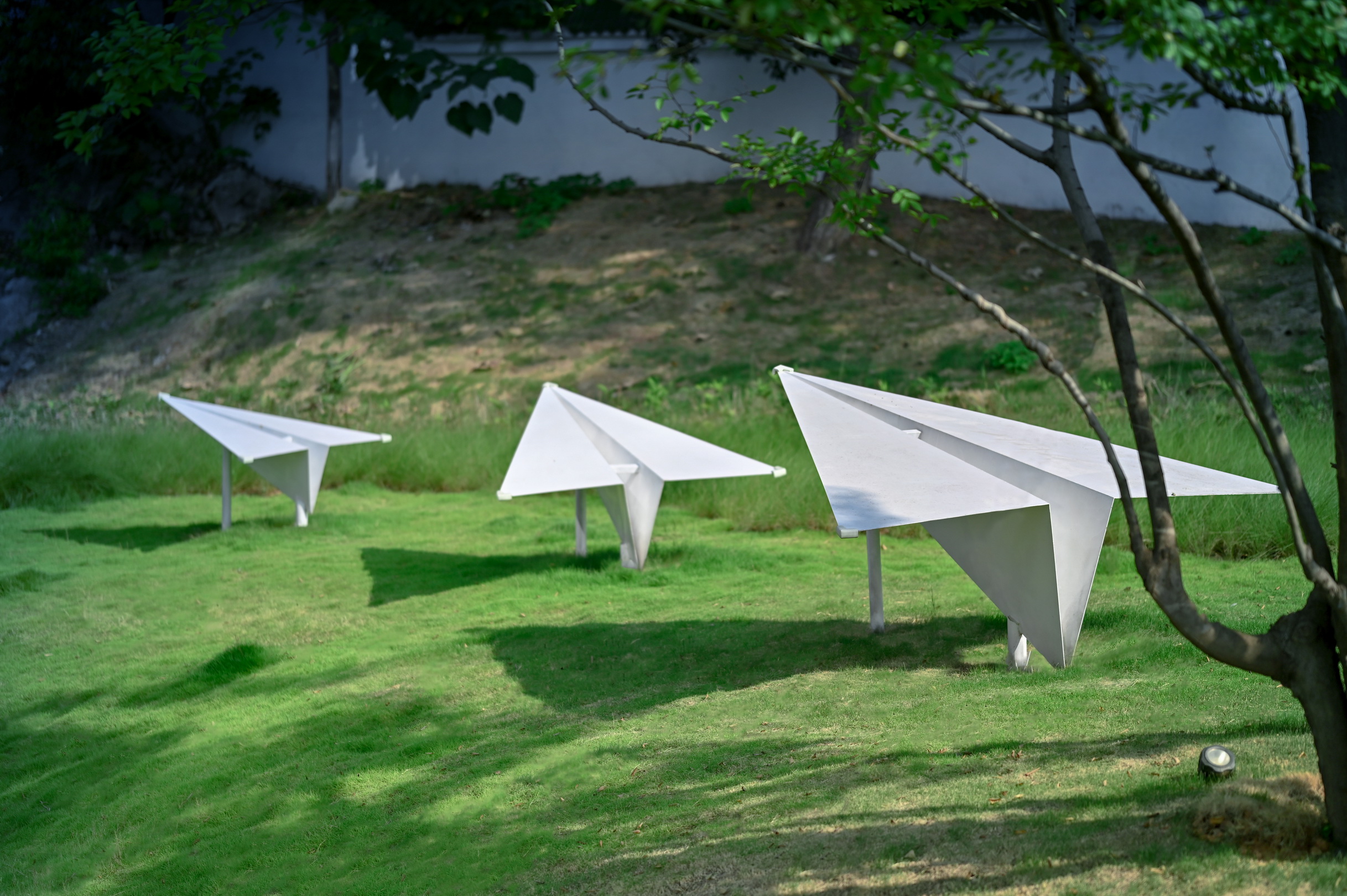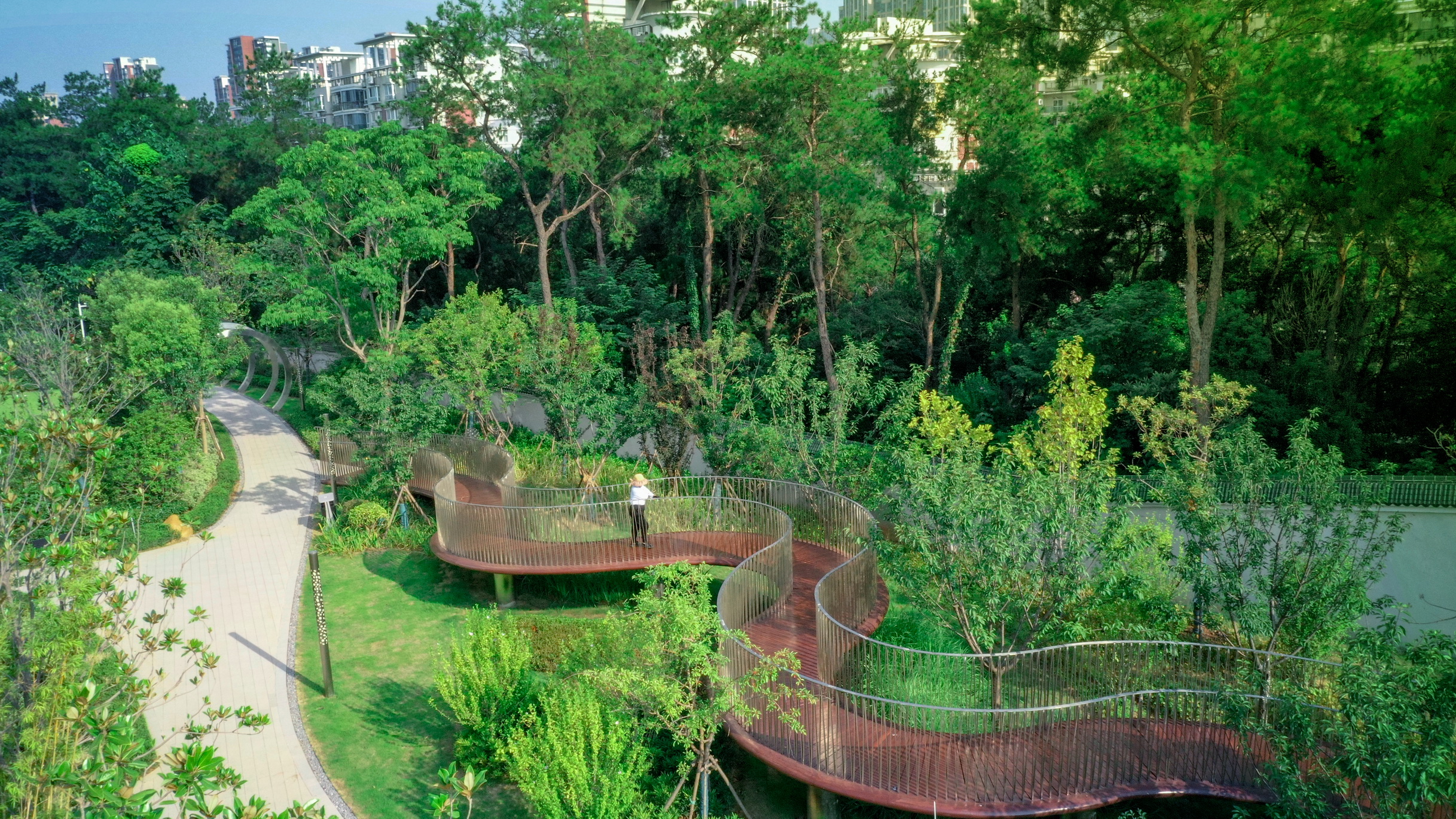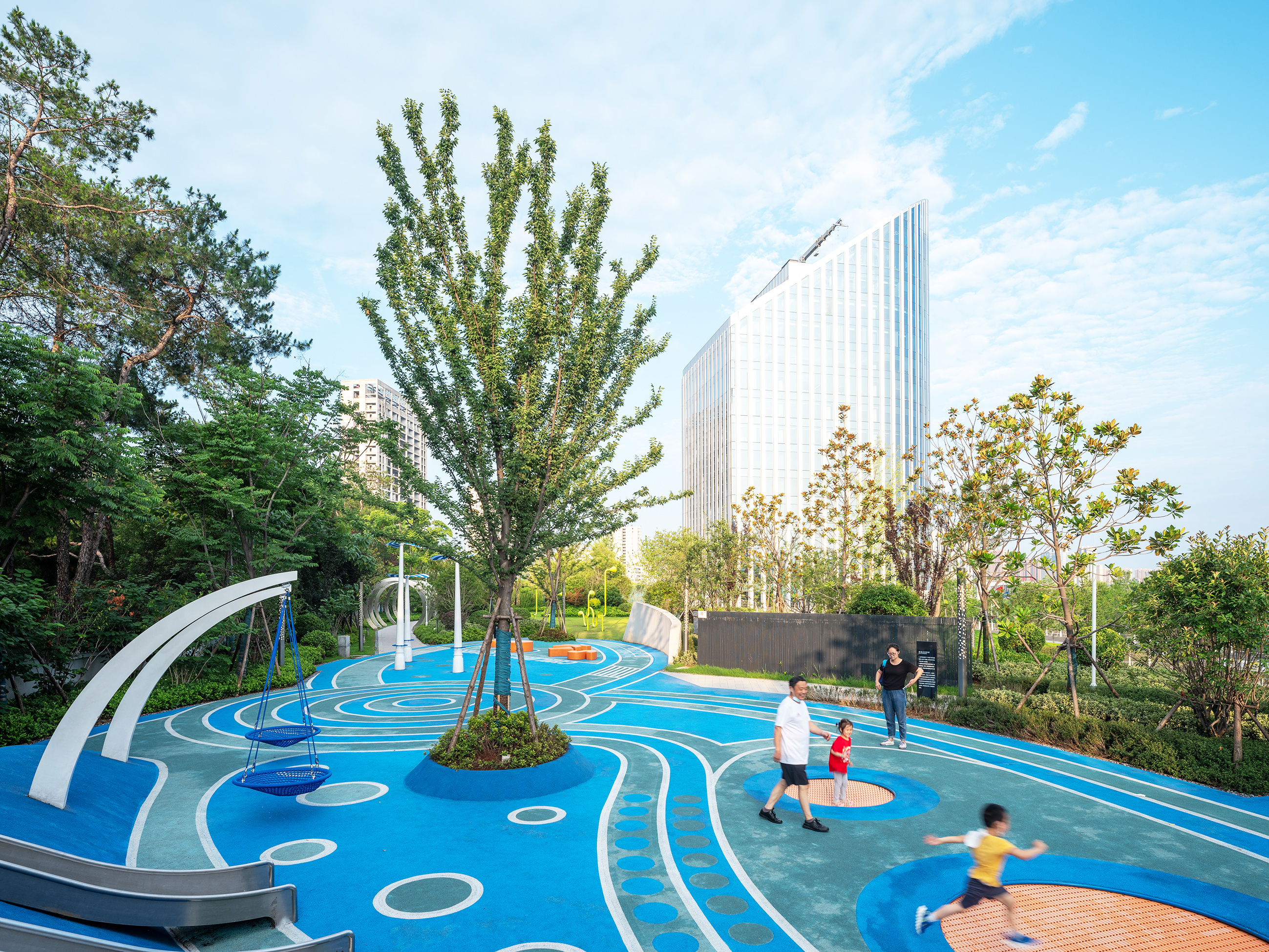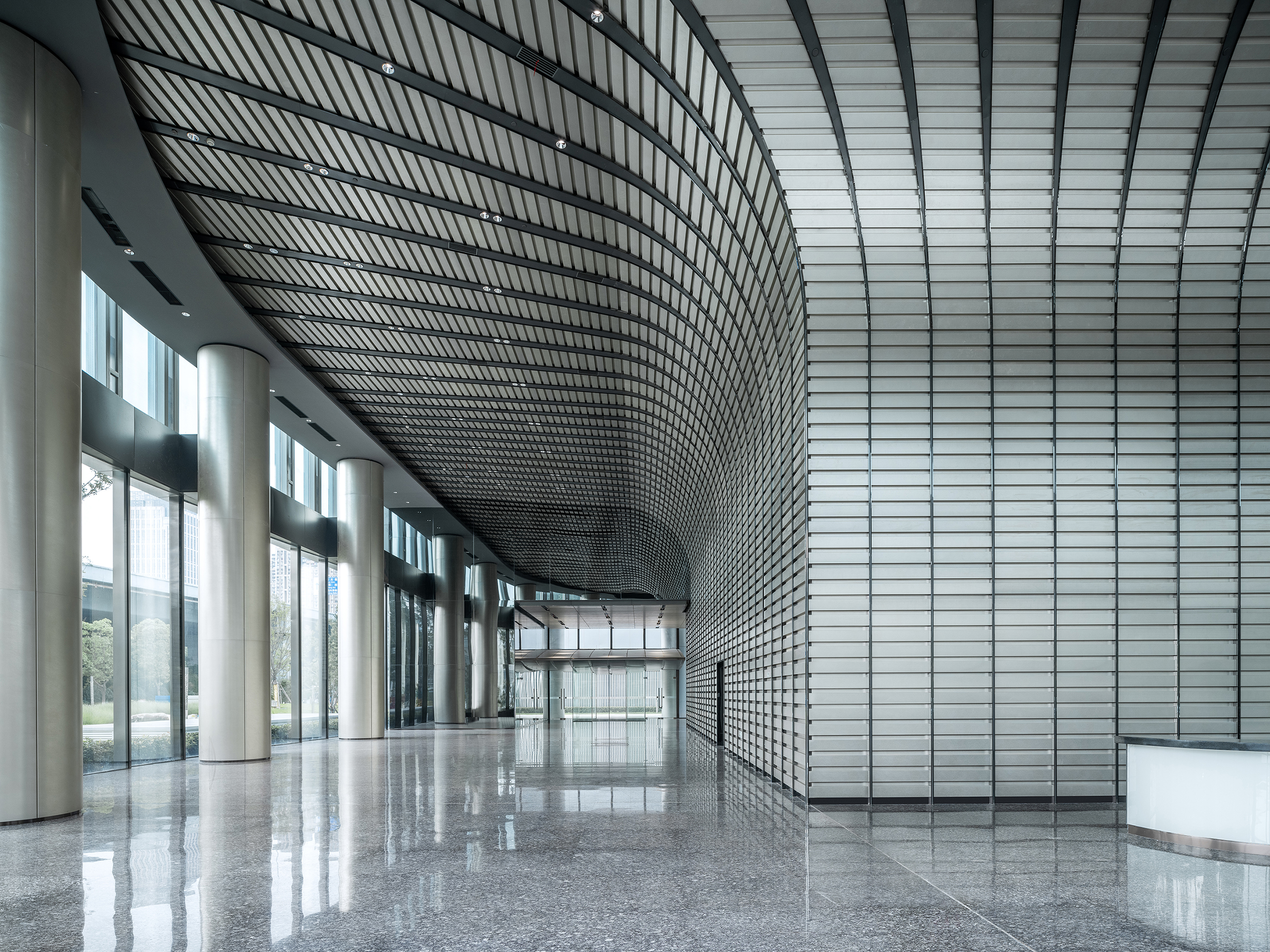 此项目是由航空企业主导,华中首个以航空产业为主导的综合体项目。结合基地的起伏地形,复原了绿丘,在 “中国四大锅炉 “之称的武汉营造了一个清爽开阔的公共空间,为周边带来了新的活力。 在此基础上插入两条轴线与贯穿绿丘的开口,形成了立体的动线。风与光流进绿丘下边的商业和航空展览馆,为来访者提供了舒适且富有吸引力的体验。双塔在各种基地与规范条件的引导下呈现出具有特色的姿态,从不同的角度看呈现不同的视觉效果。